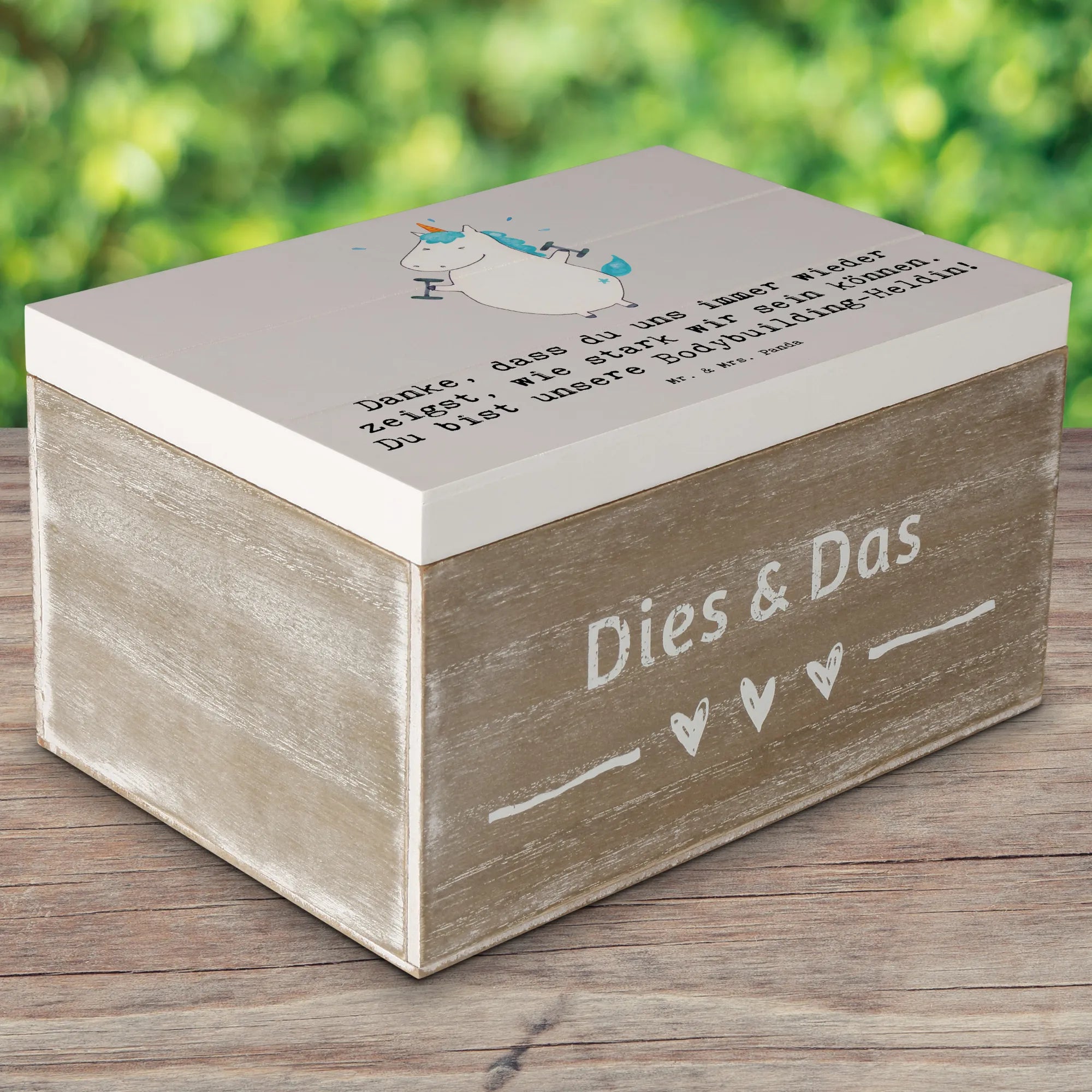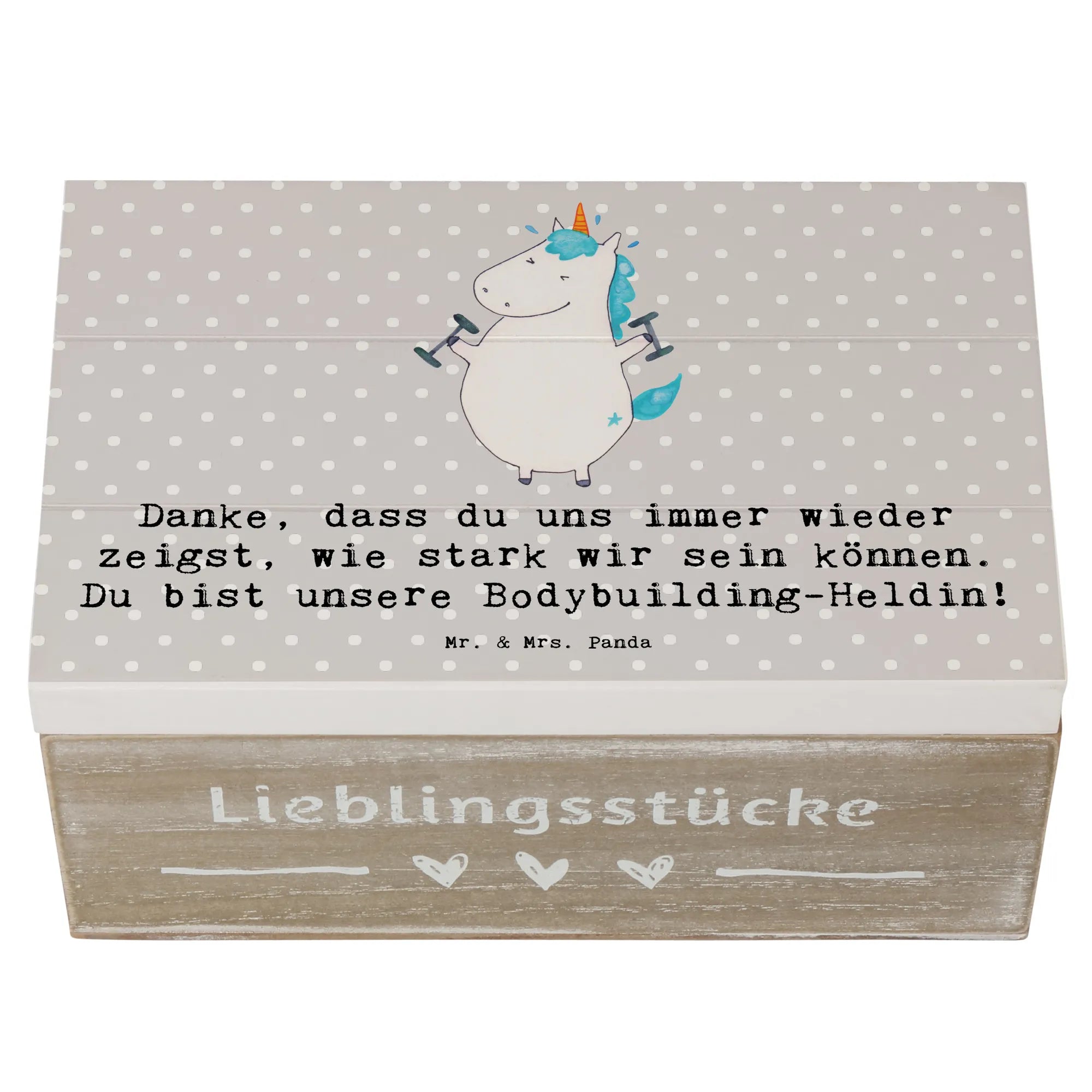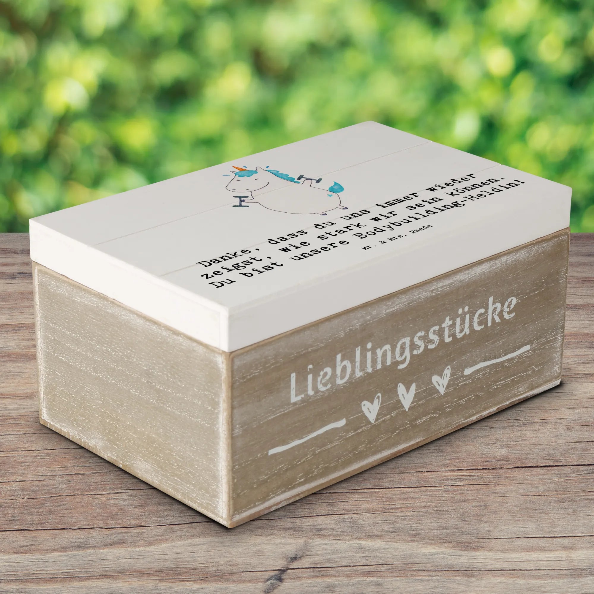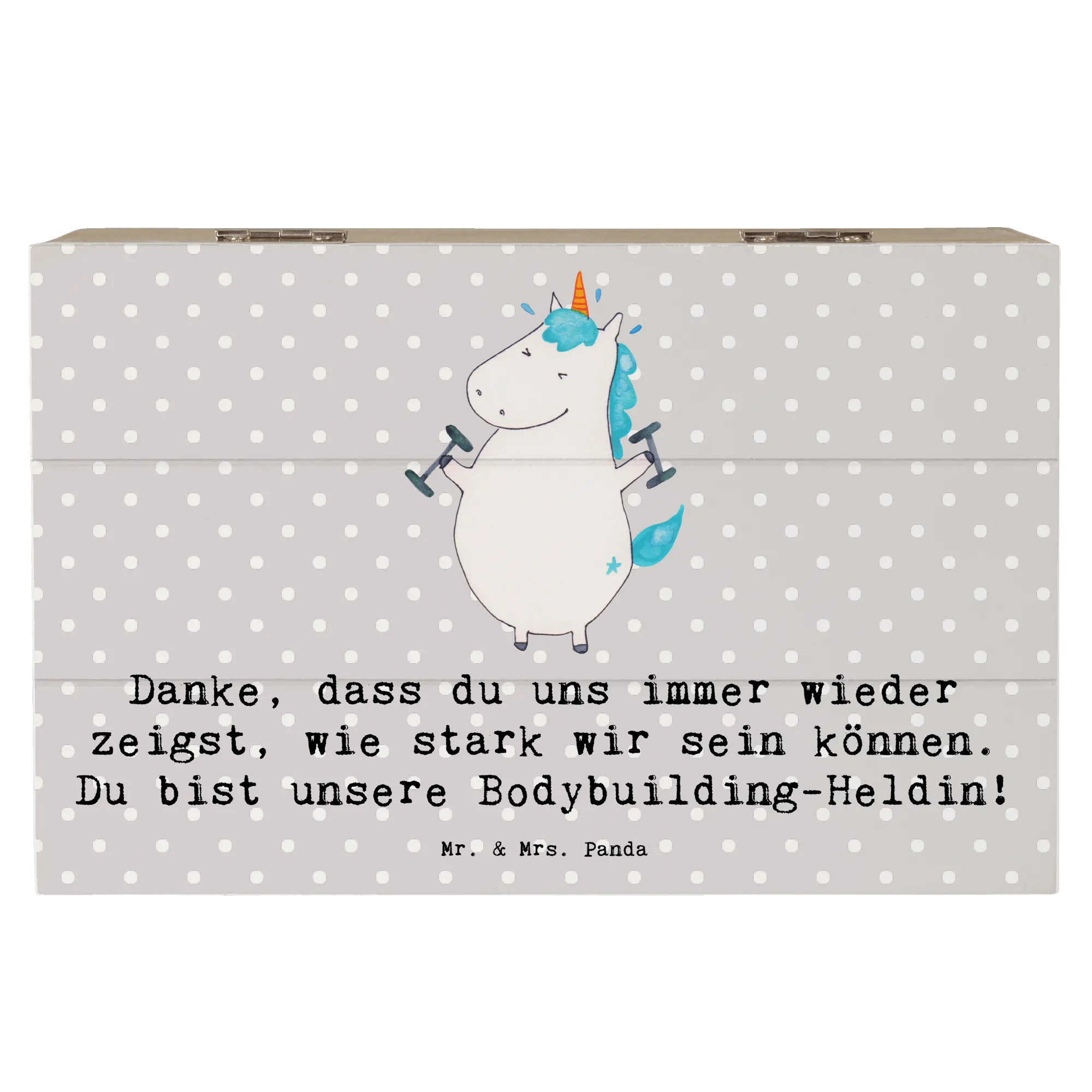 Wooden chest Danke, dass du uns immer wieder zeigst, wie stark wir sein können. Du bist unsere Bodybuilding-Heldin! - 22 x 15 cm - Grey Pastel