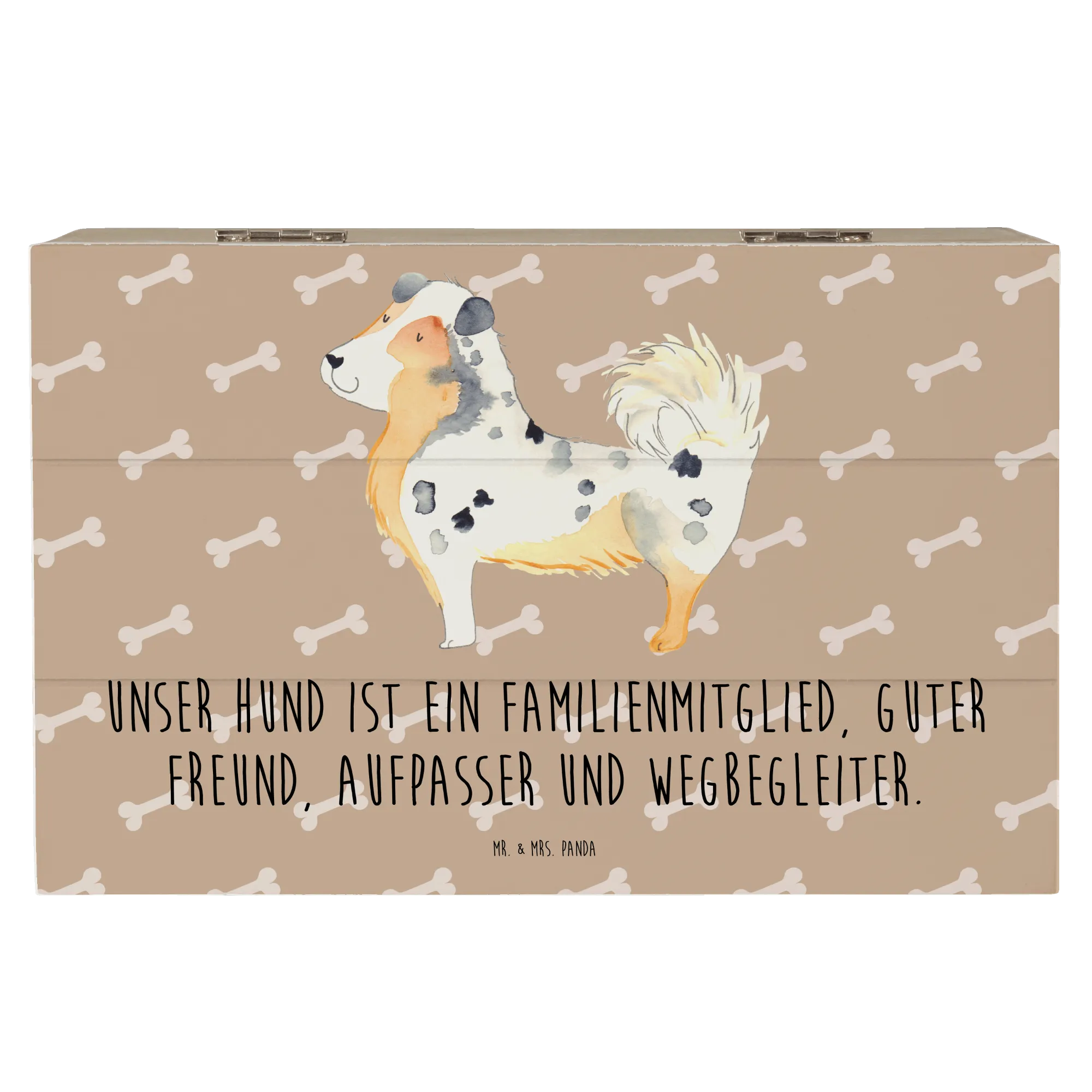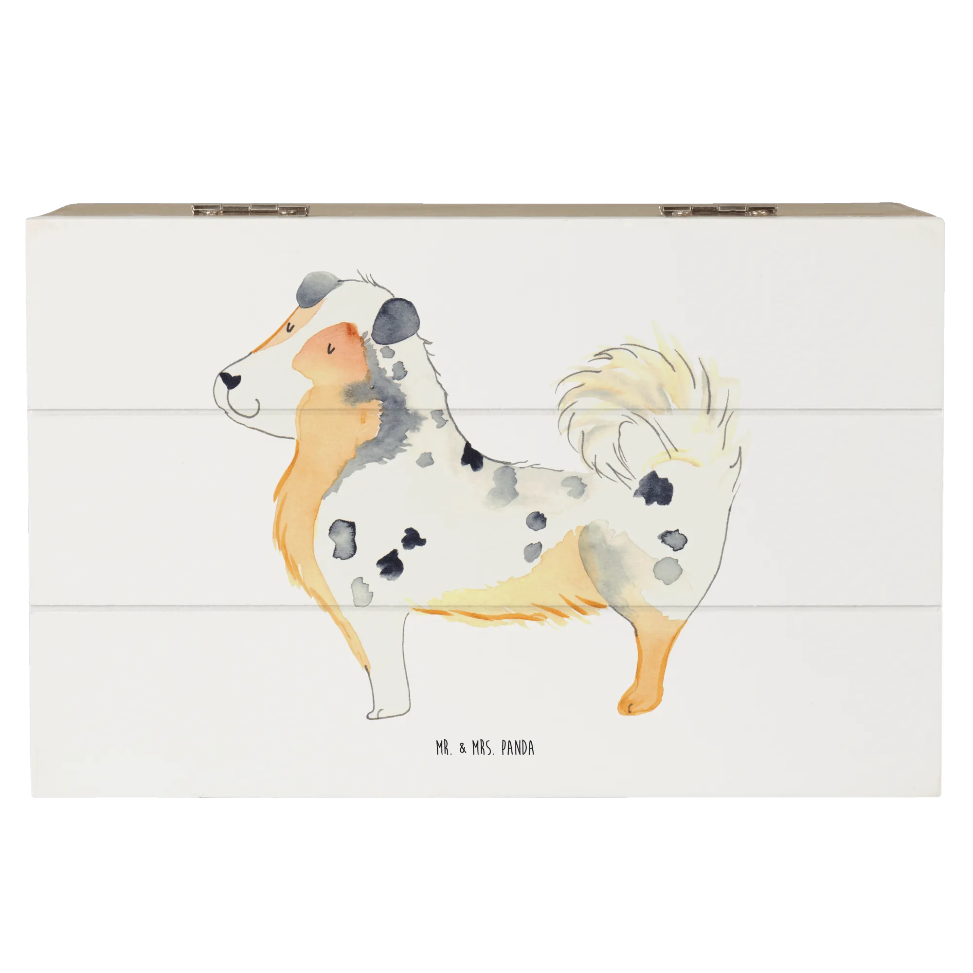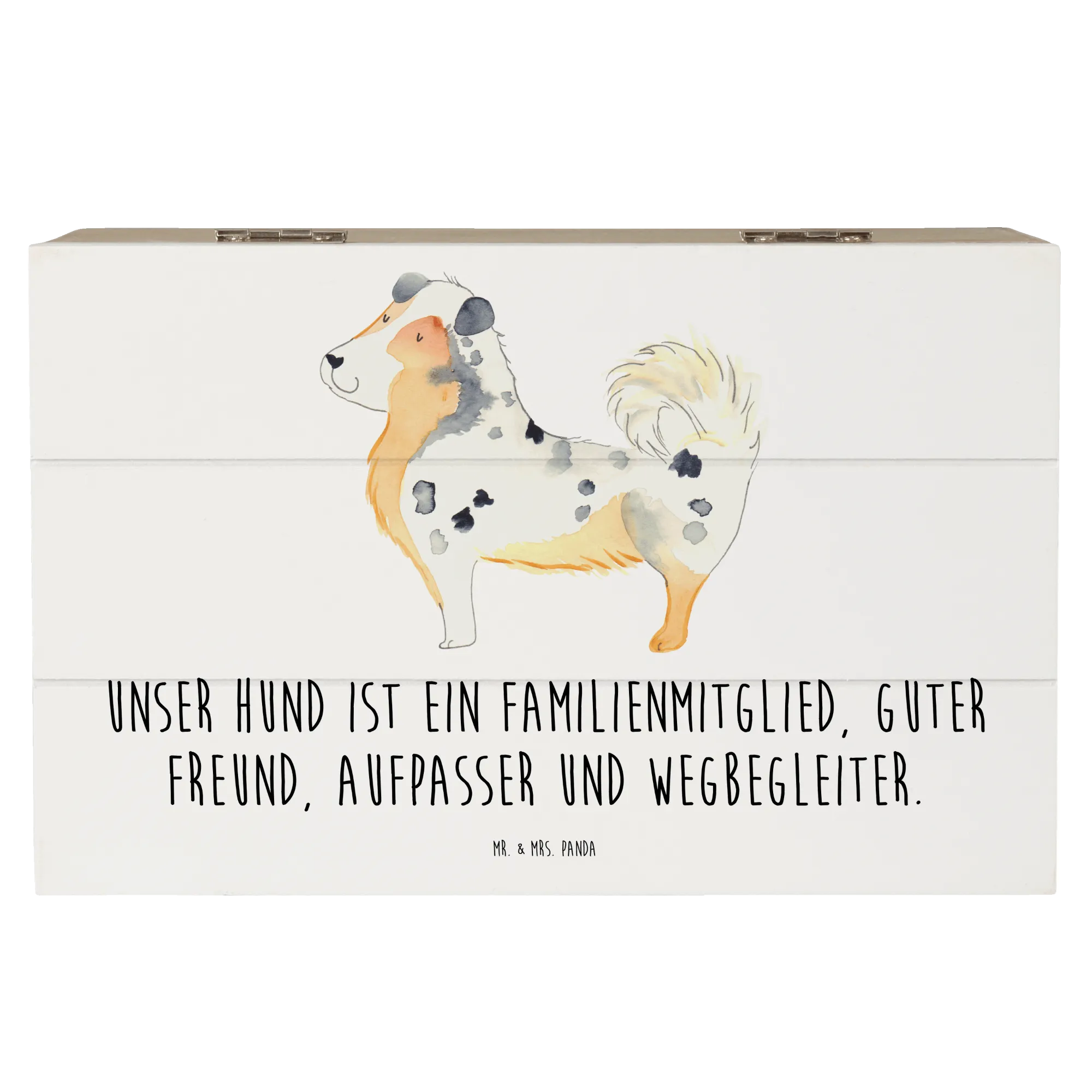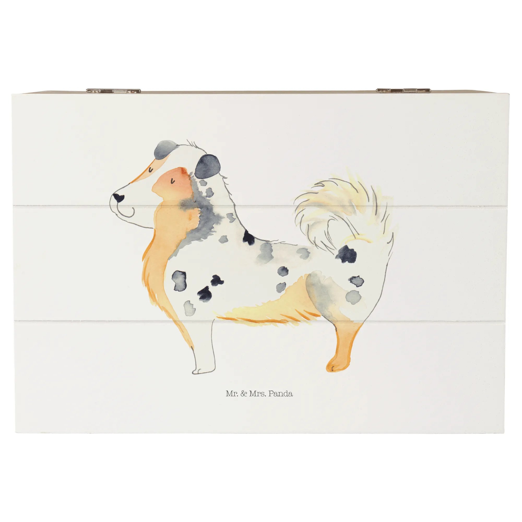 Wooden chest Dog Australia Shepherd - 22 x 15 cm - with a saying - White