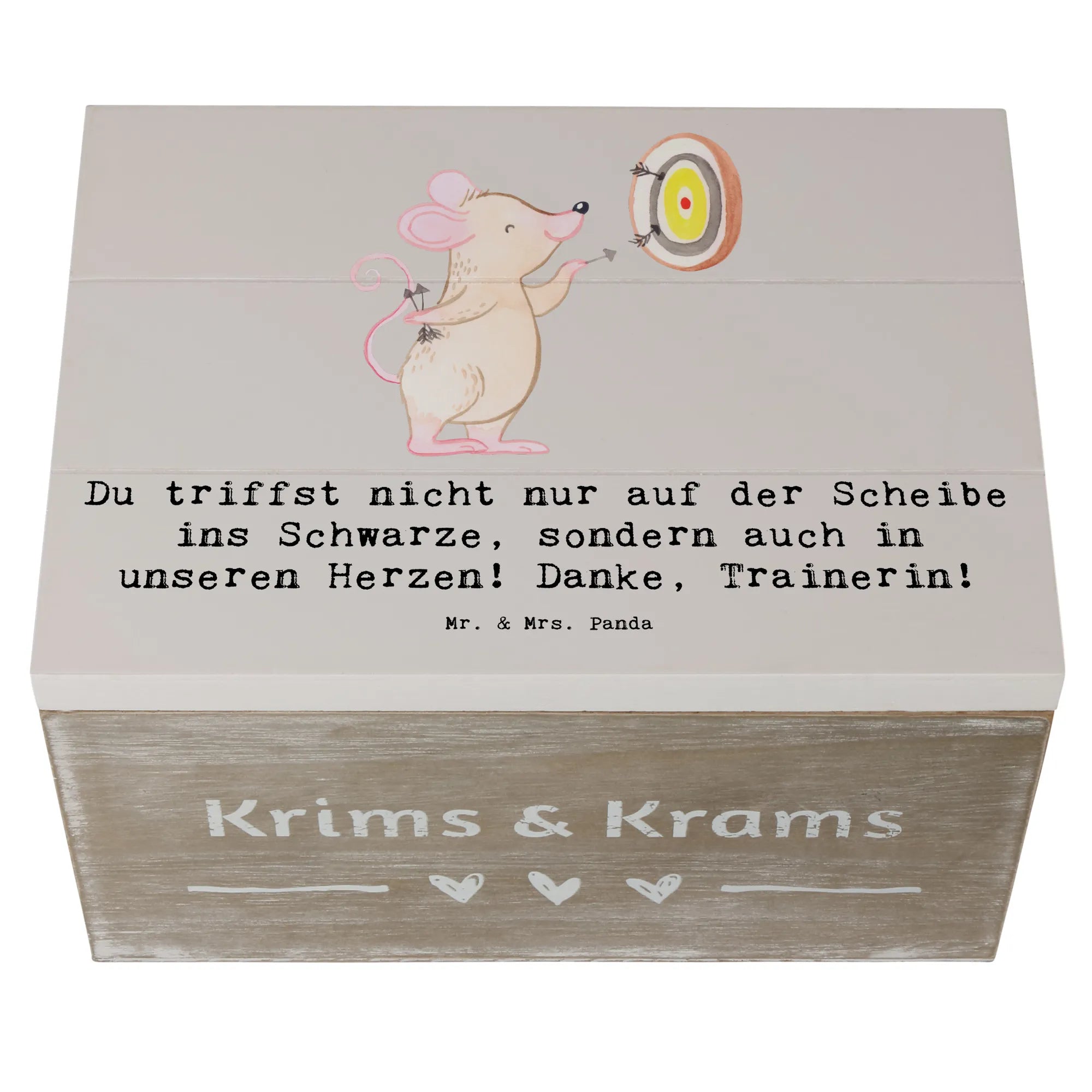 Wooden chest Du triffst nicht nur auf der Scheibe ins Schwarze, sondern auch in unseren Herzen! Danke, Trainerin! - 19 x 12 cm - Pastel Gray