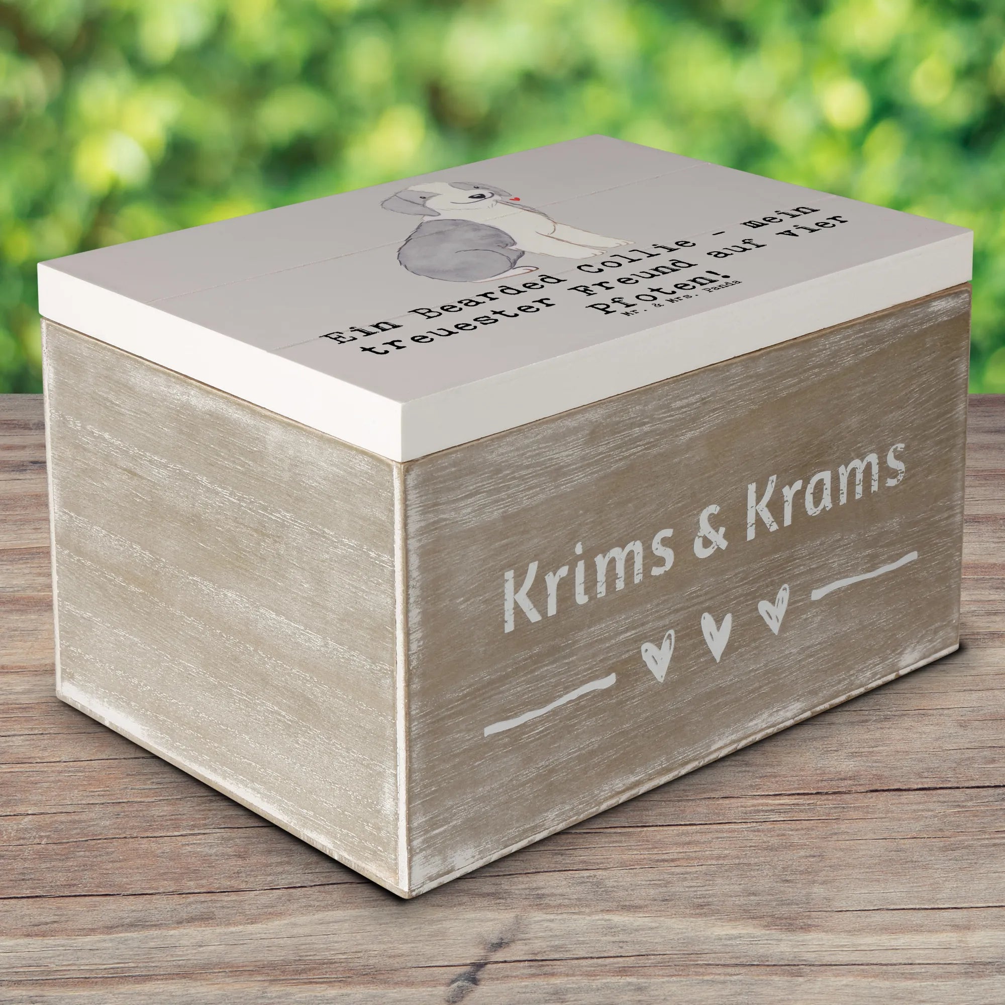 Wooden chest Ein Bearded Collie - mein treuester Freund auf vier Pfoten! - 22 x 15 cm - Pastel Gray