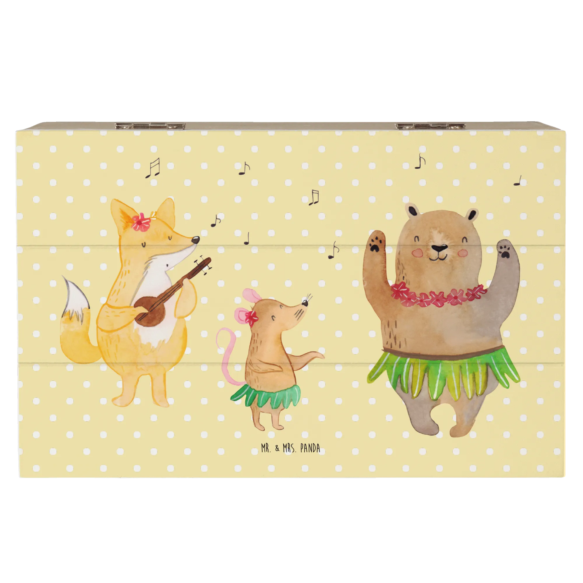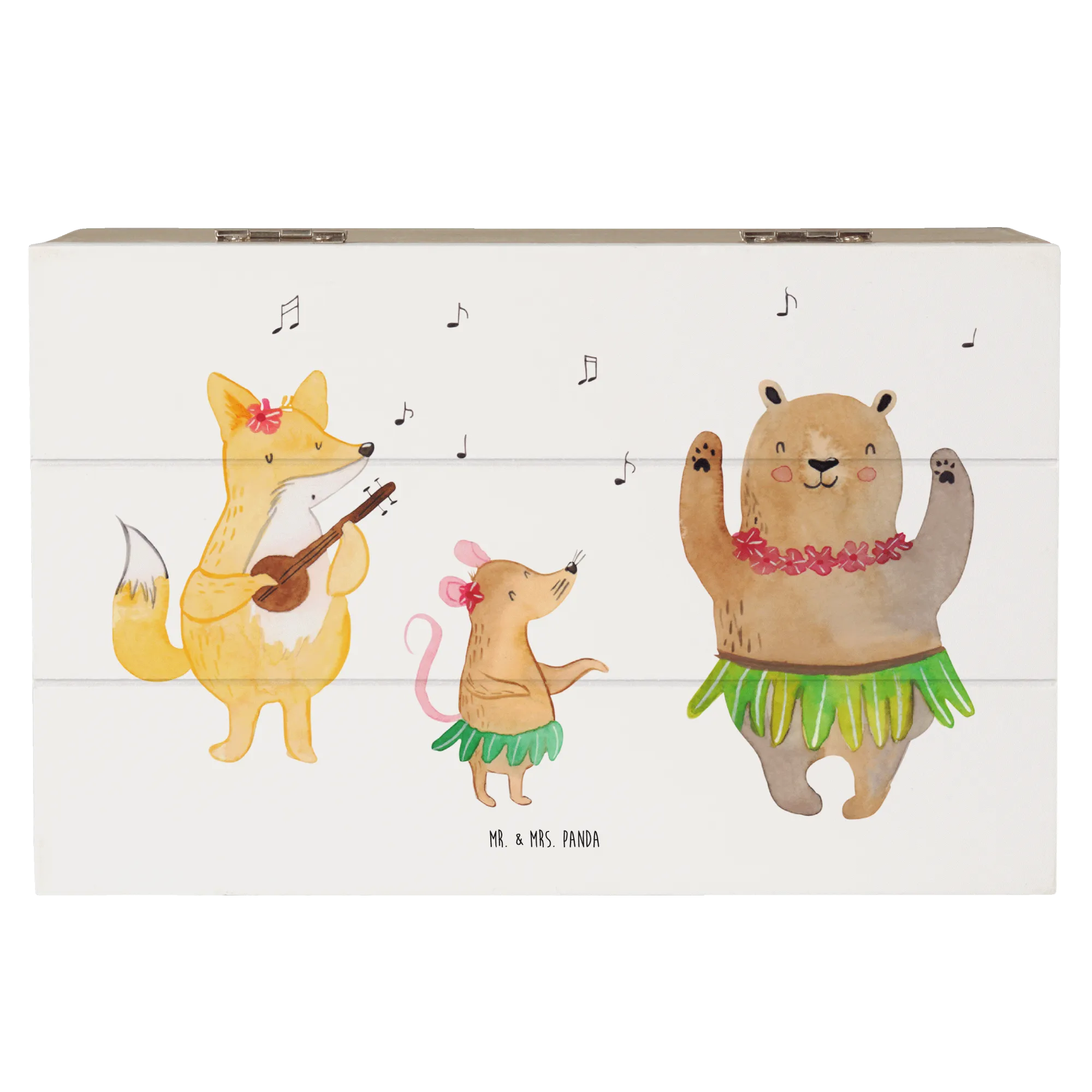 Looking for a perfect gift that is both delightful and functional? Meet the gorgeous Wooden Box featuring the Aloha Forest Creatures motif from the beloved Small World collection by Mr. & Mrs. Panda! This charming treasure chest is adorned with adorable woodland animals dancing to cheerful Hawaiian tunes, instantly lifting your spirits and bringing a slice of paradise into your home.