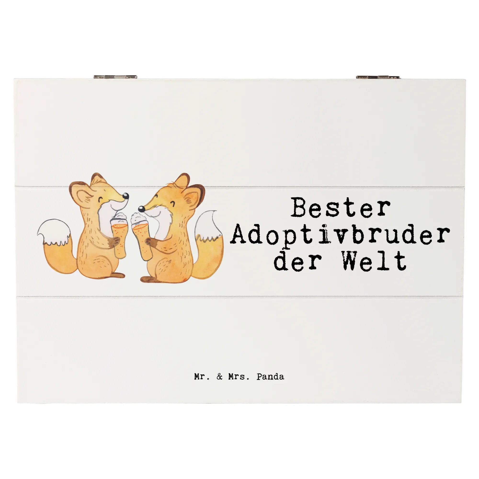 Wooden chest Fox Best adoptive brother in the world - 22 x 15 cm - White