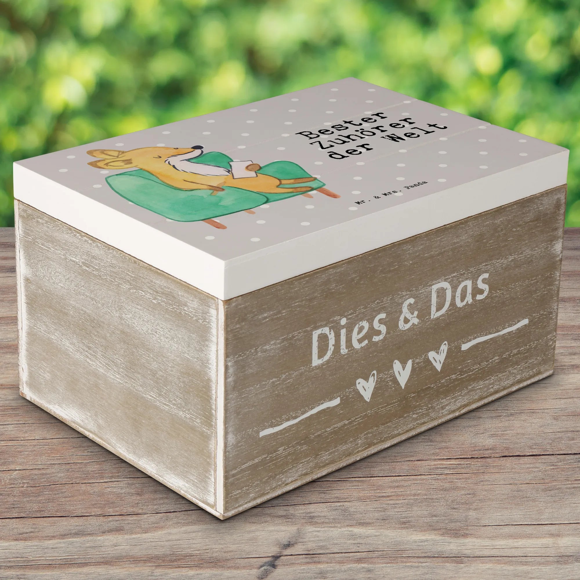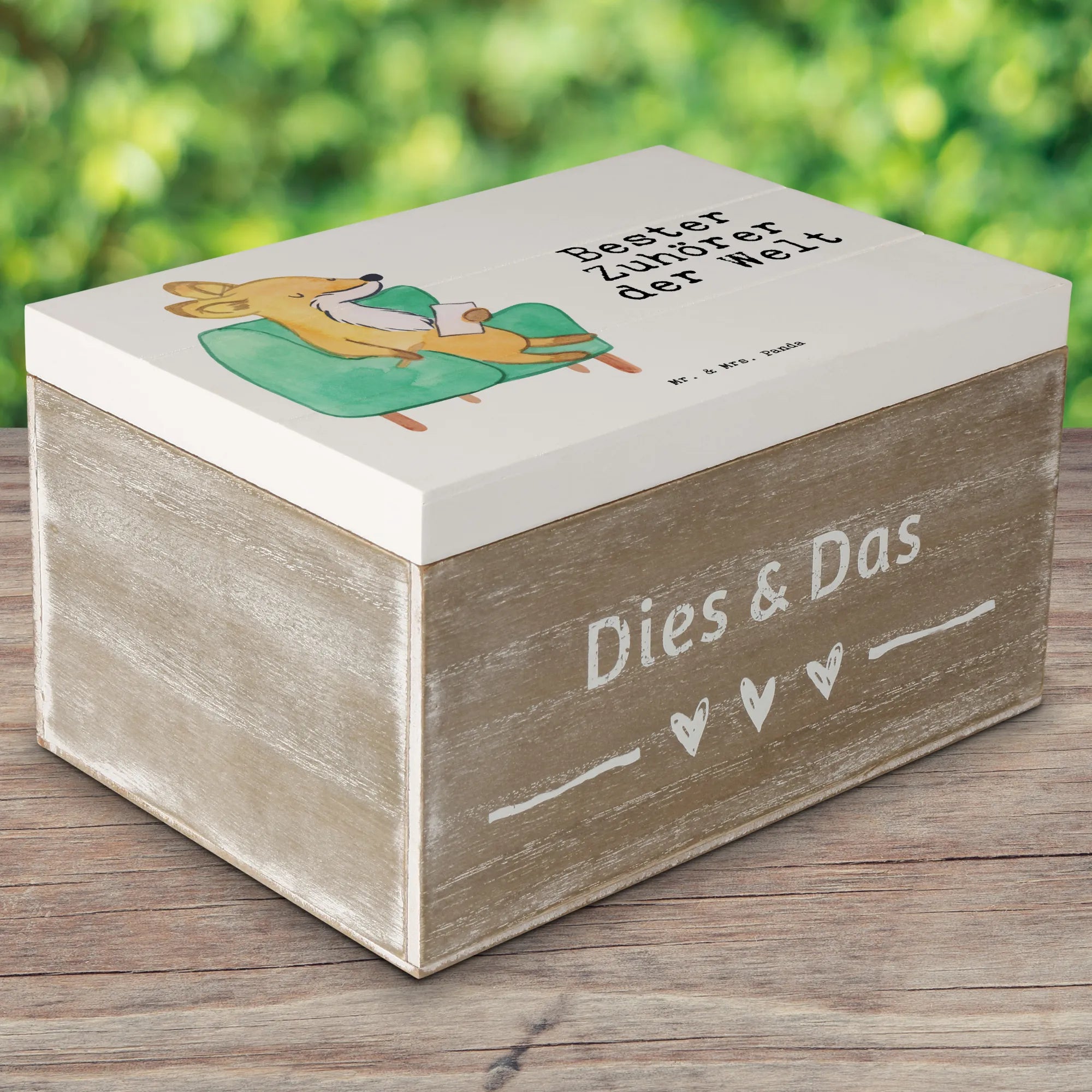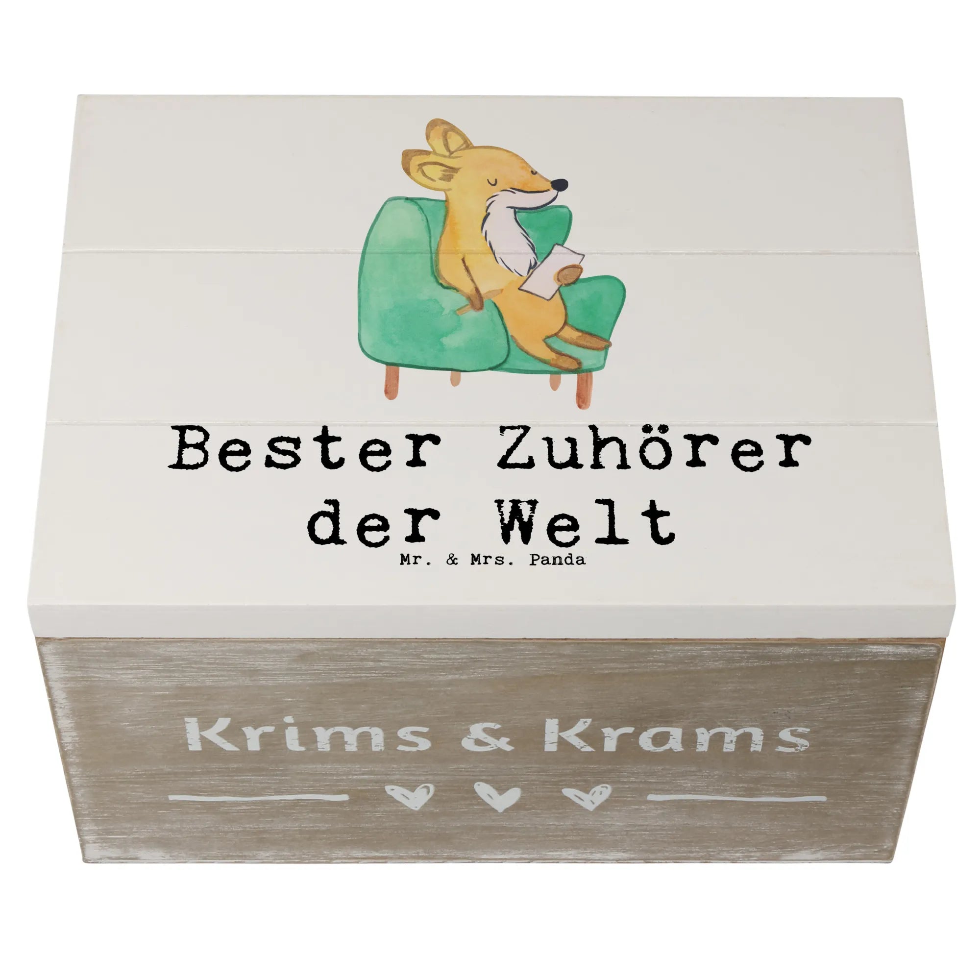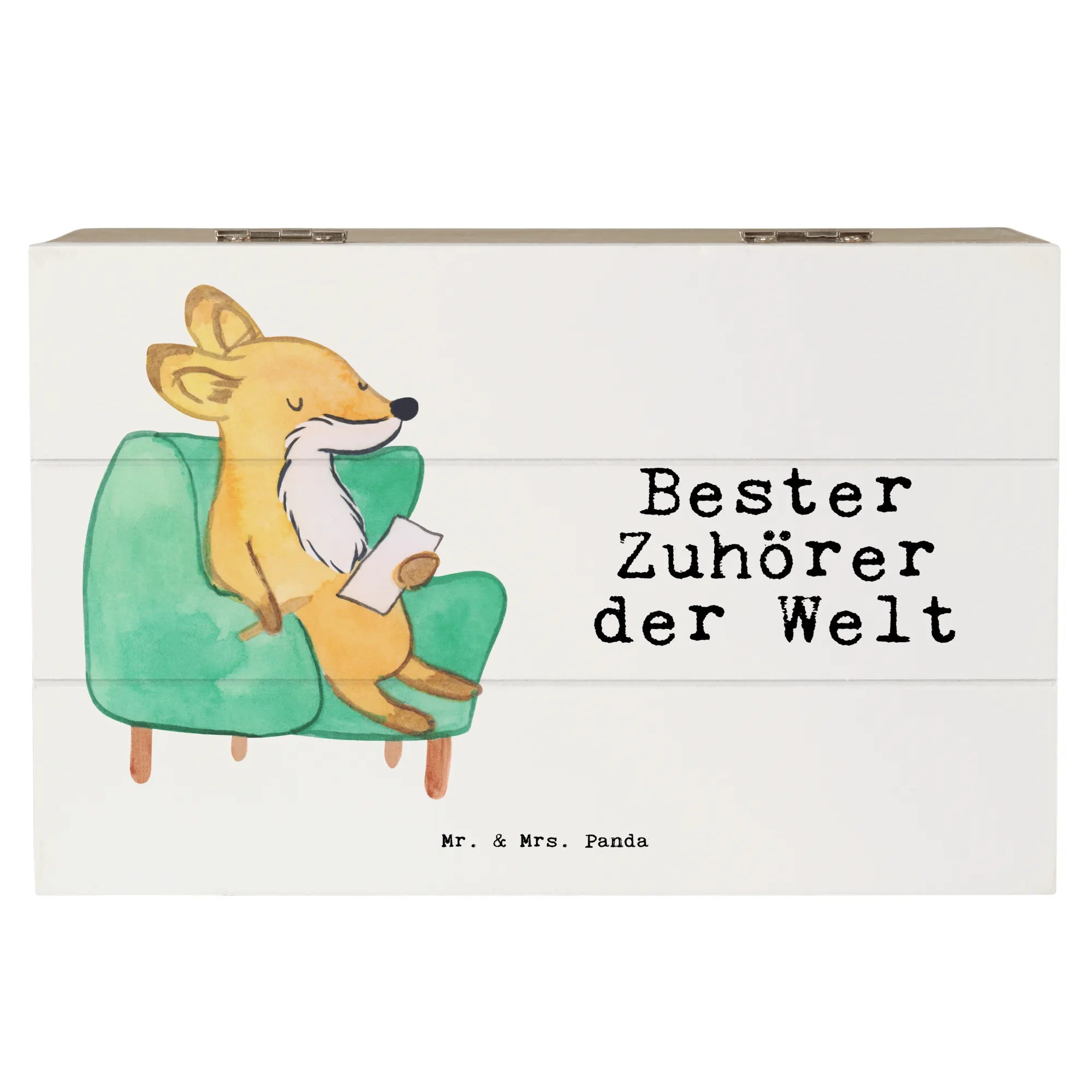 Wooden chest Fox Best listener in the world - 22 x 15 cm - White