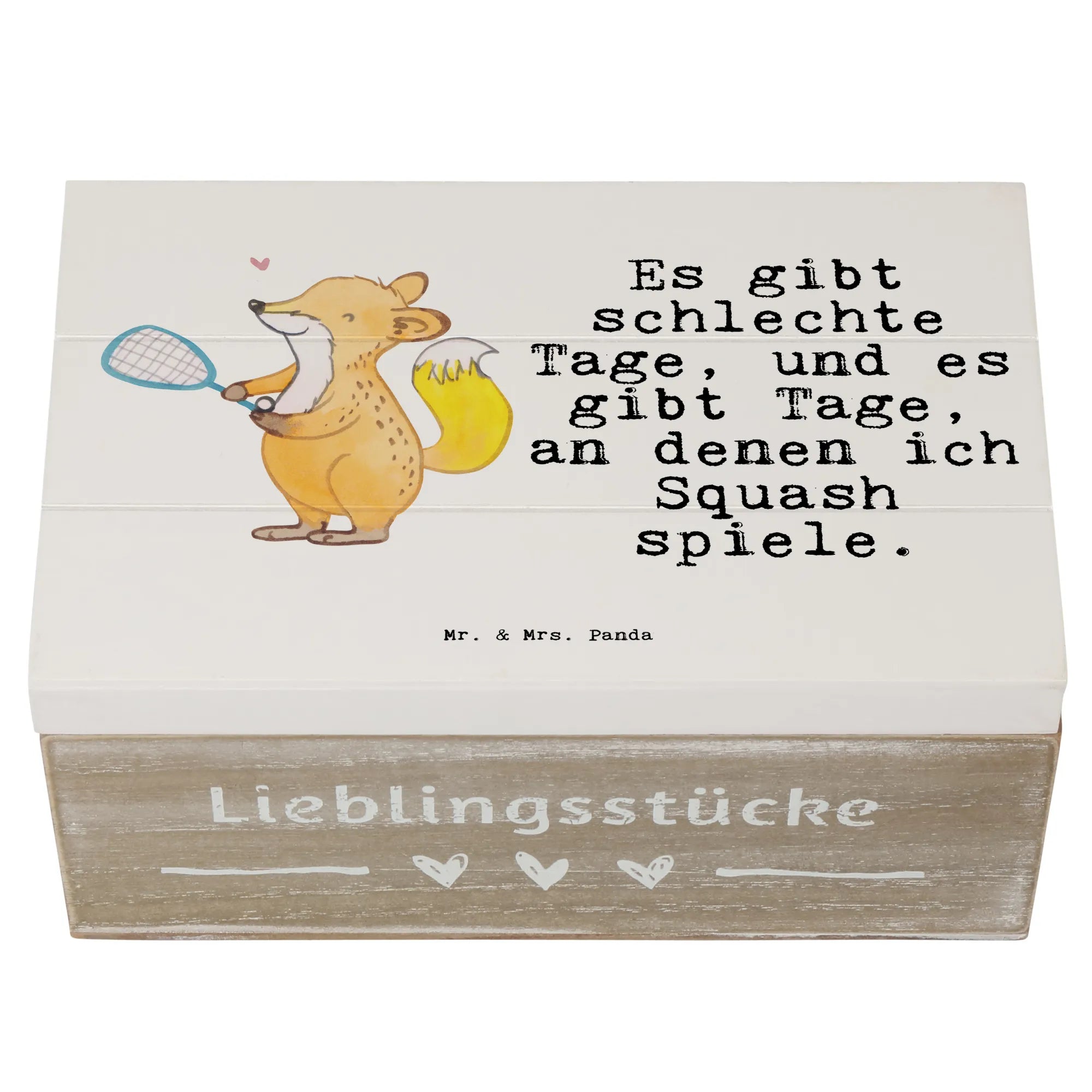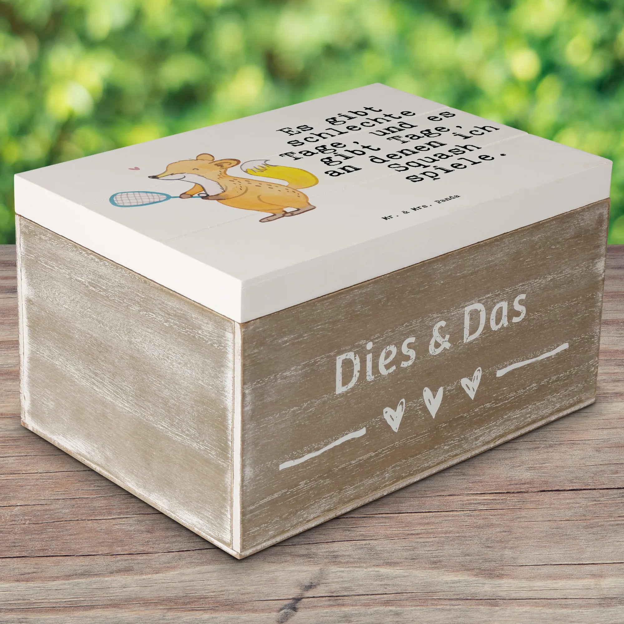 Wooden chest Fox playing squash - 22 x 15 cm