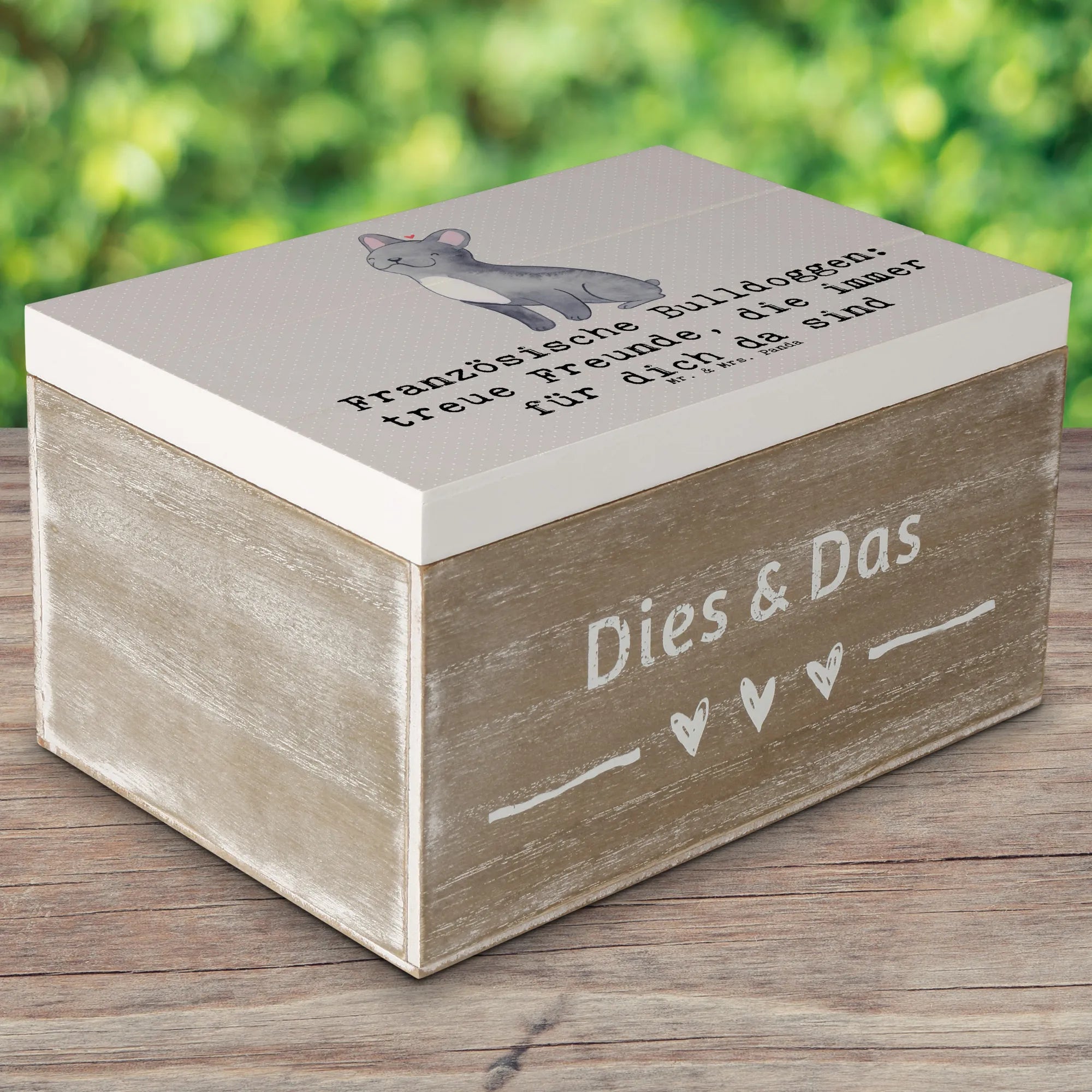 Wooden chest Französische Bulldoggen: treue Freunde, die immer für dich da sind - 22 x 15 cm - Grey Pastel