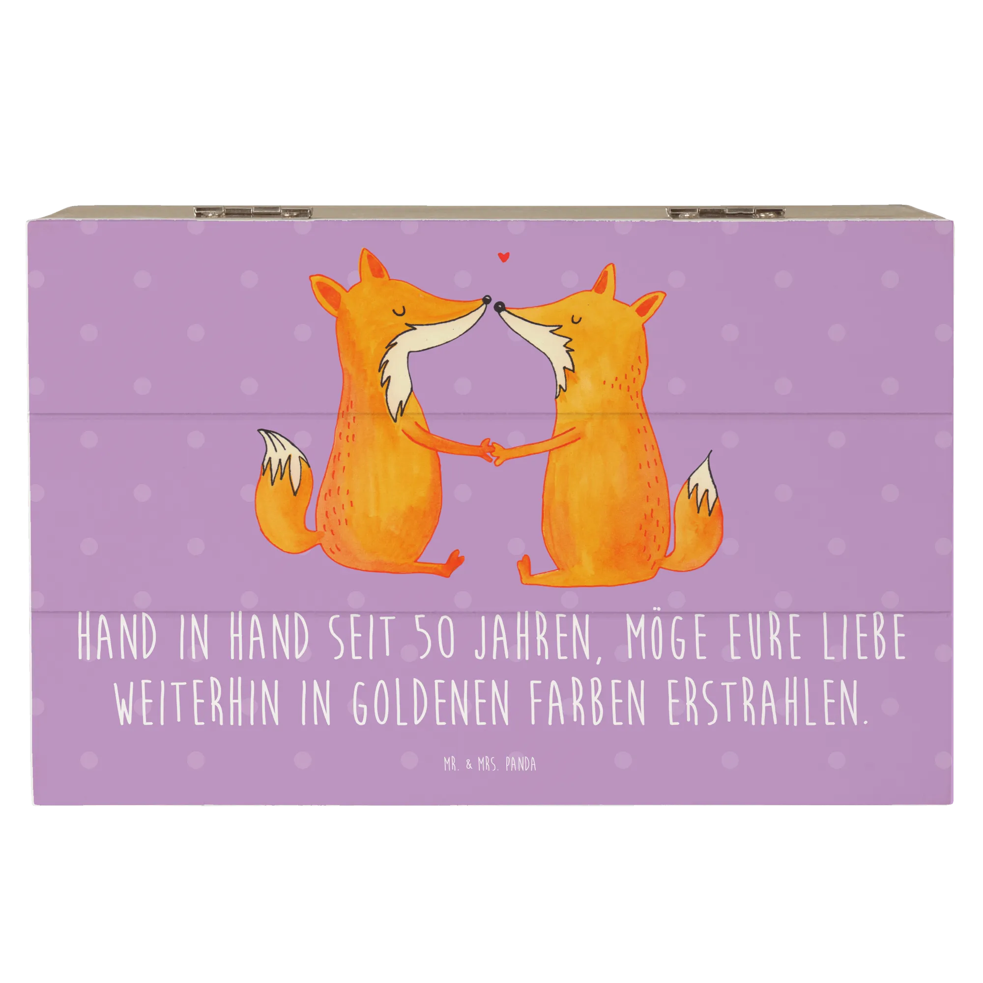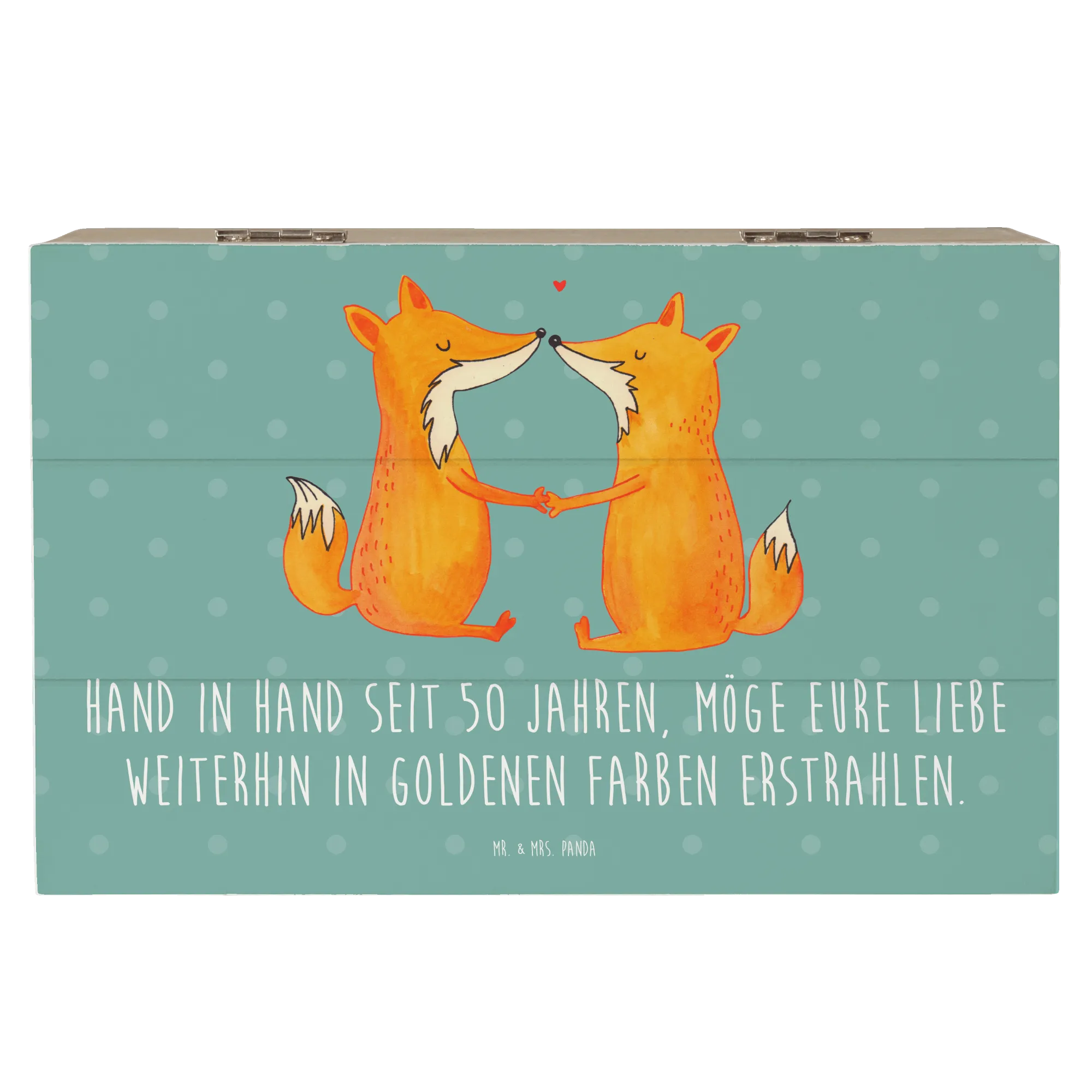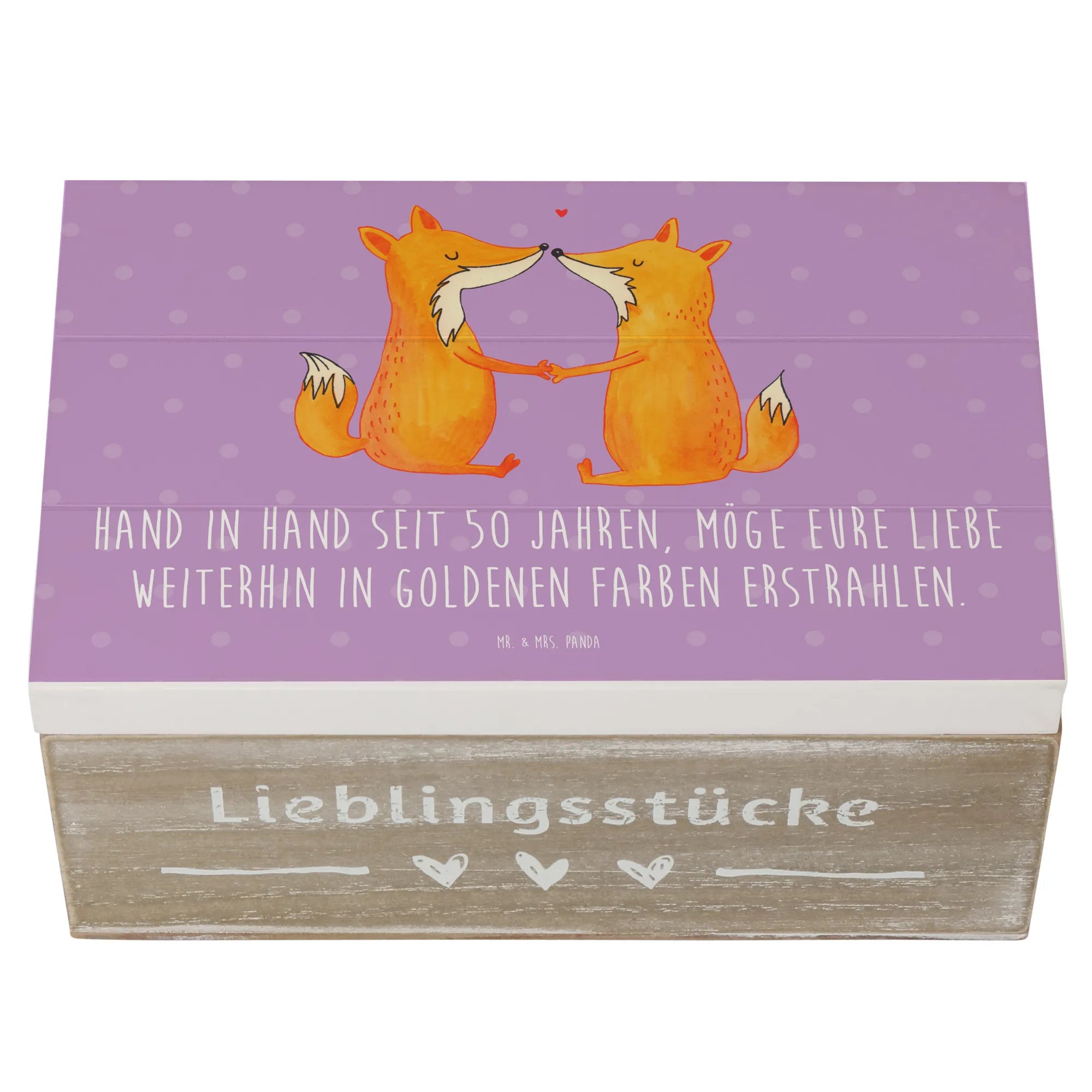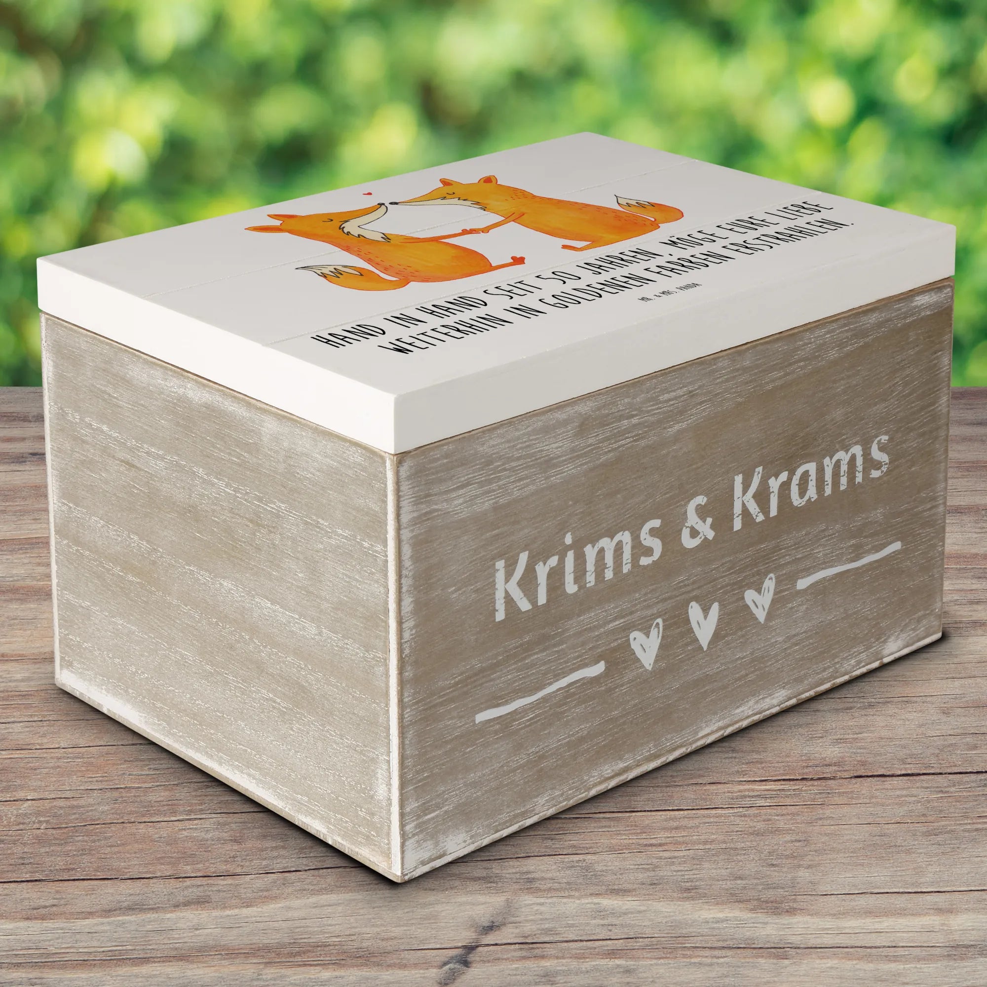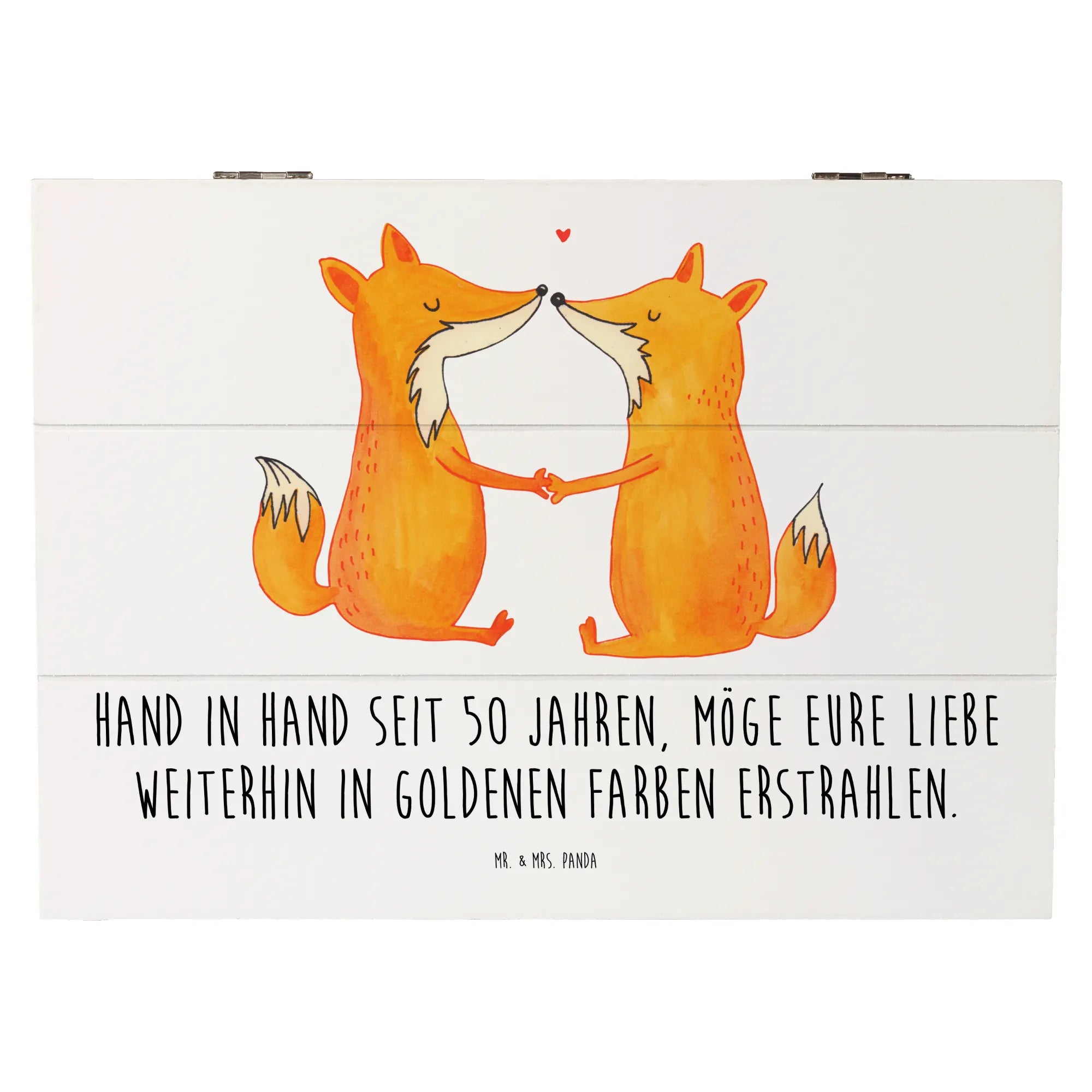 Wooden chest Hand in Hand seit 50 Jahren, möge eure Liebe weiterhin in goldenen Farben erstrahlen. - 22 x 15 cm - White