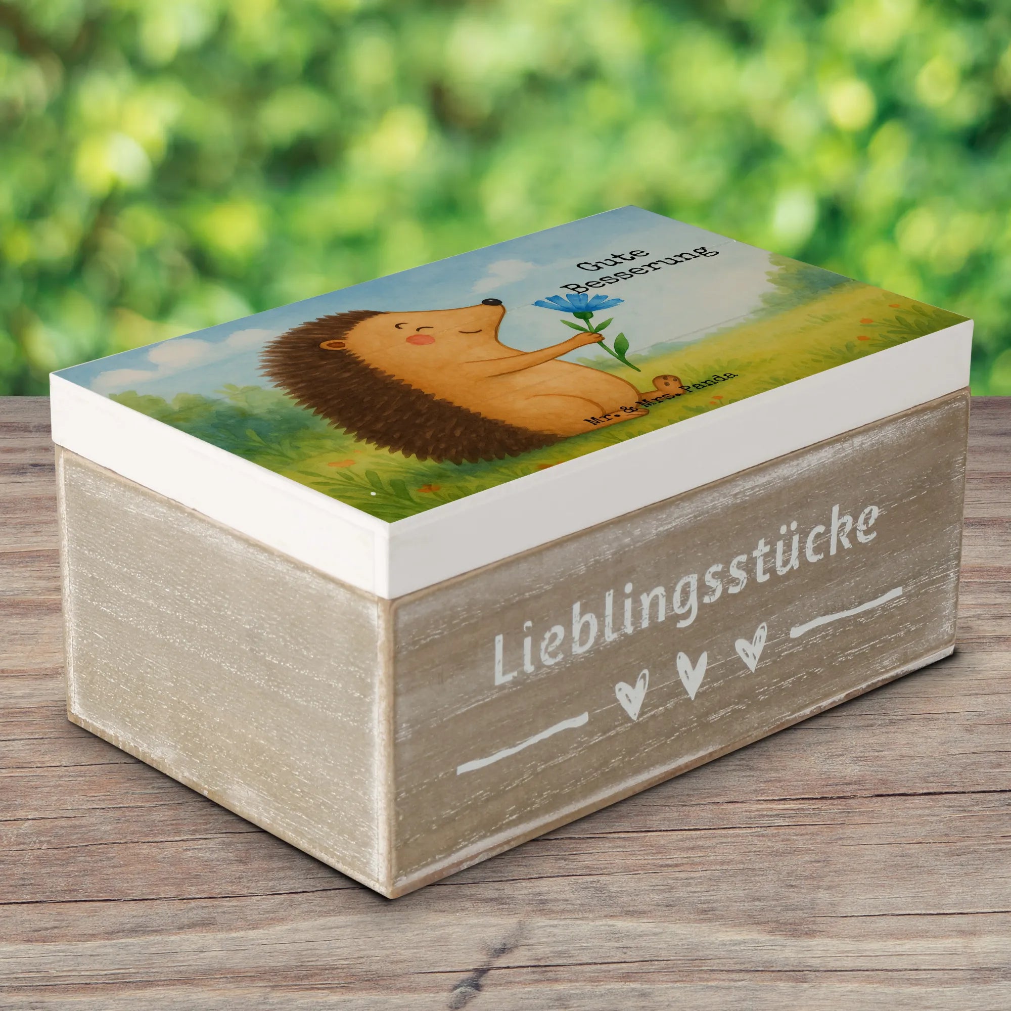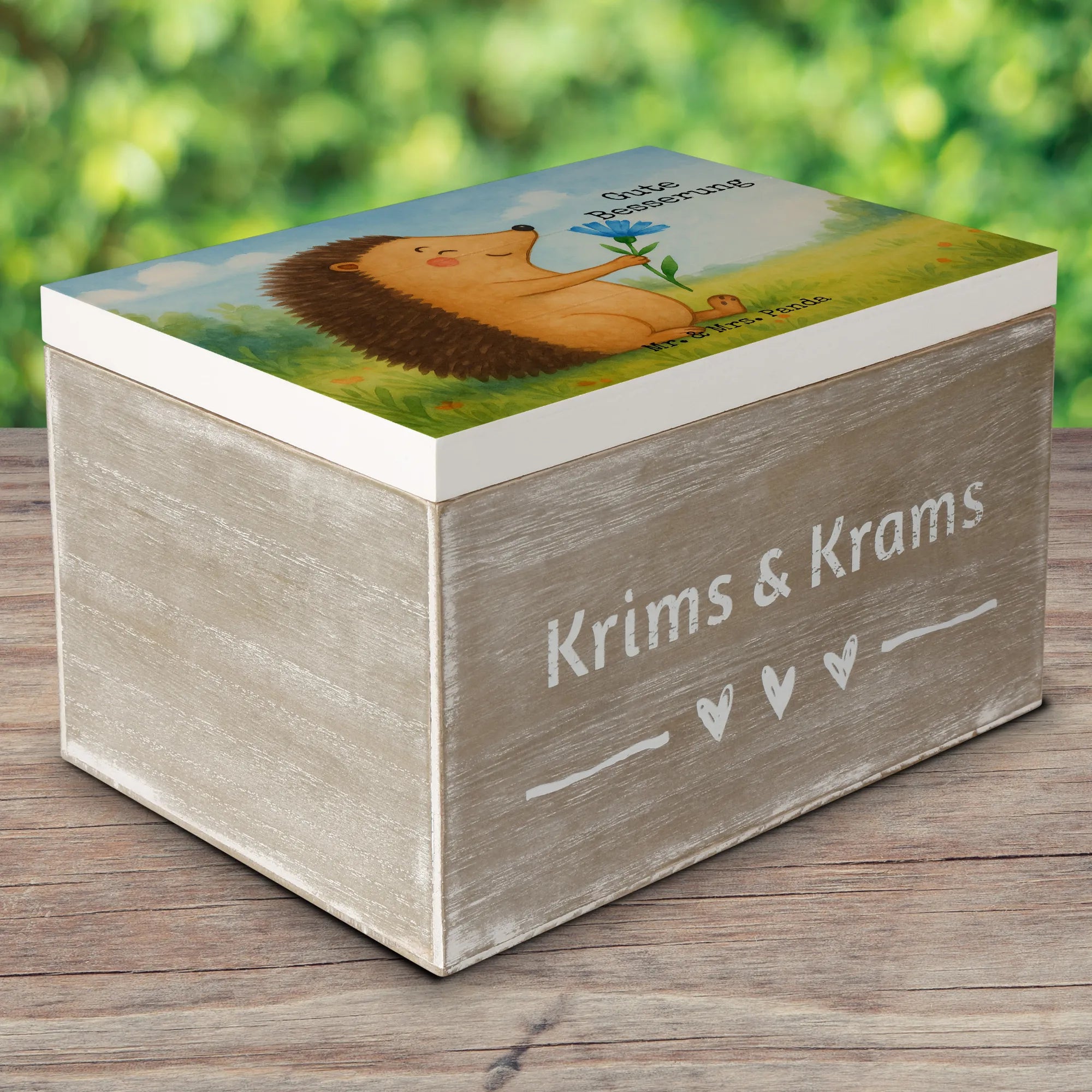 Wooden chest Hedgehog Flower Design - 22 x 15 cm - with a saying