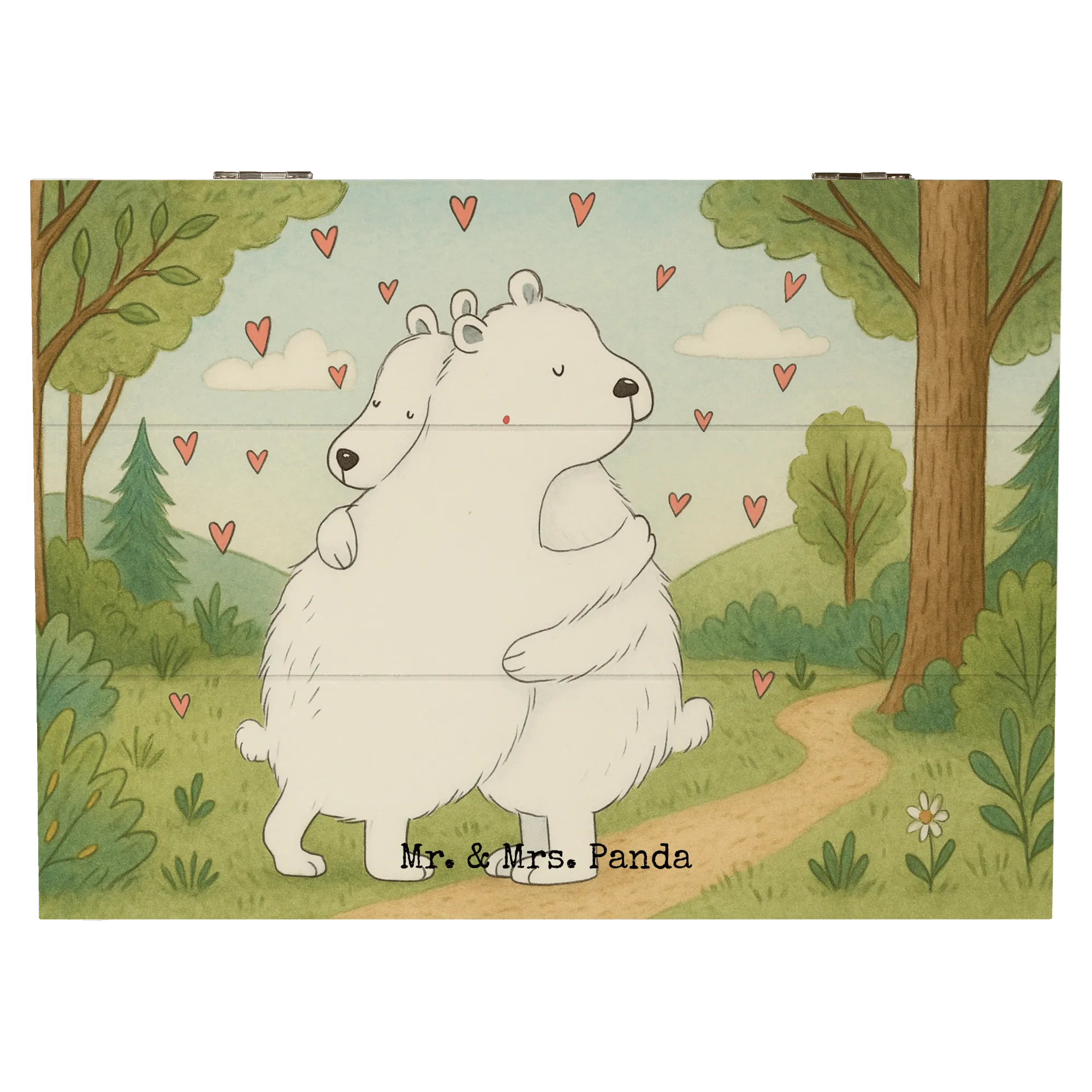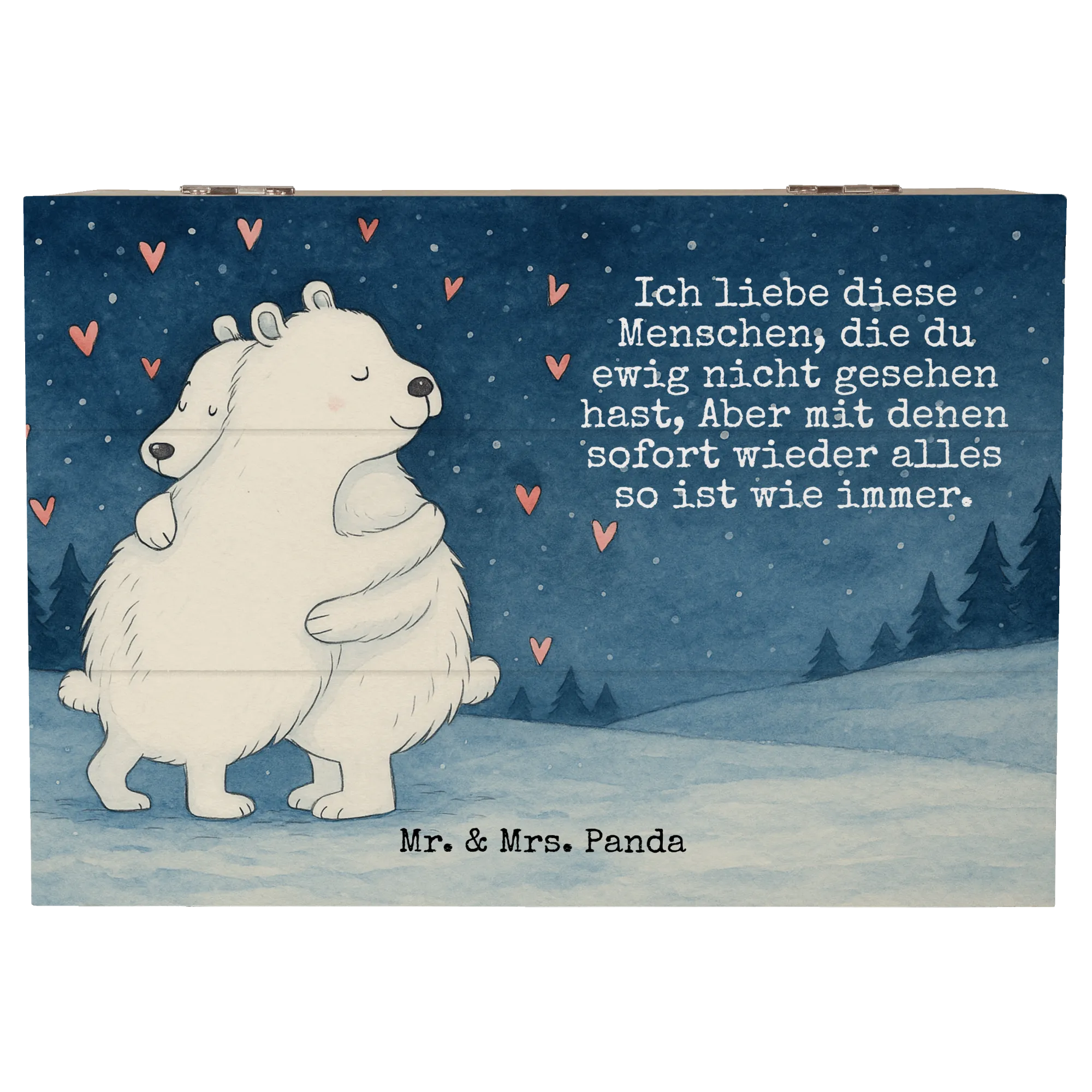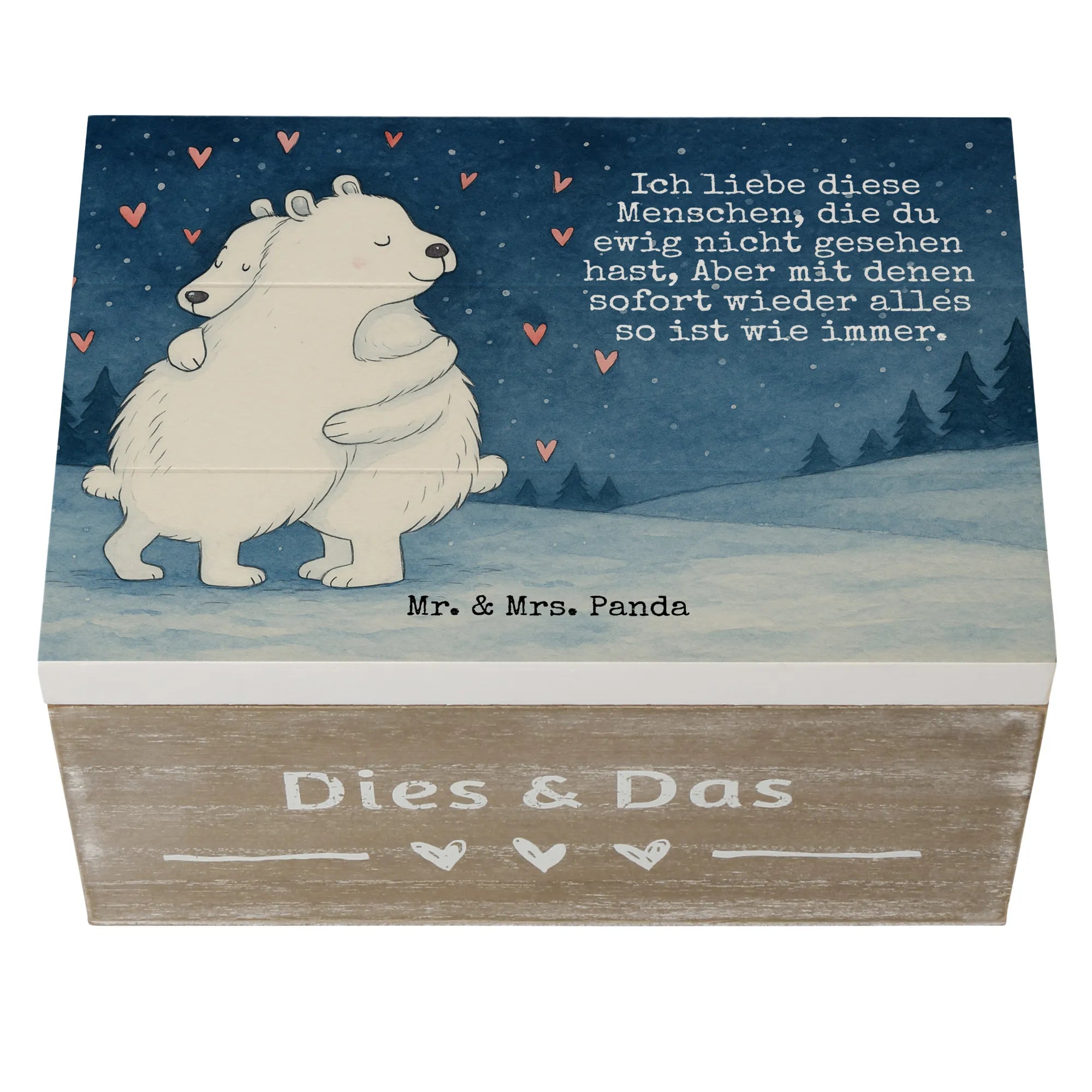 Wooden chest Icebear Embrace Design - 22 x 15 cm - with a saying