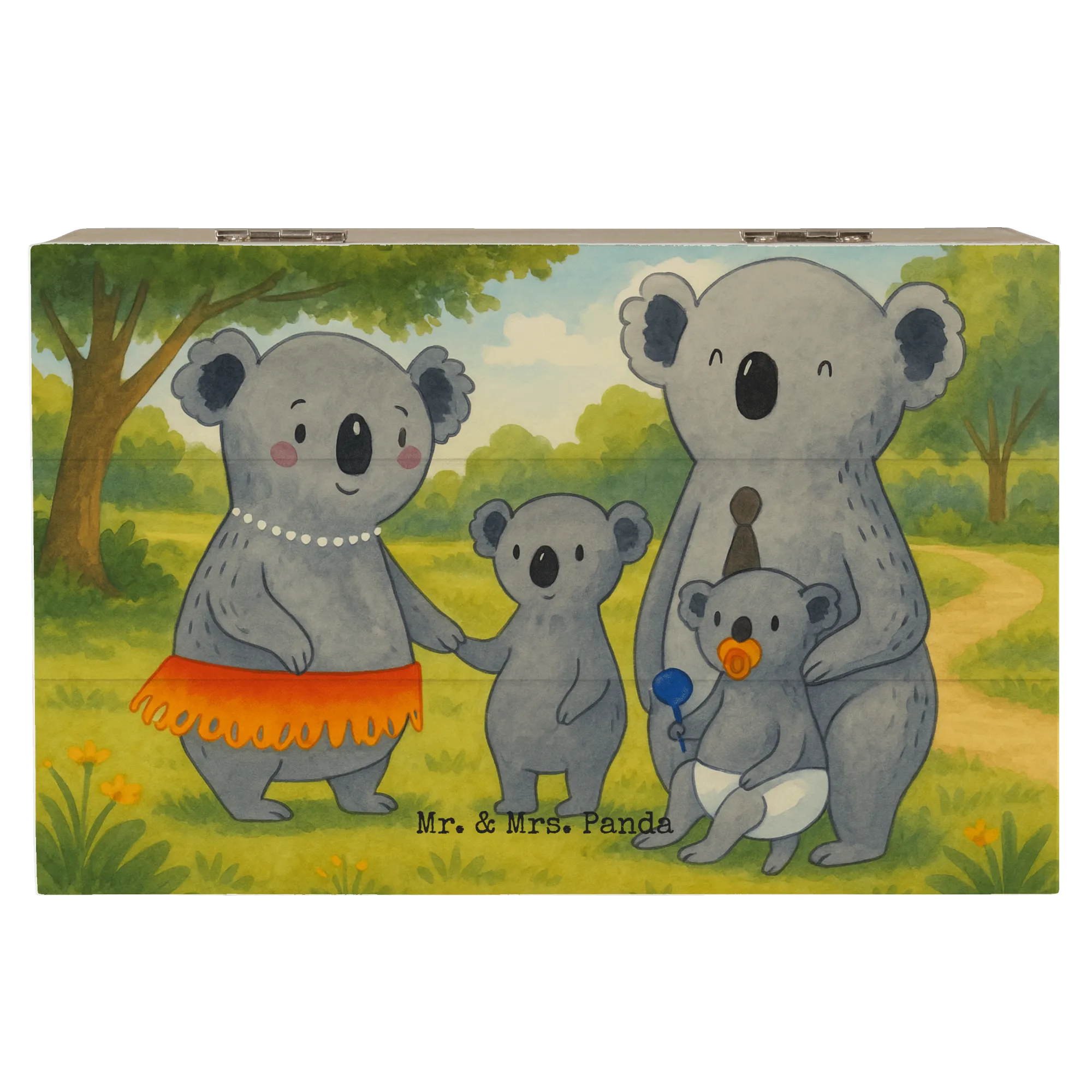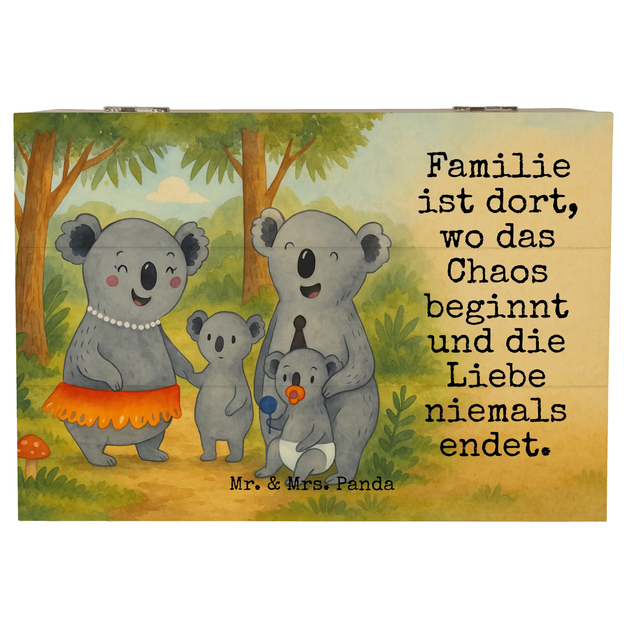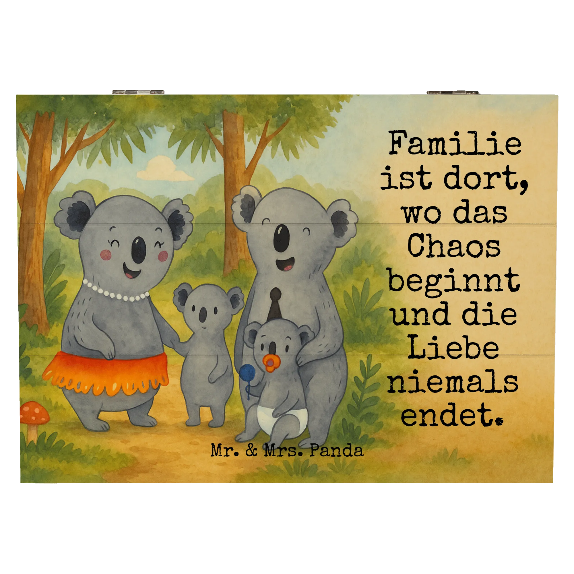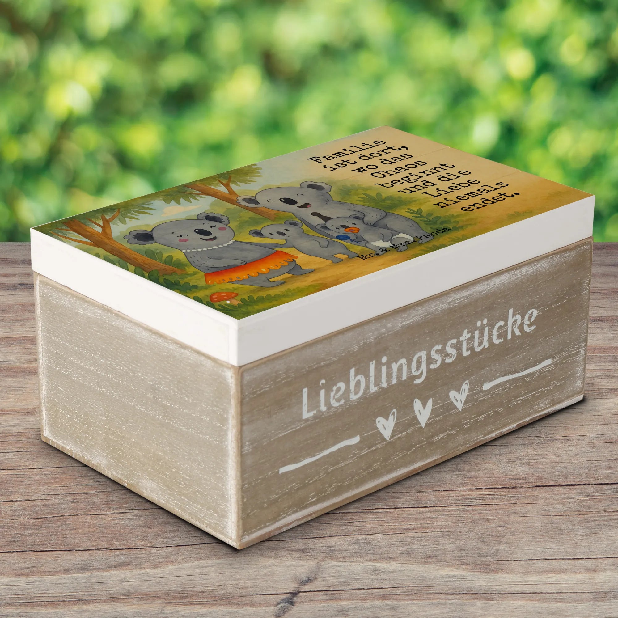 Wooden chest Koala Family Design - 22 x 15 cm - with a saying