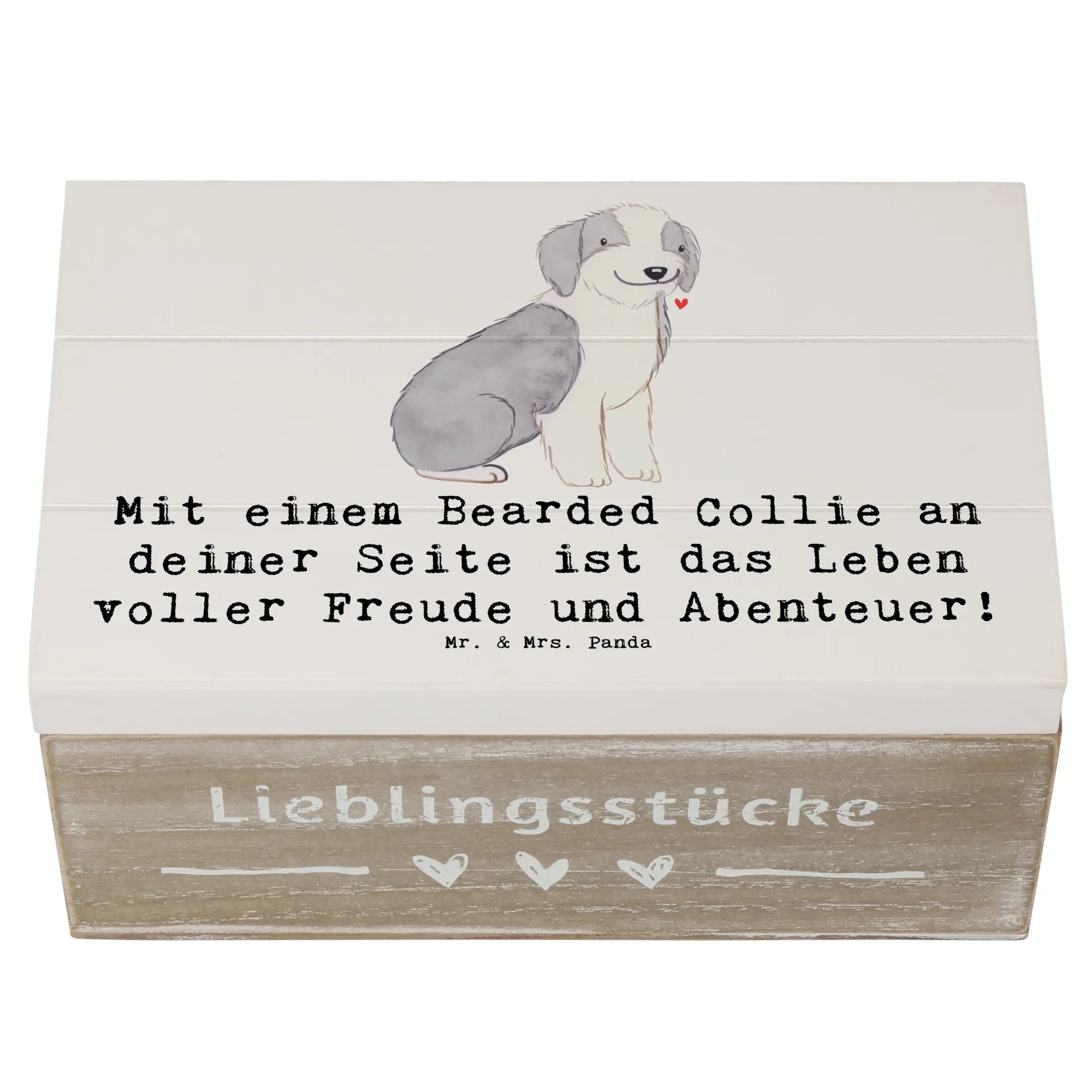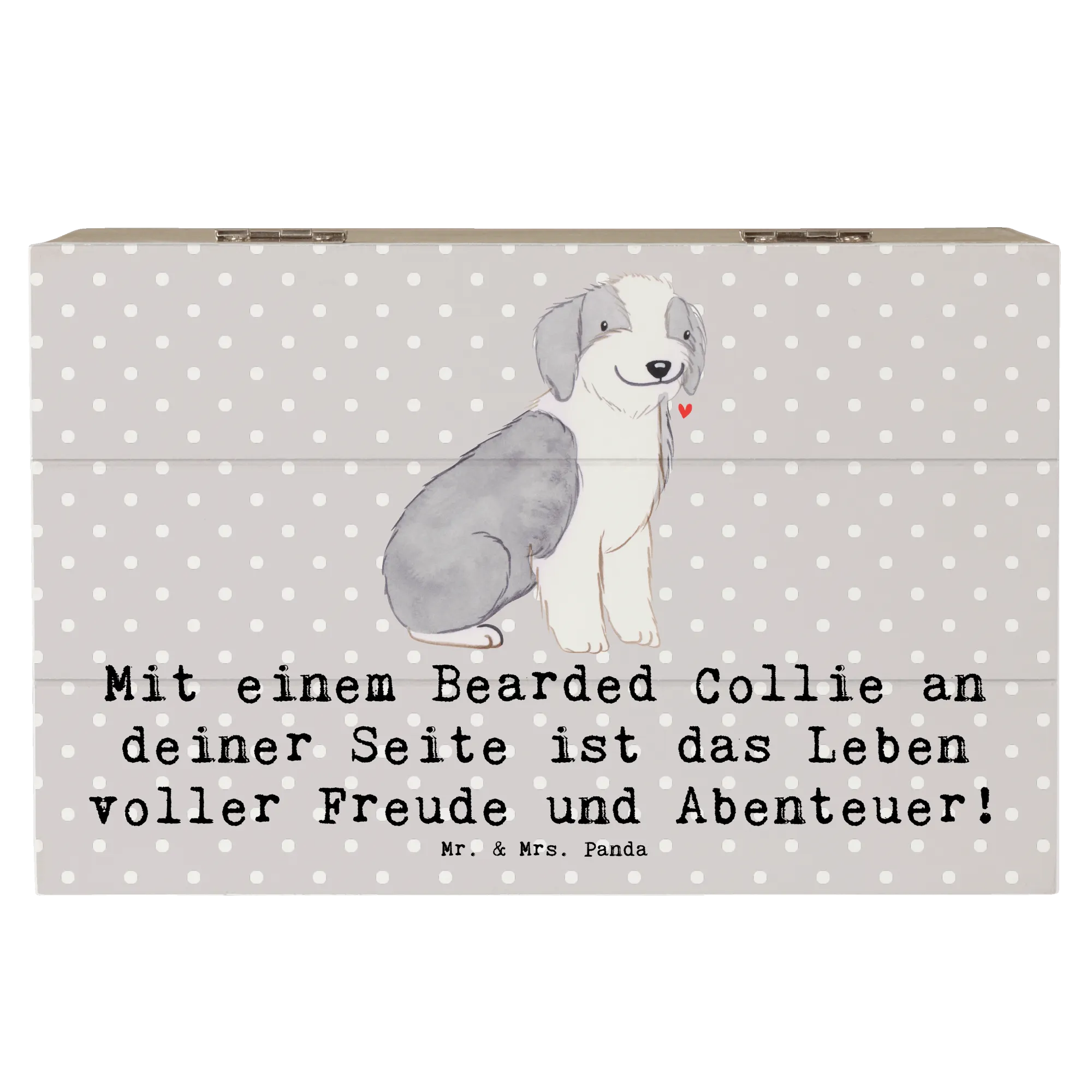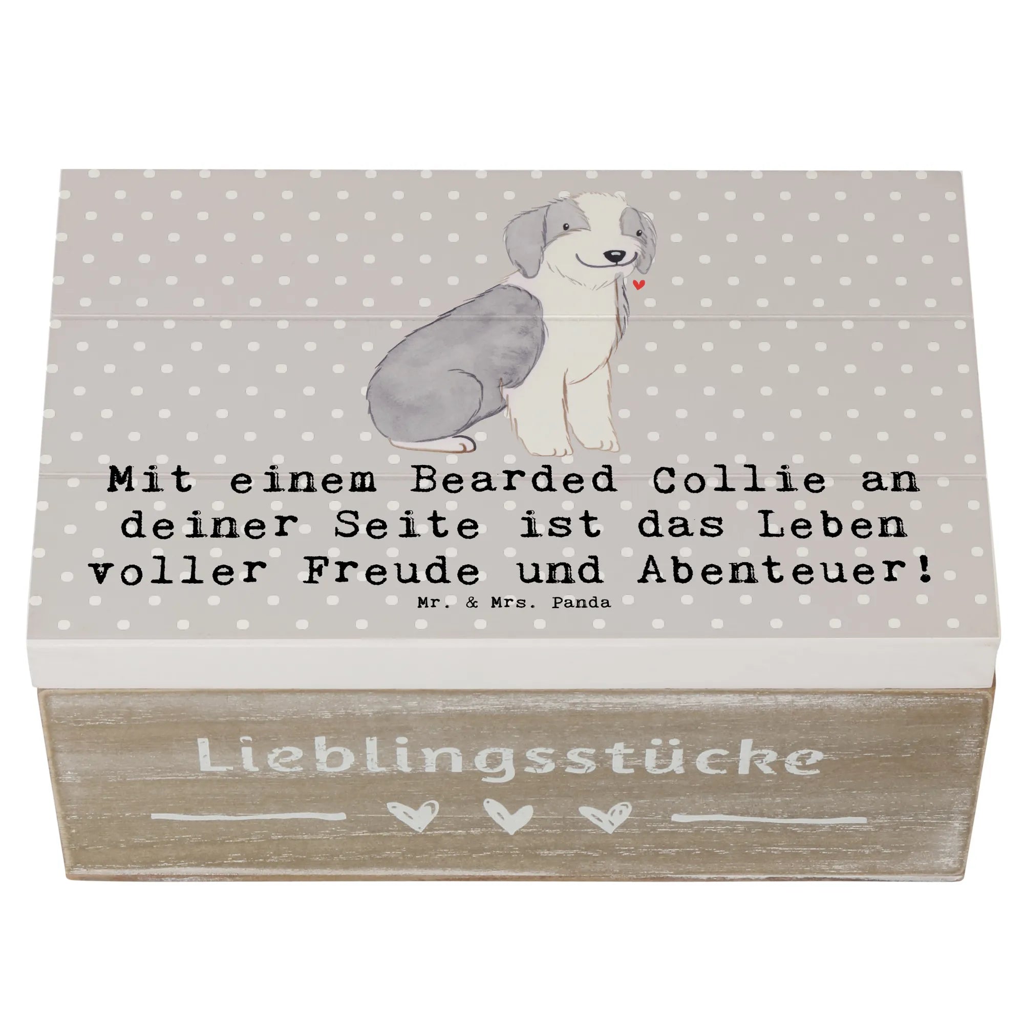 Wooden chest Mit einem Bearded Collie an deiner Seite ist das Leben voller Freude und Abenteuer! - 22 x 15 cm - Grey Pastel