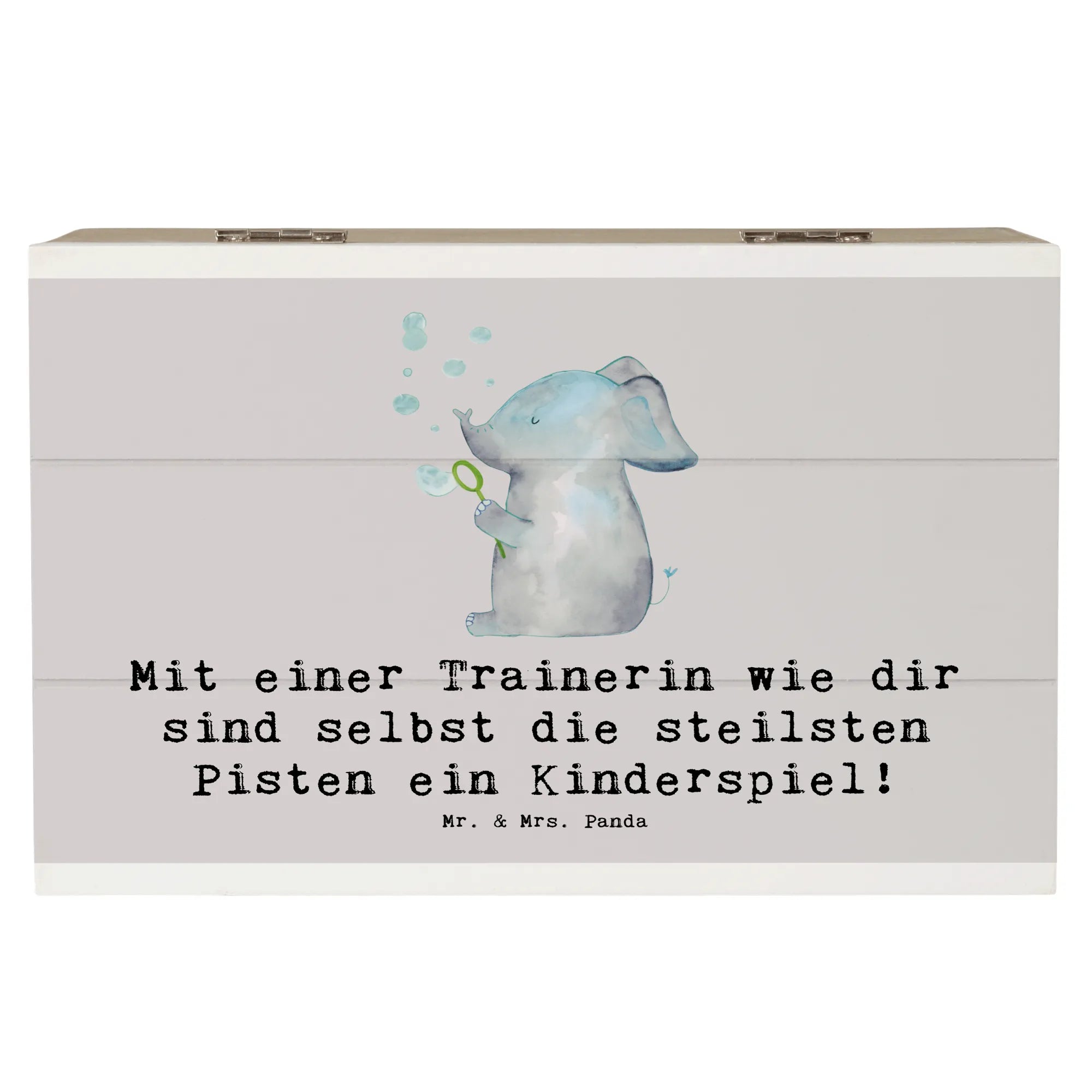 Wooden chest Mit einer Trainerin wie dir sind selbst die steilsten Pisten ein Kinderspiel! - 22 x 15 cm - Pastel Gray