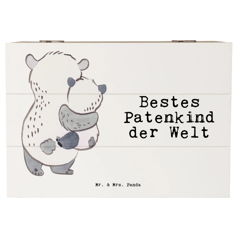 Wooden chest panda Best godchild in the world - 22 x 15 cm - White