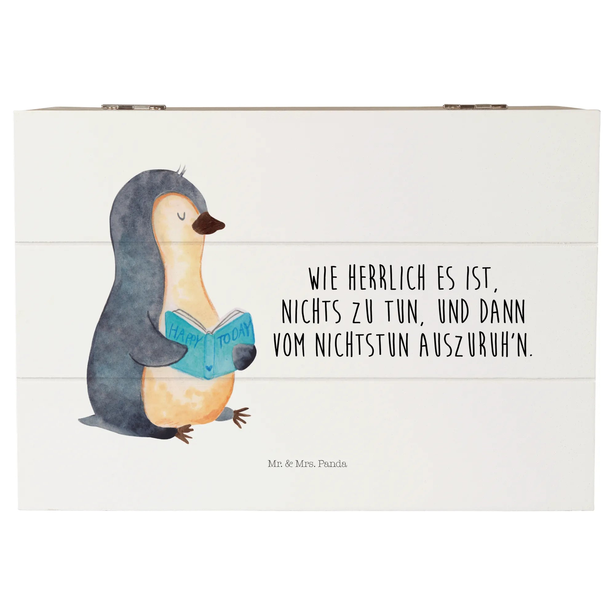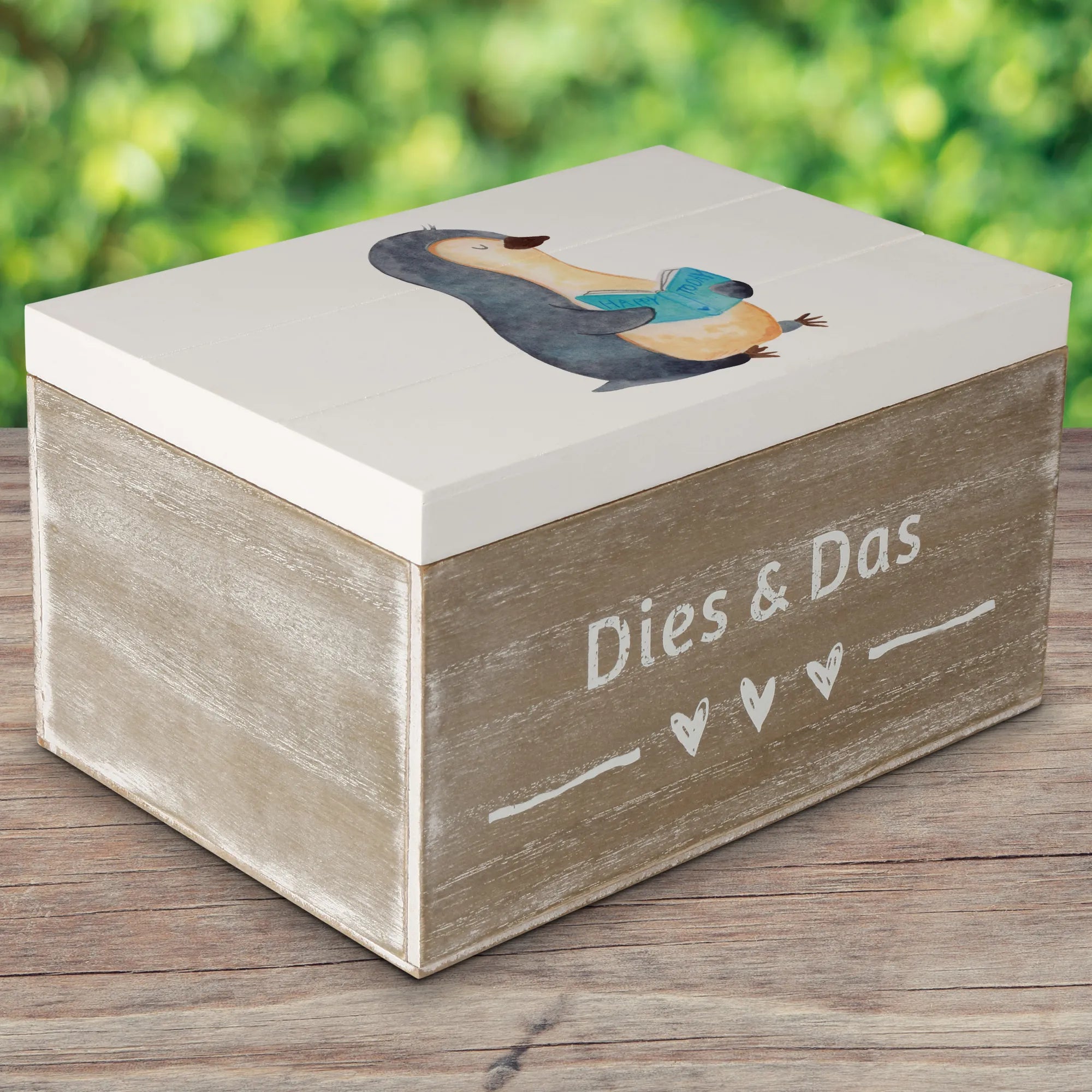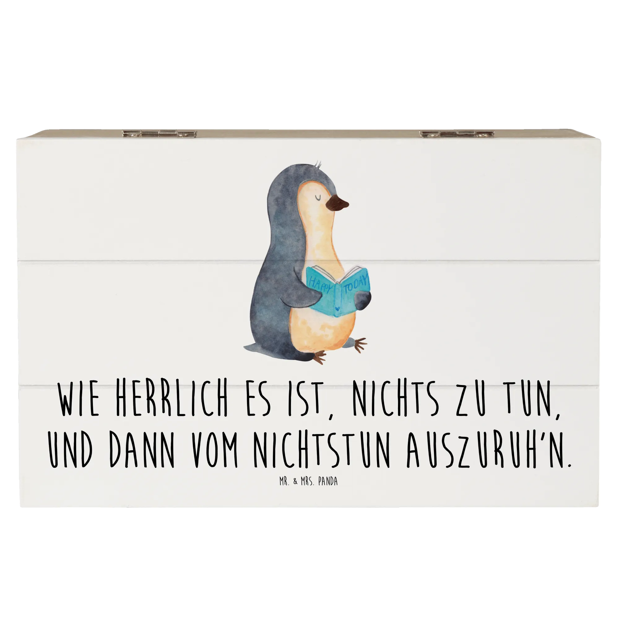Wooden chest Penguin A book - 22 x 15 cm - with saying - White