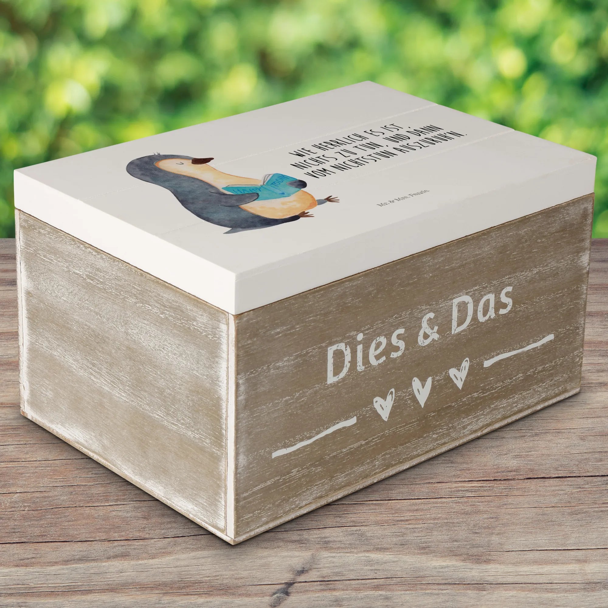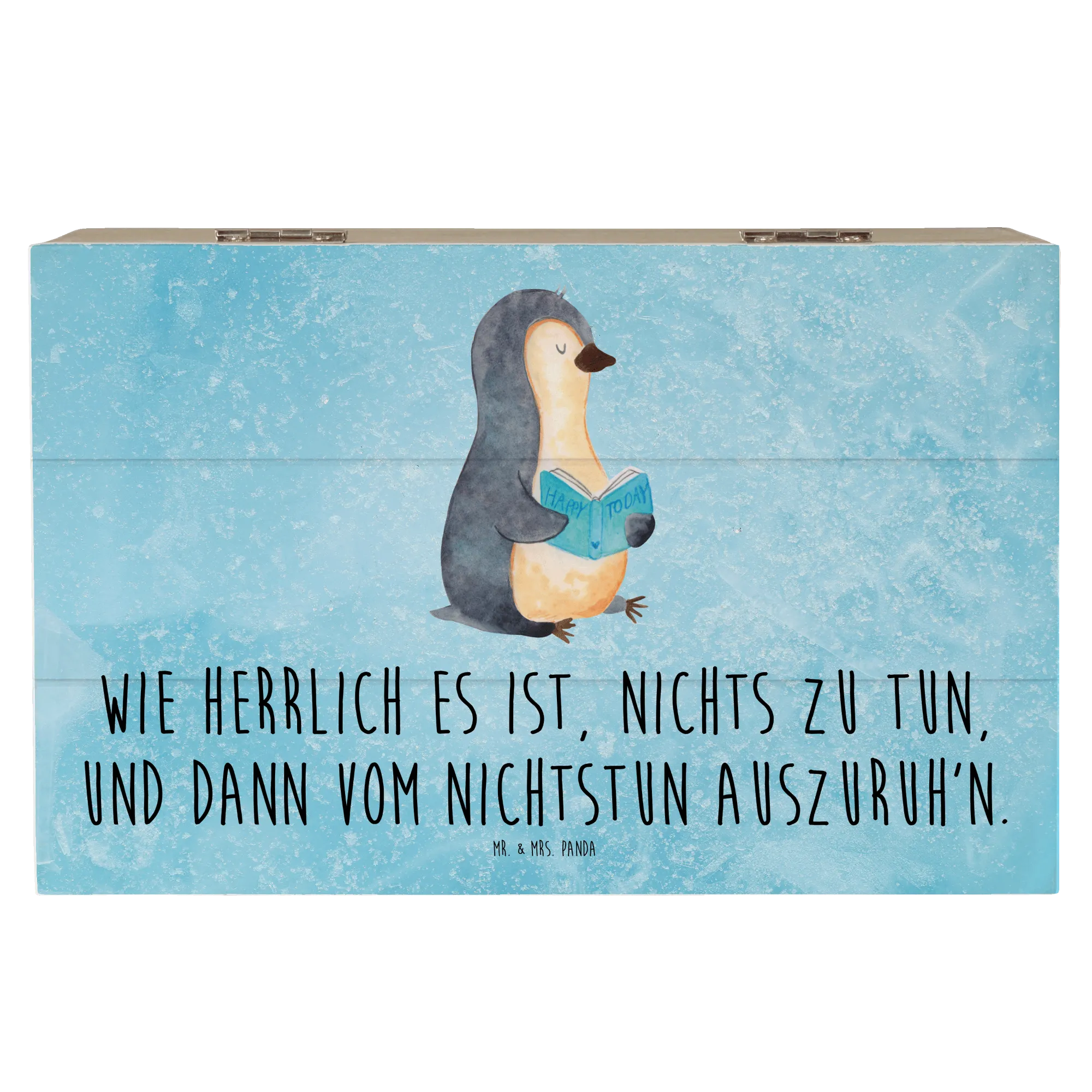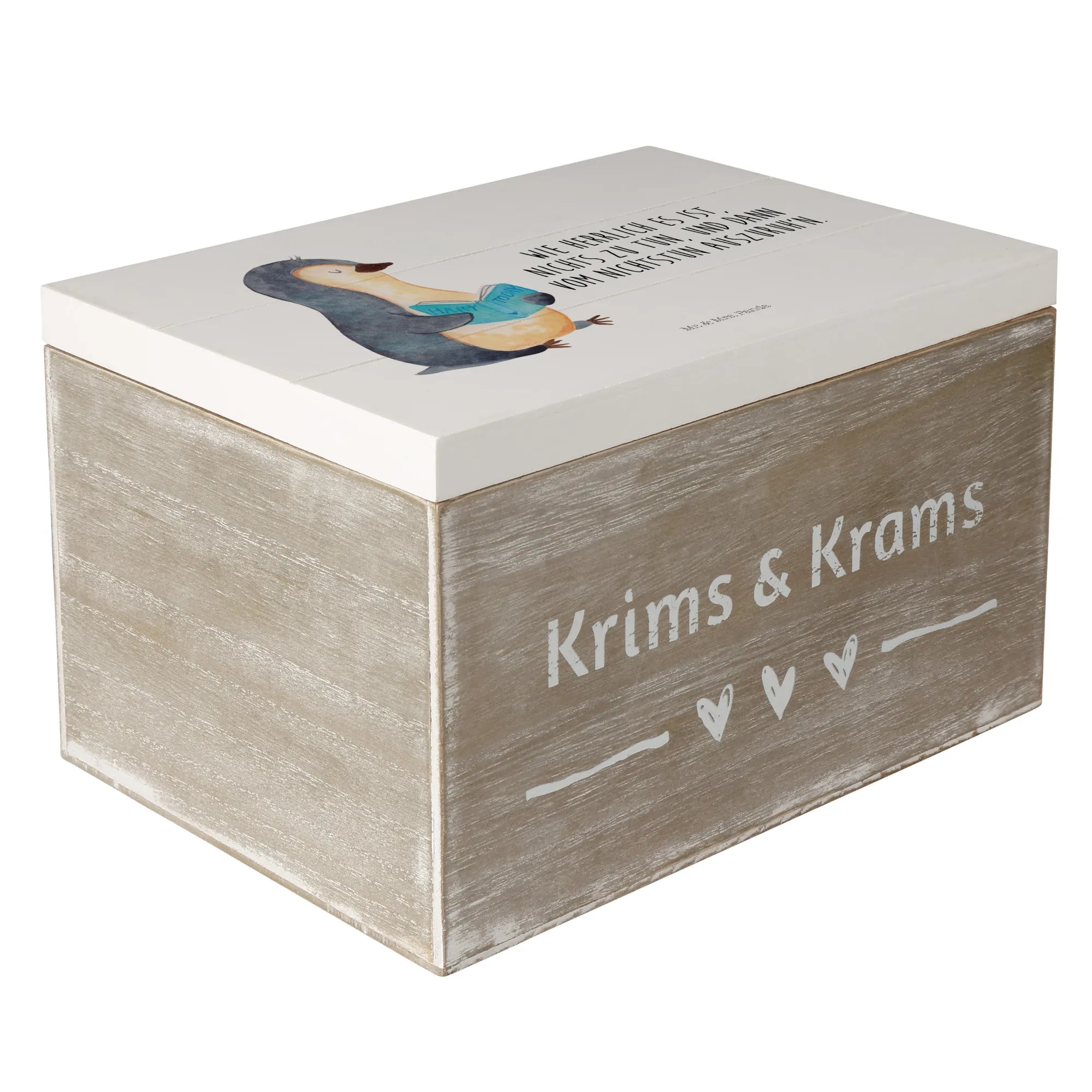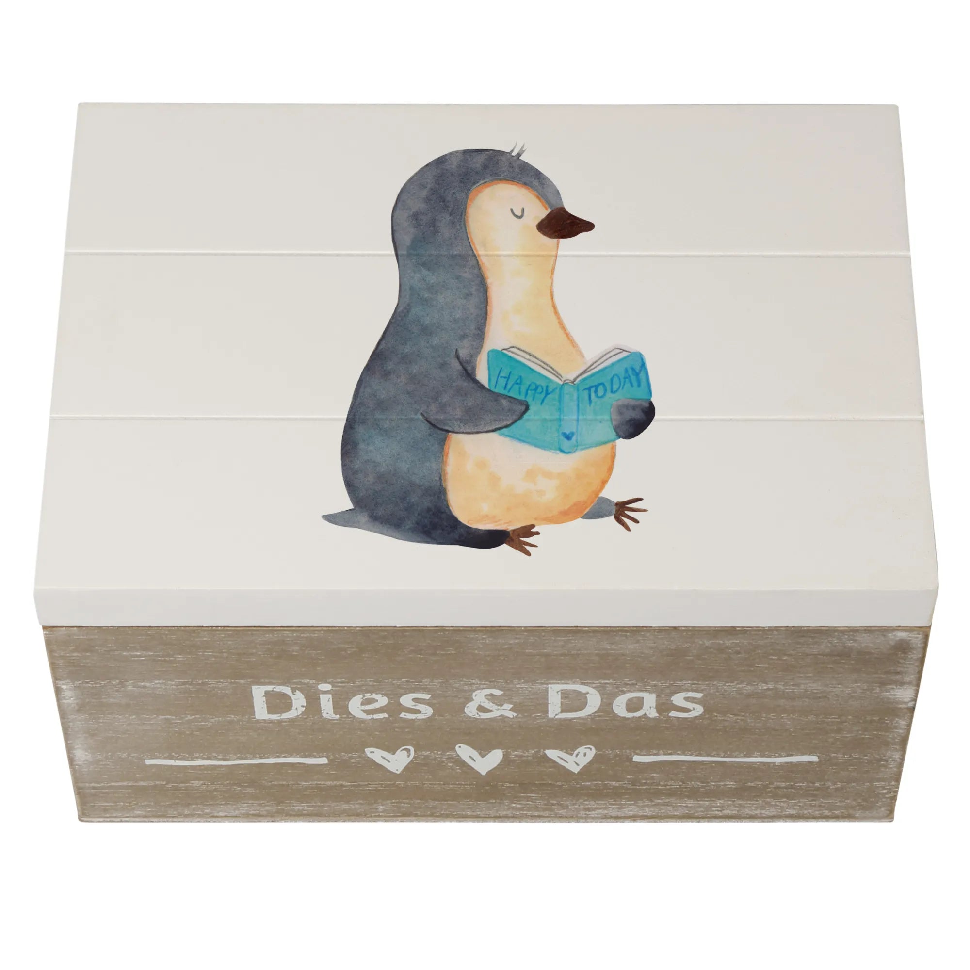 Wooden chest Penguin A book - 22 x 15 cm - with saying - White