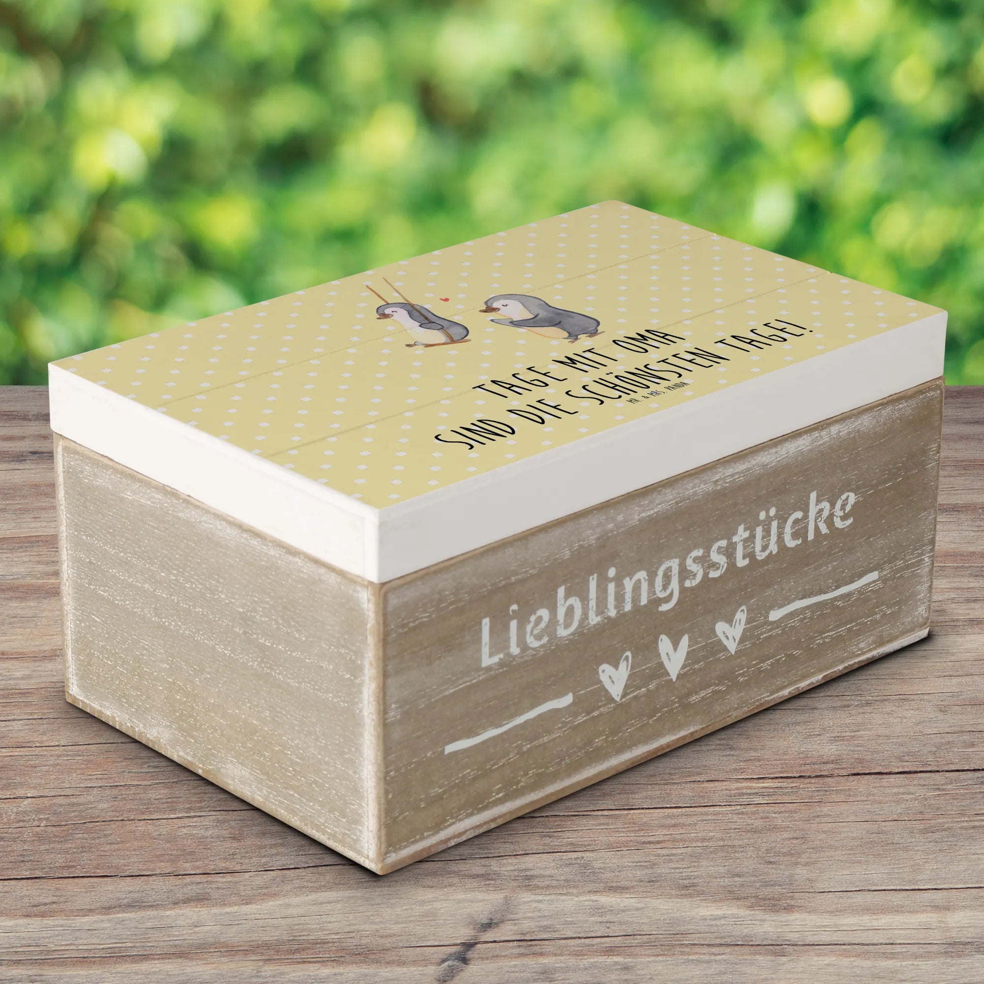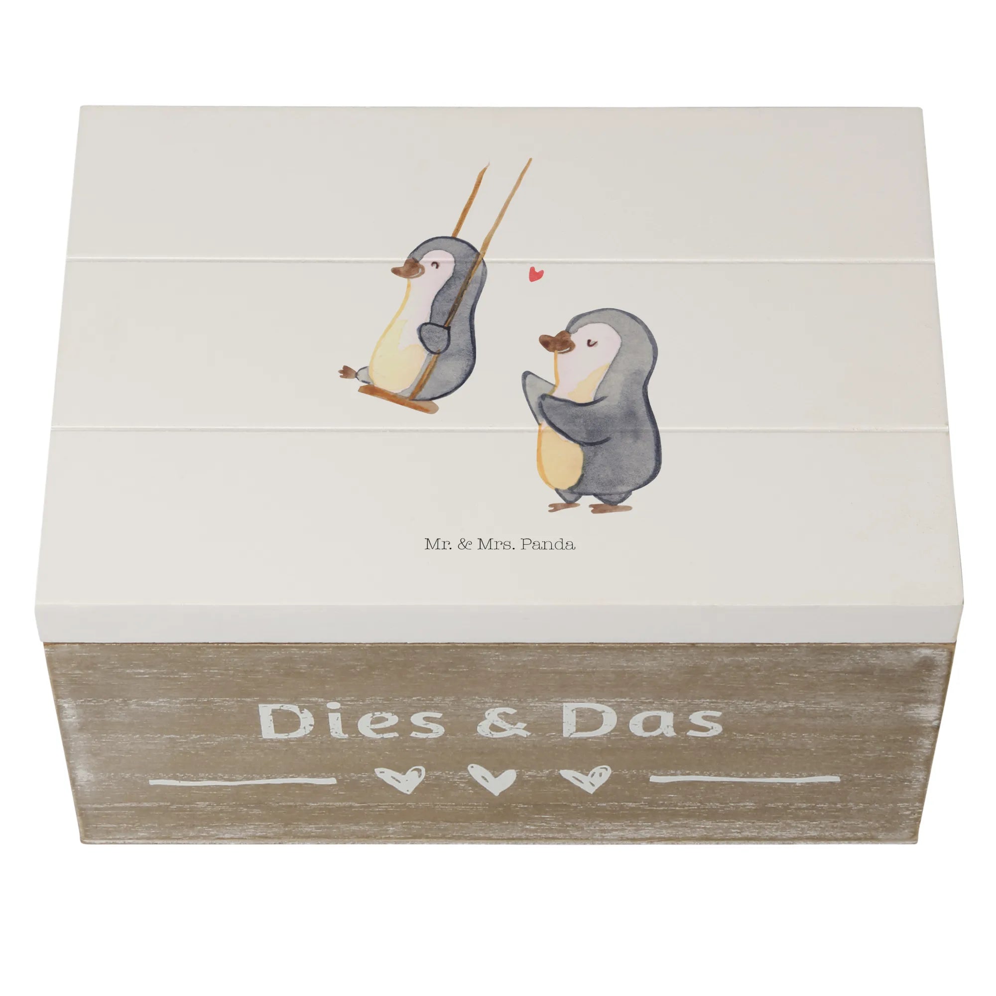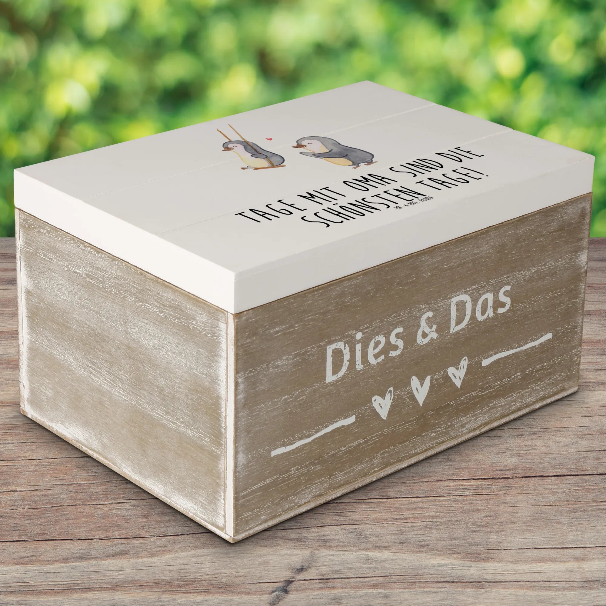 Wooden chest Penguin and grandma swing - 22 x 15 cm - with saying - White