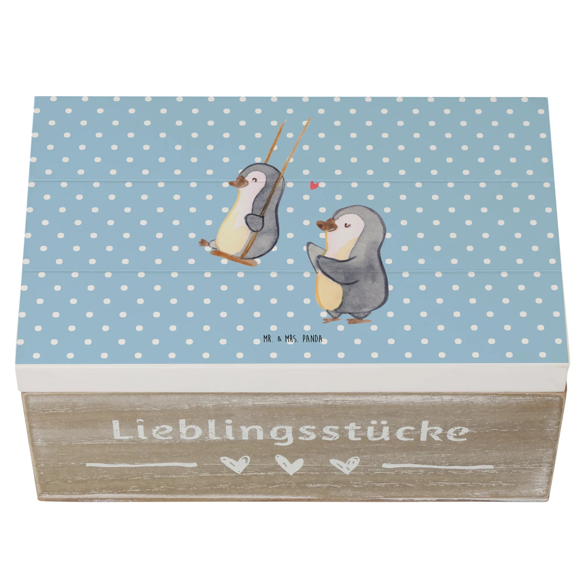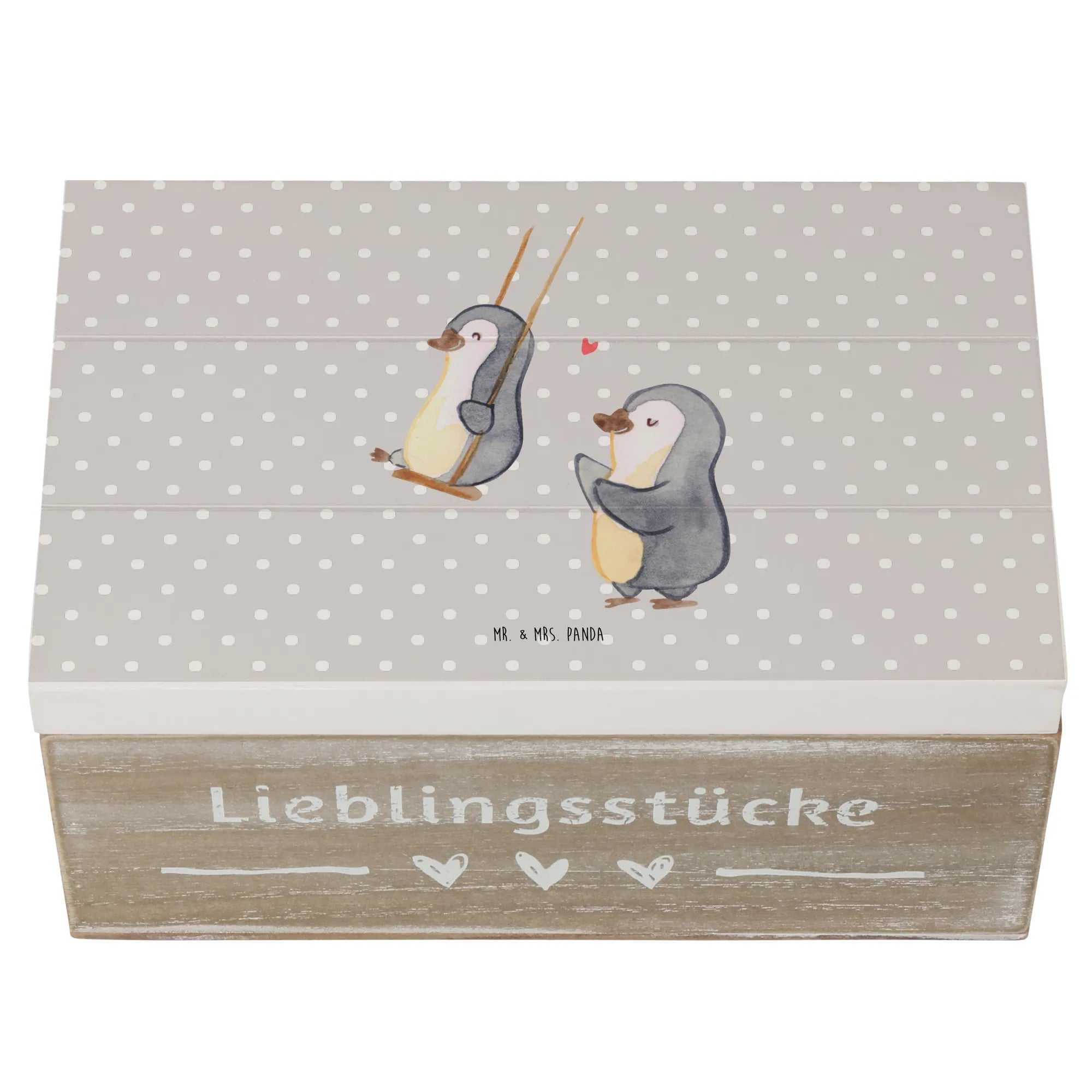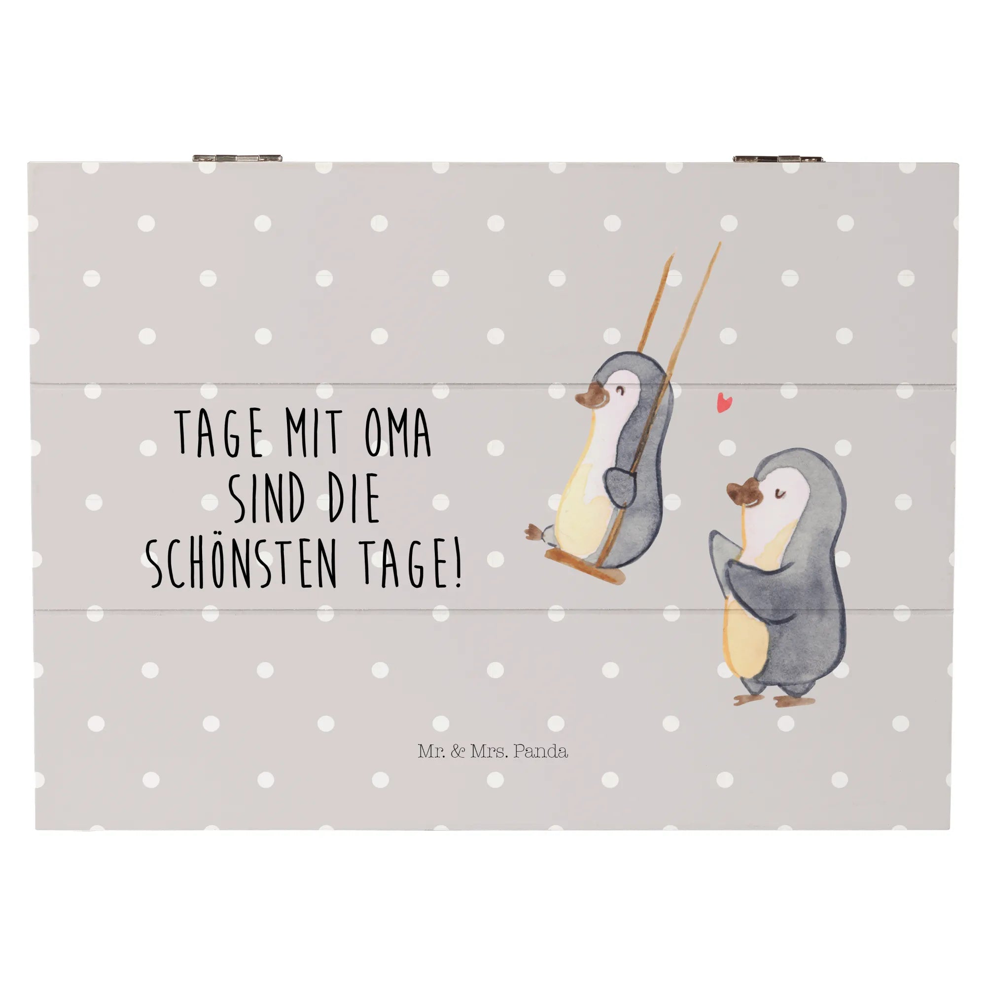 Wooden chest Penguin and grandma swing - 22 x 15 cm - with saying - White