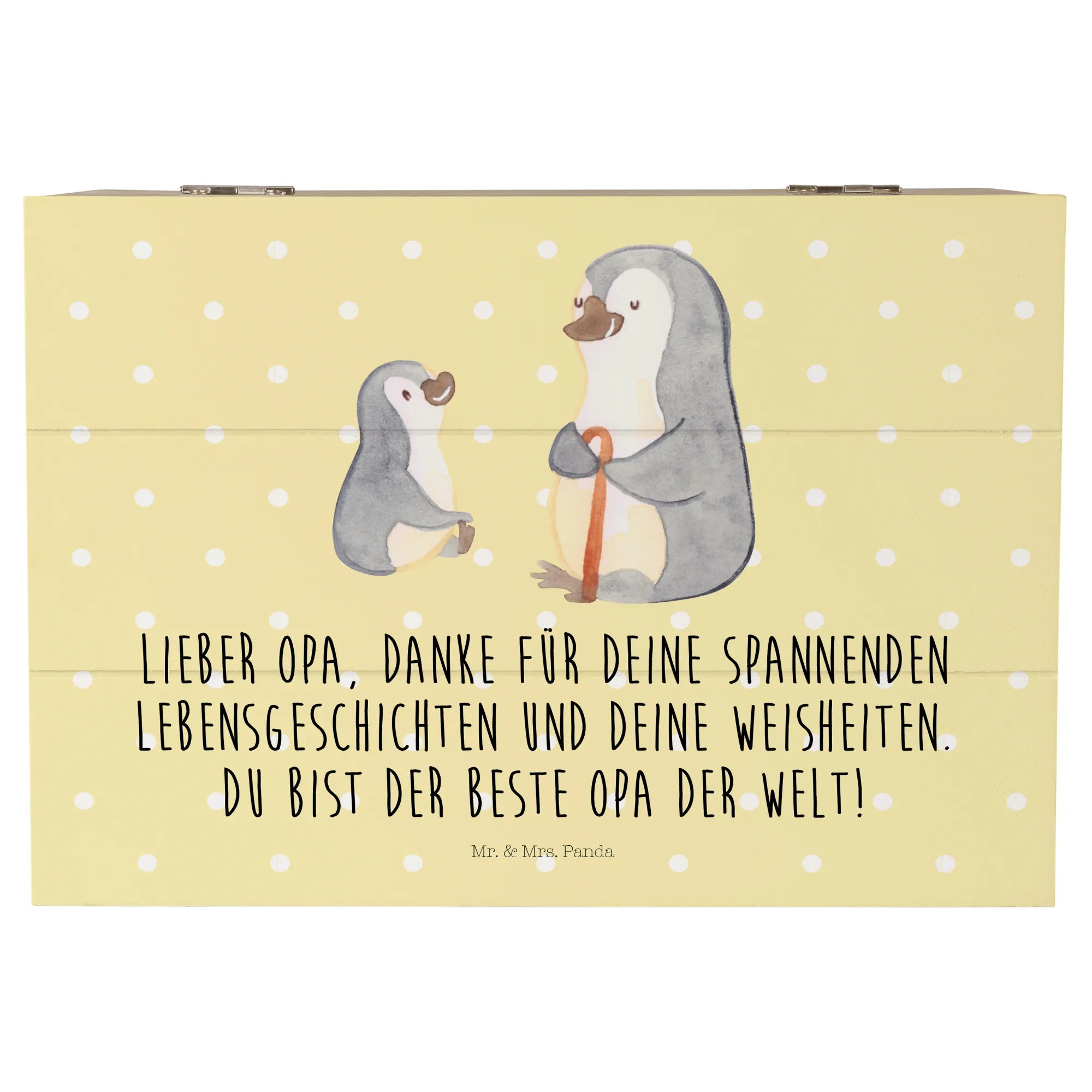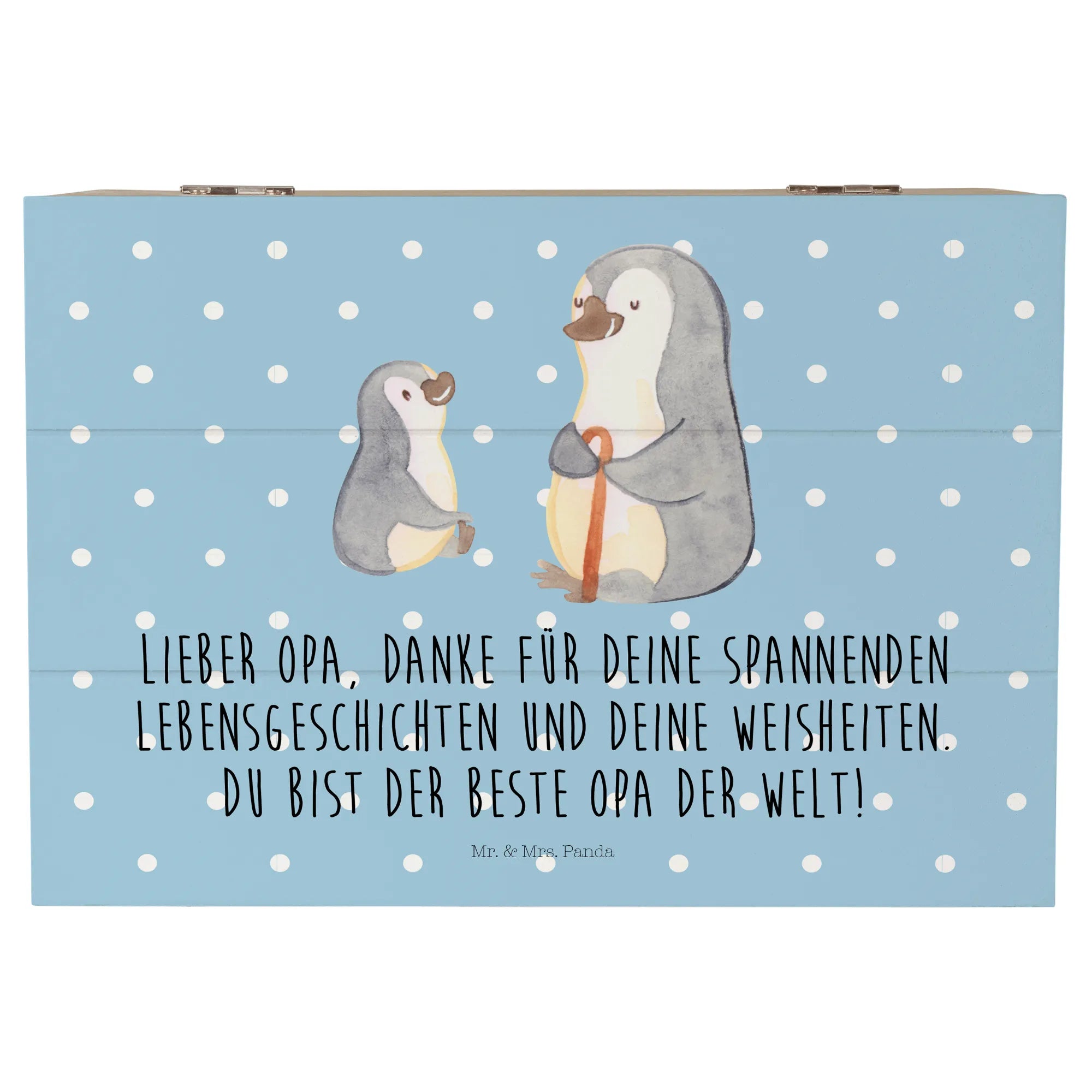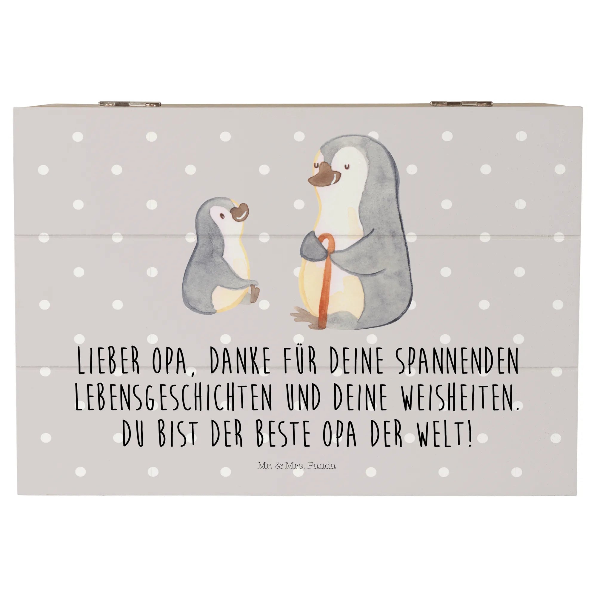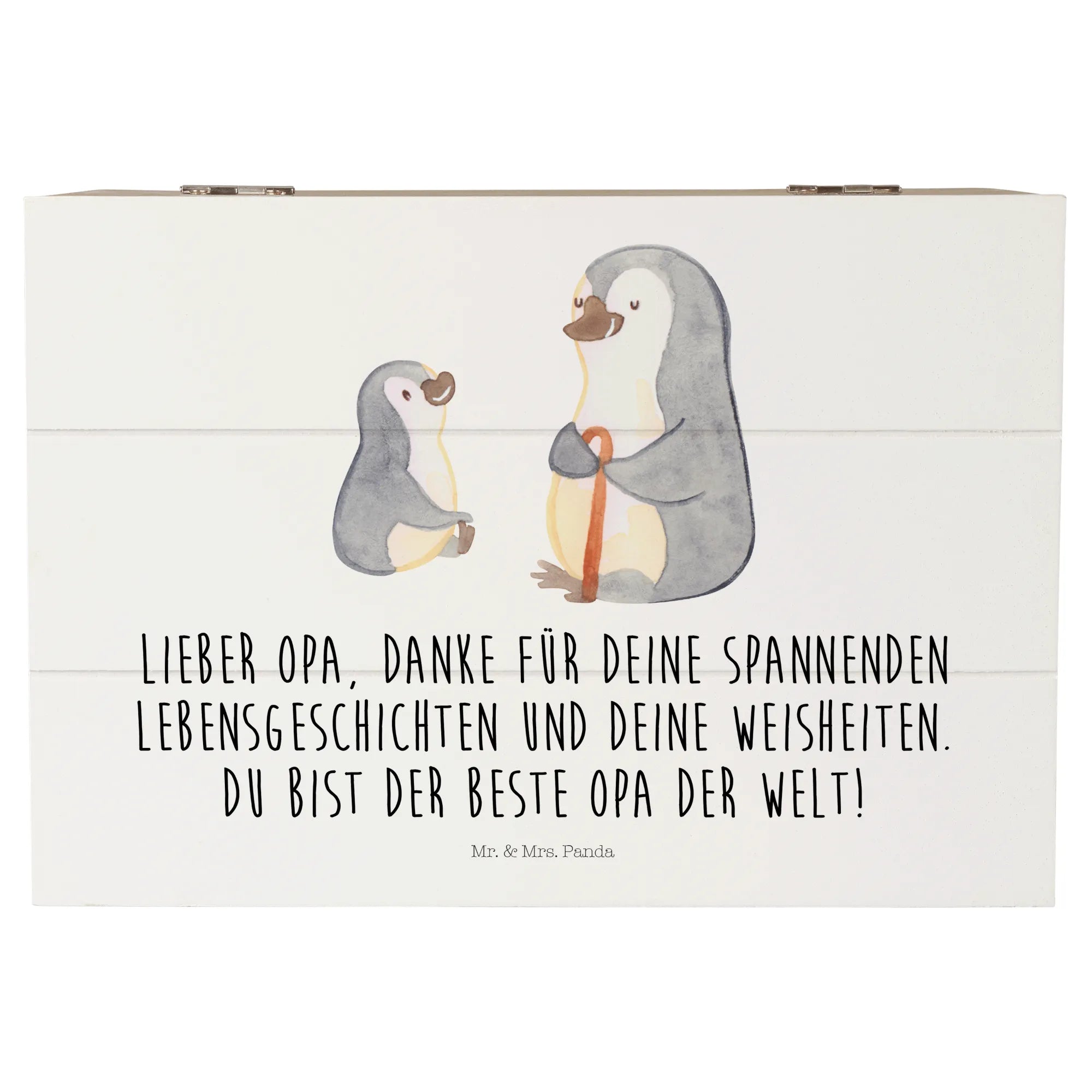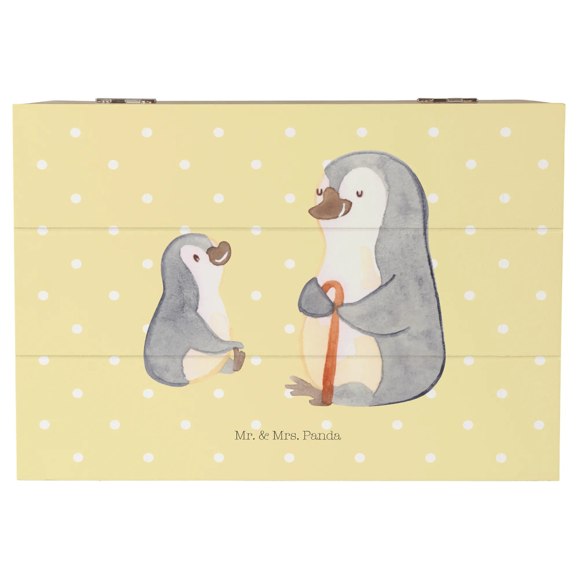 Introducing the adorable Wooden Chest featuring our delightful motif of a grandpa penguin and his grandkid, perfect for any loving family! This charming memory box from Mr. & Mrs. Panda is not just a storage solution; it’s a heartwarming treasure chest that embodies the special bond between grandparents and their grandchildren.