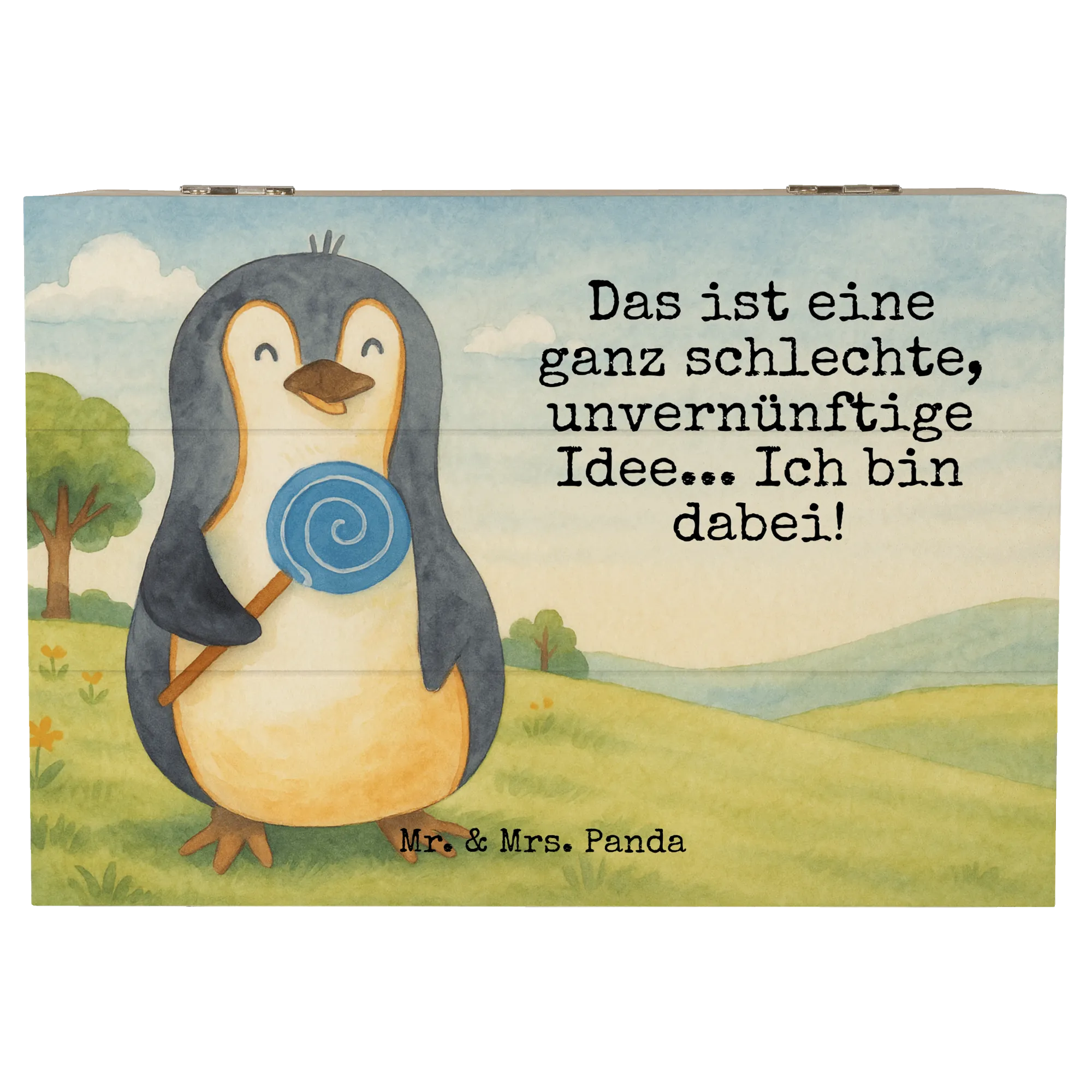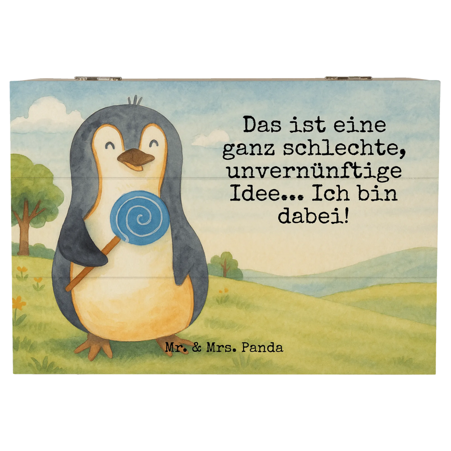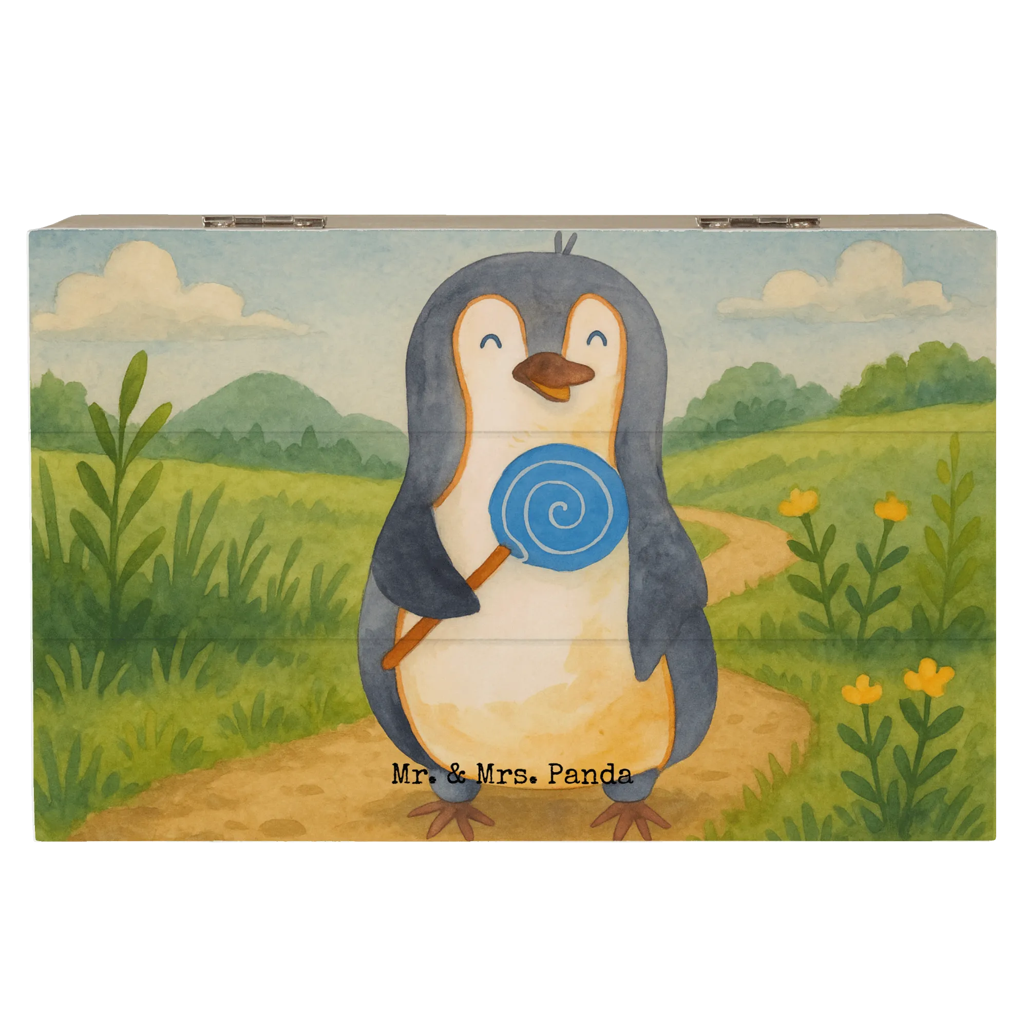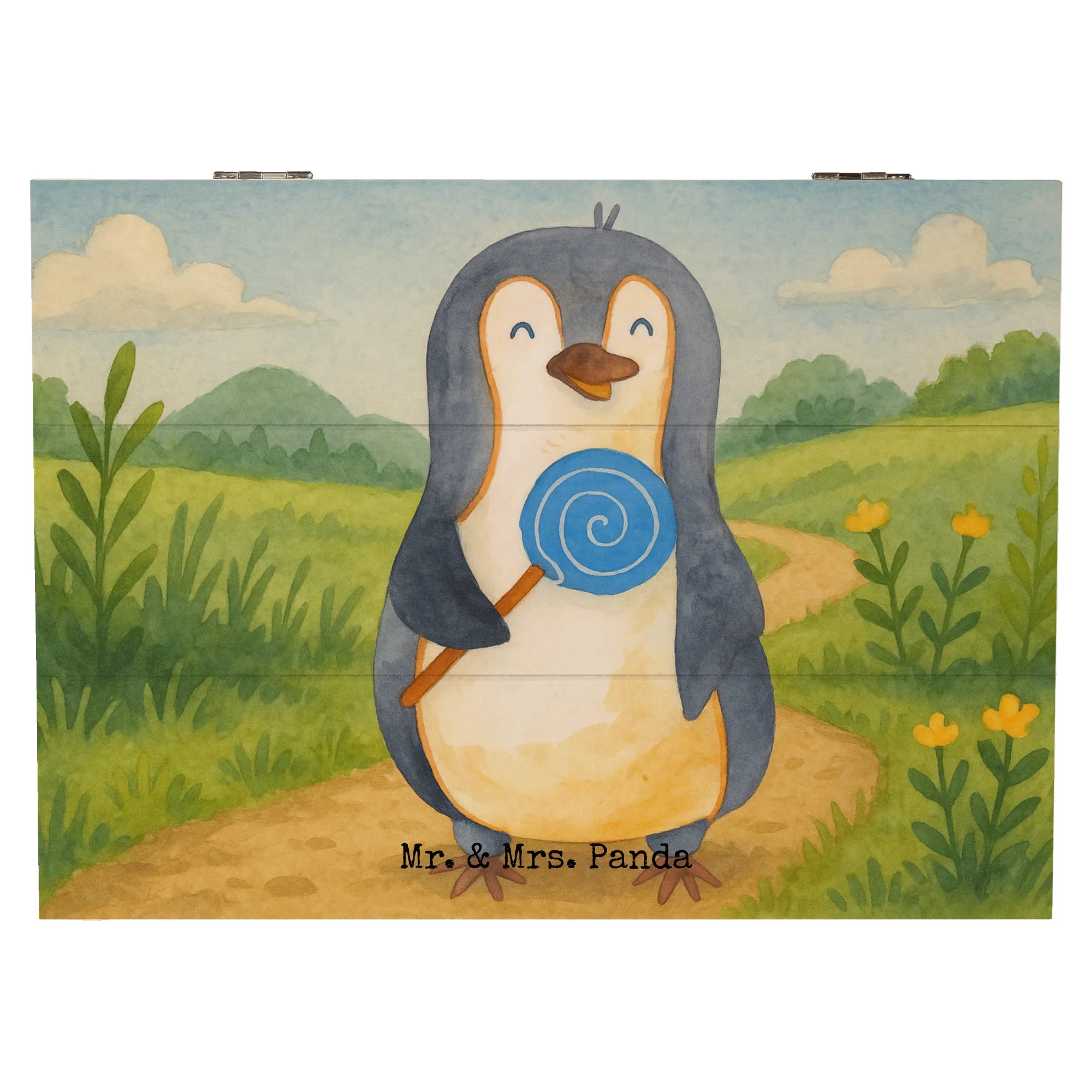 Wooden chest Penguin lollipop Design - 22 x 15 cm - with a saying