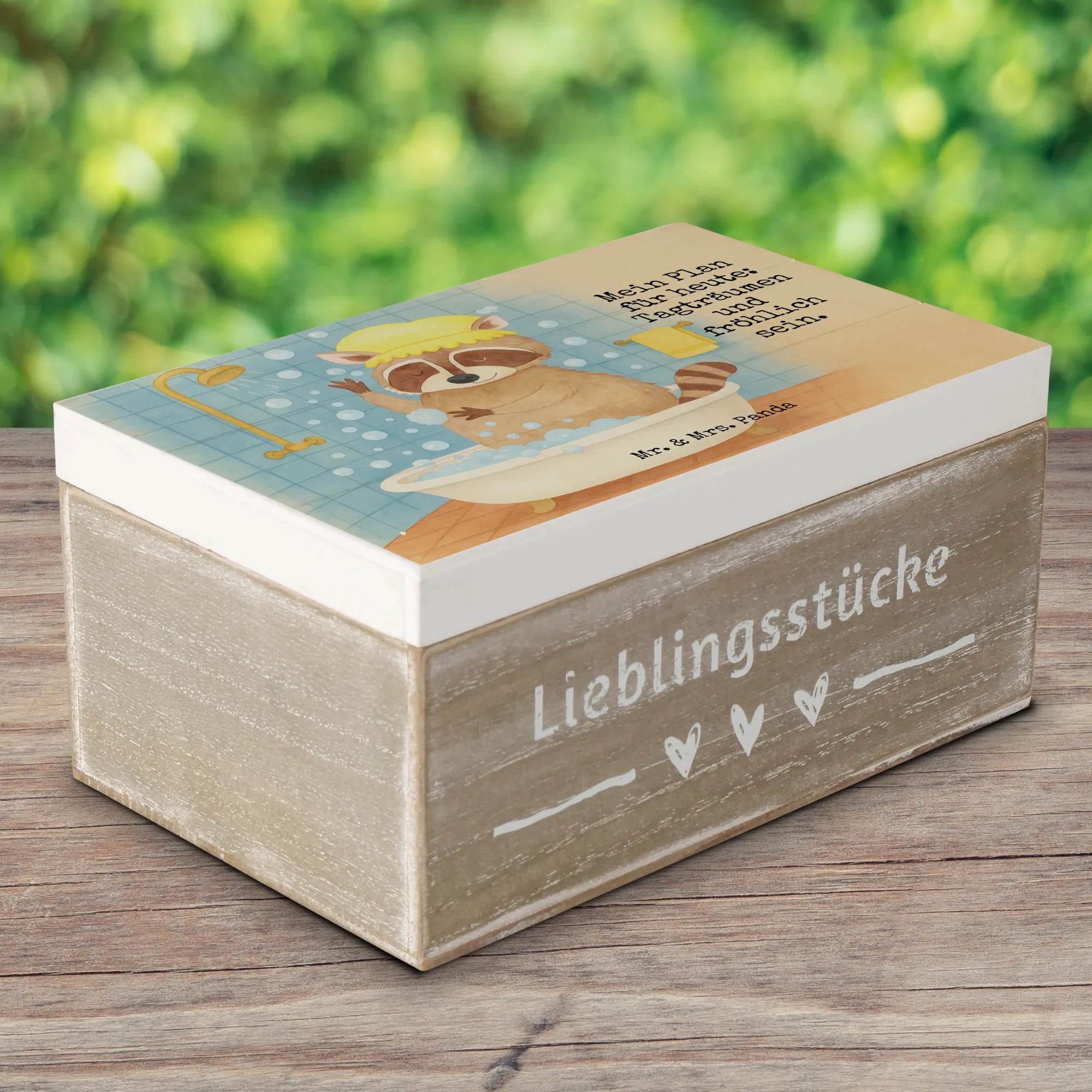 Wooden chest Raccoon Design - 22 x 15 cm - with a saying
