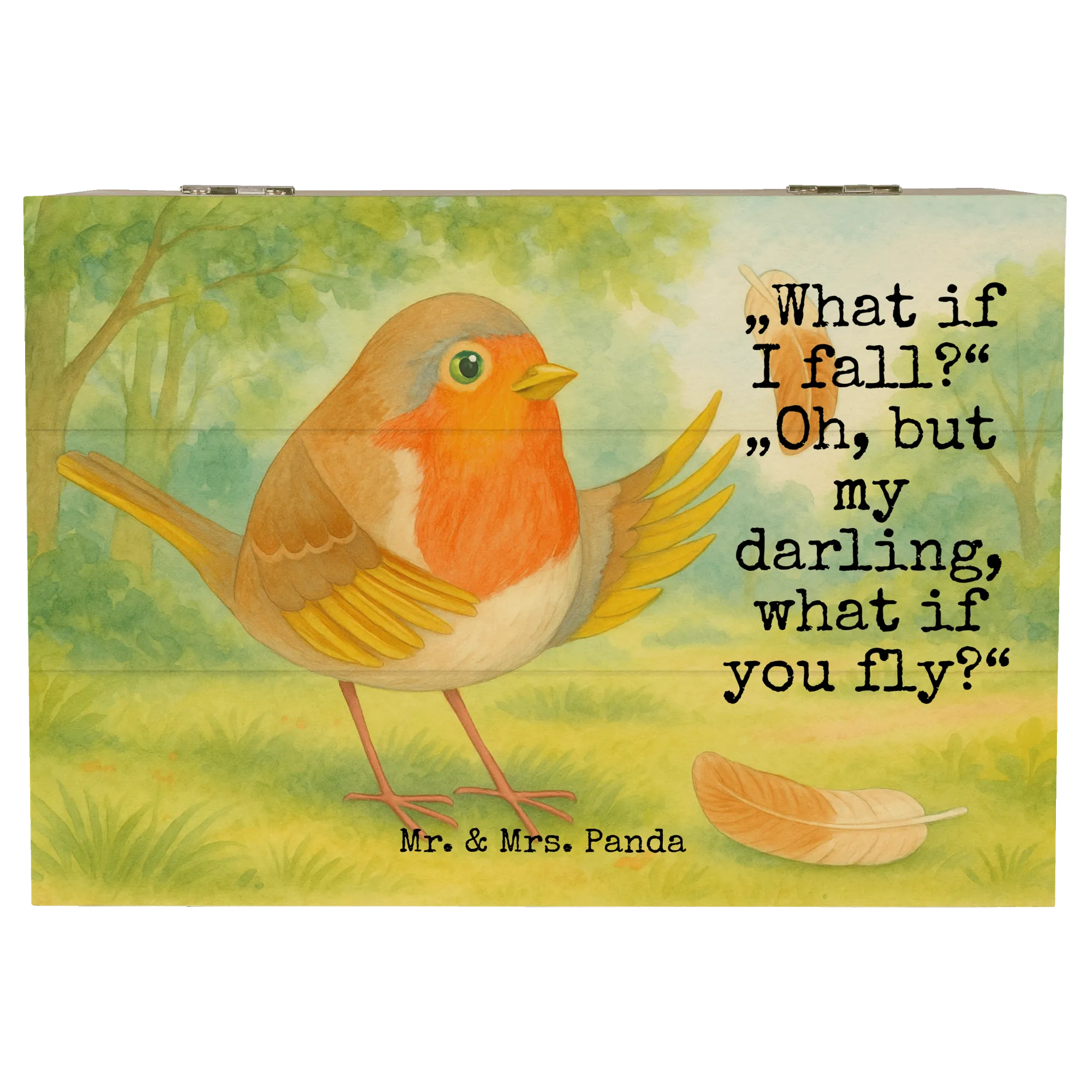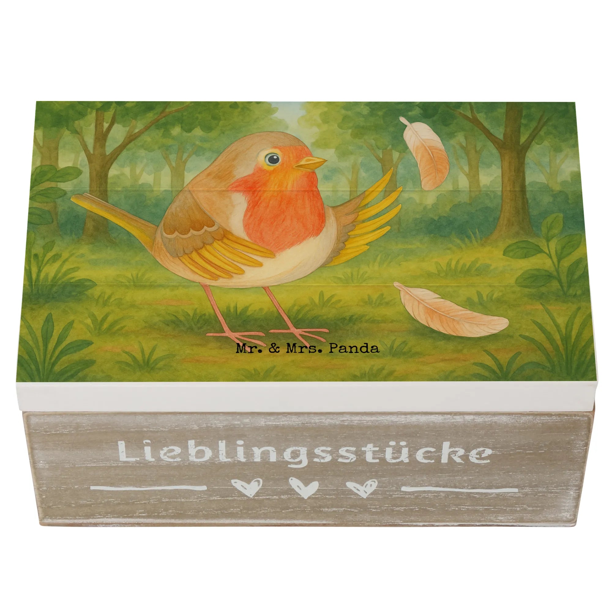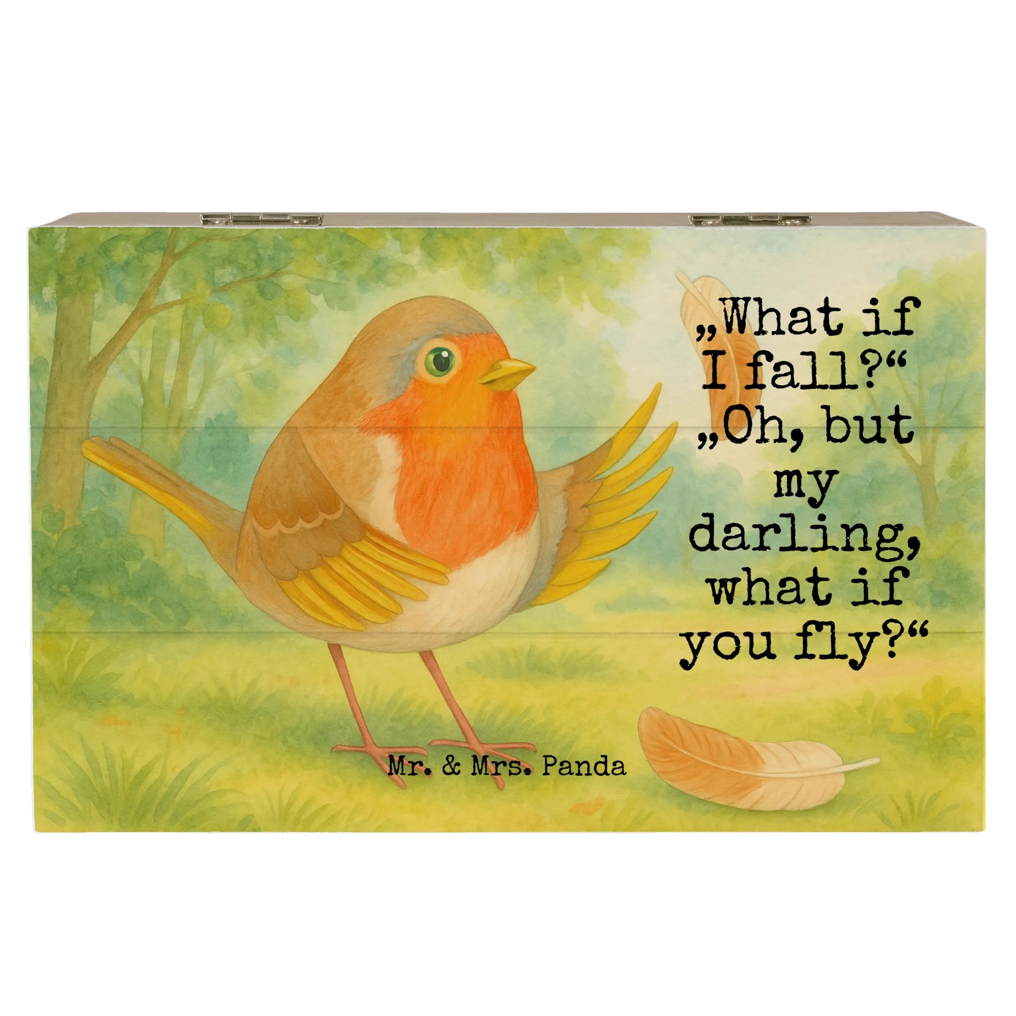 Wooden chest robin feathers Design - 22 x 15 cm - with a saying