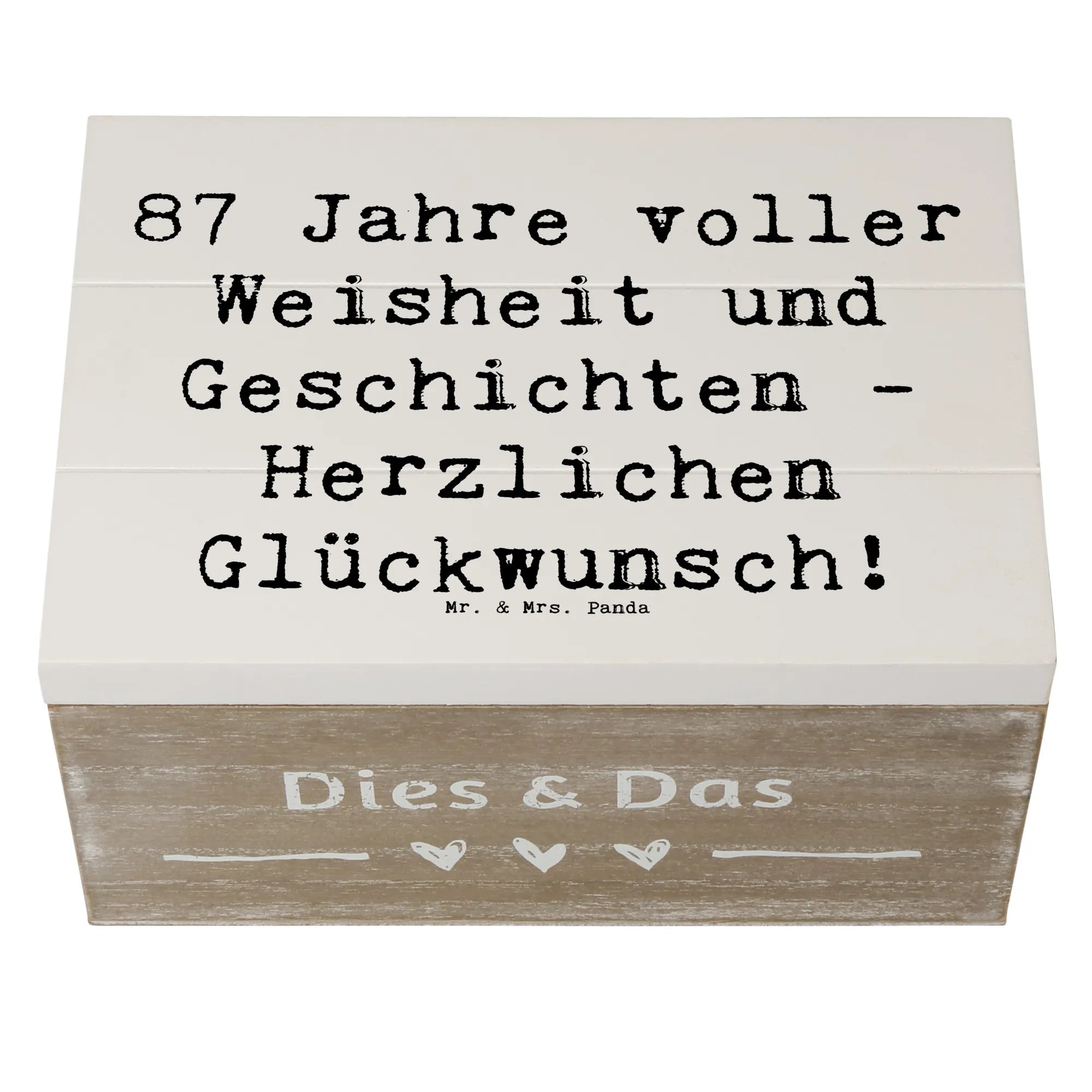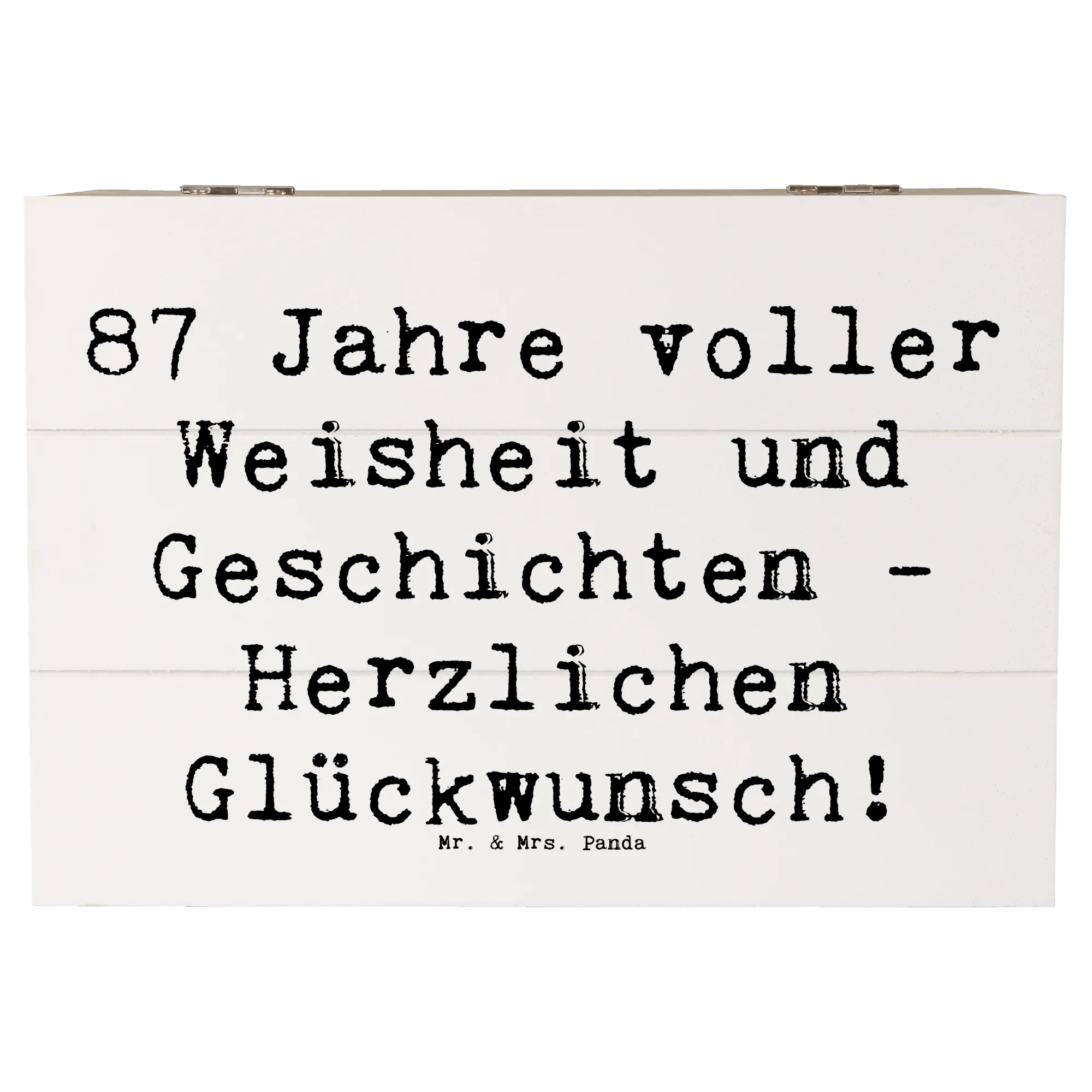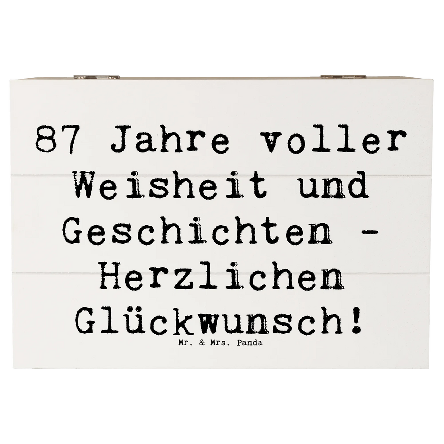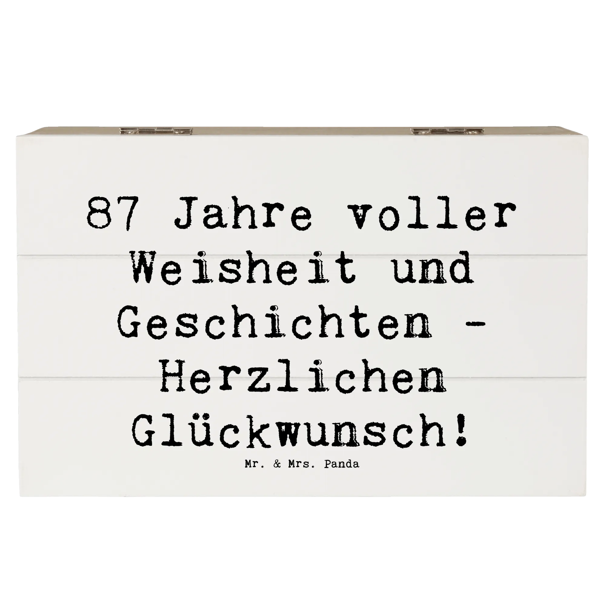 Wooden chest Saying 87 Jahre voller Weisheit und Geschichten - Herzlichen Glückwunsch! - 22 x 15 cm - White