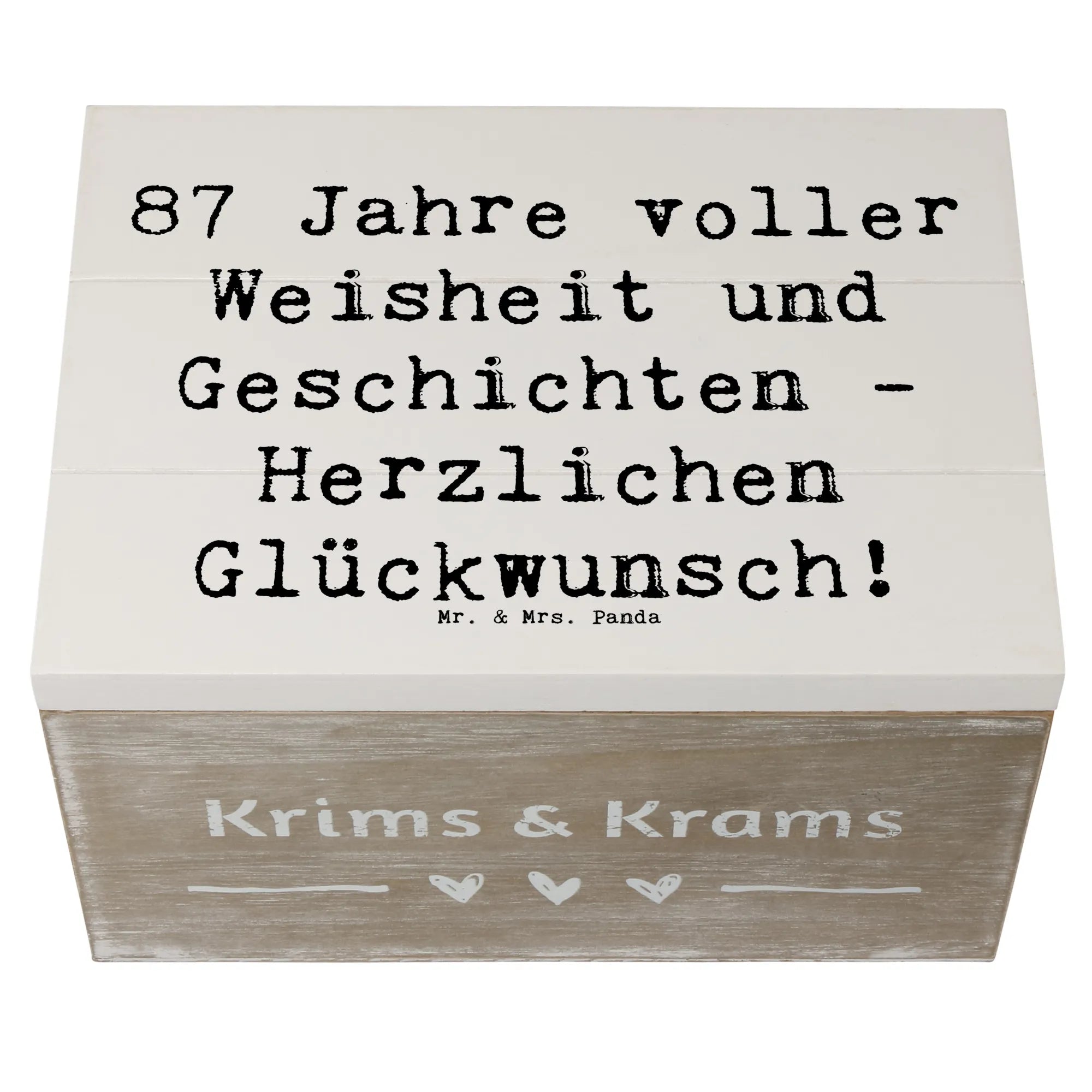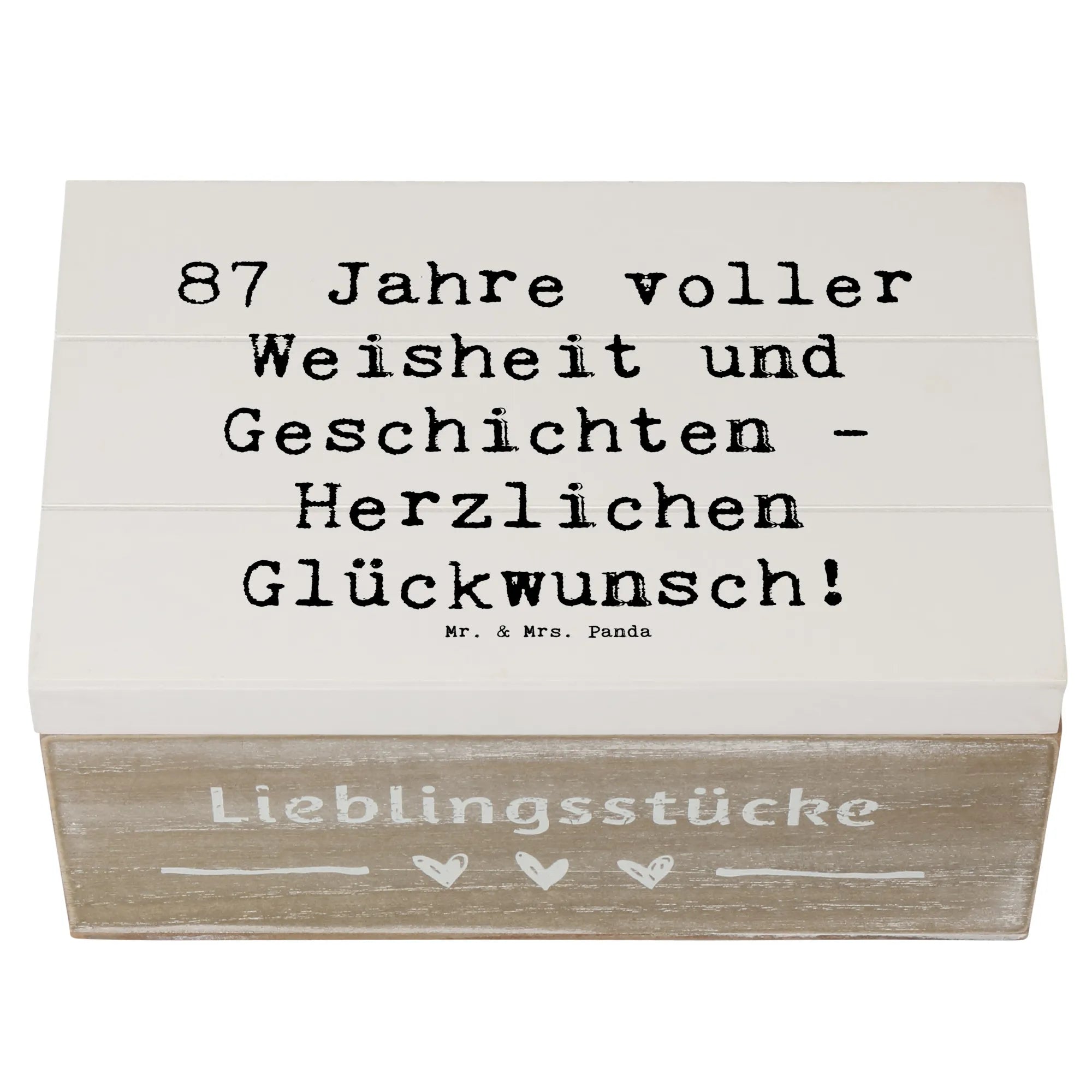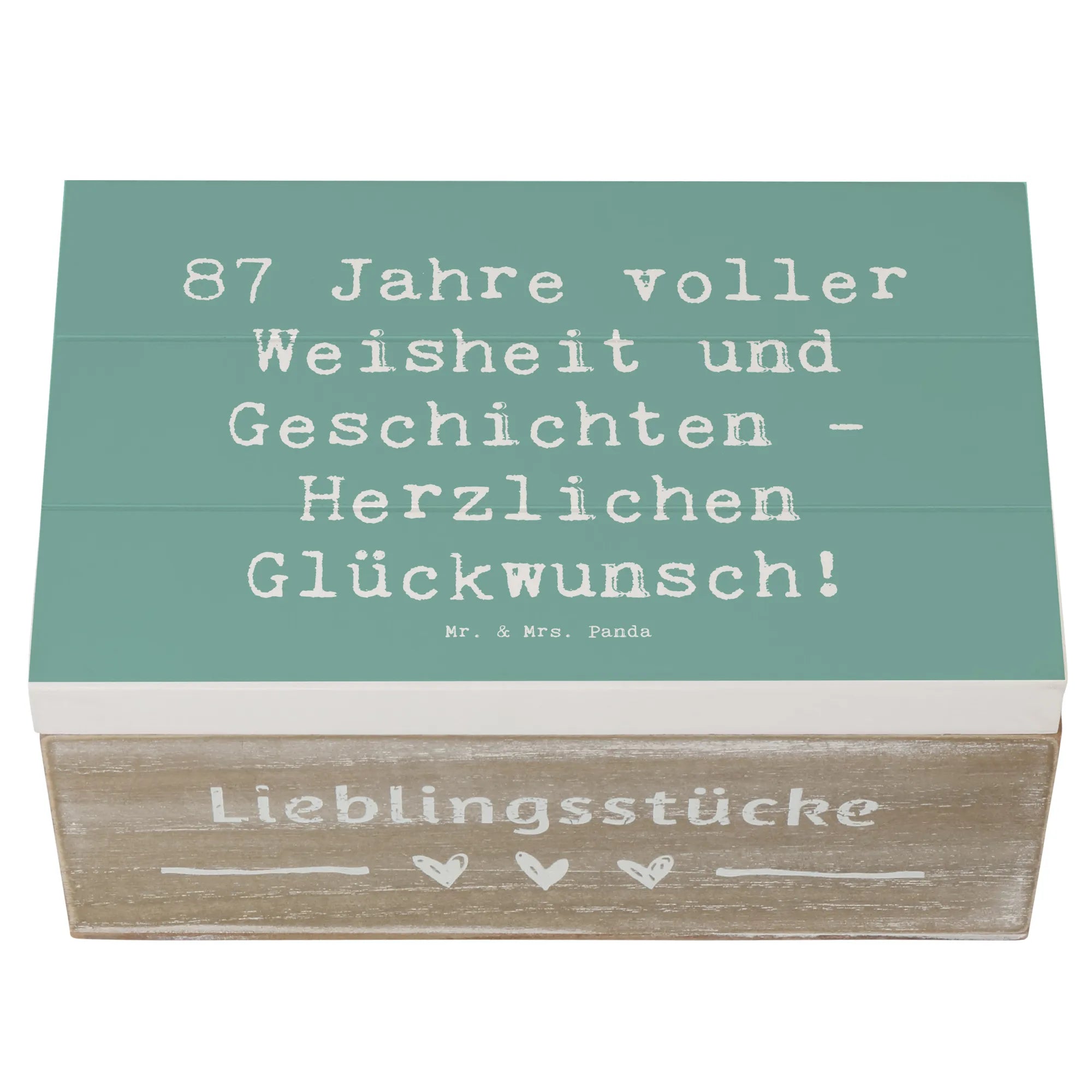 Wooden chest Saying 87 Jahre voller Weisheit und Geschichten - Herzlichen Glückwunsch! - 22 x 15 cm - White