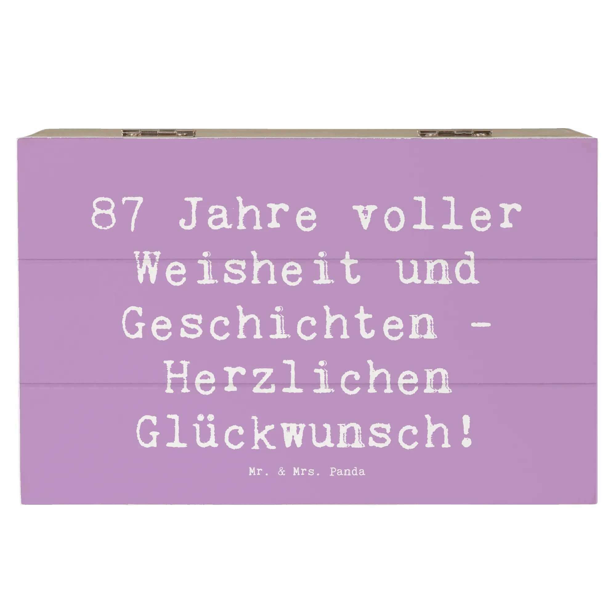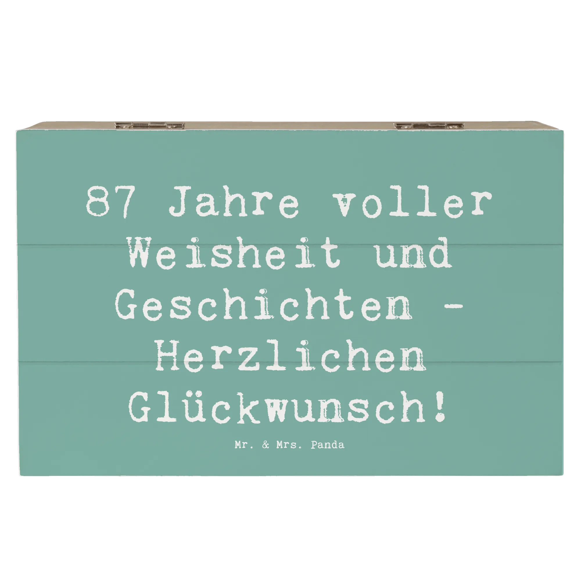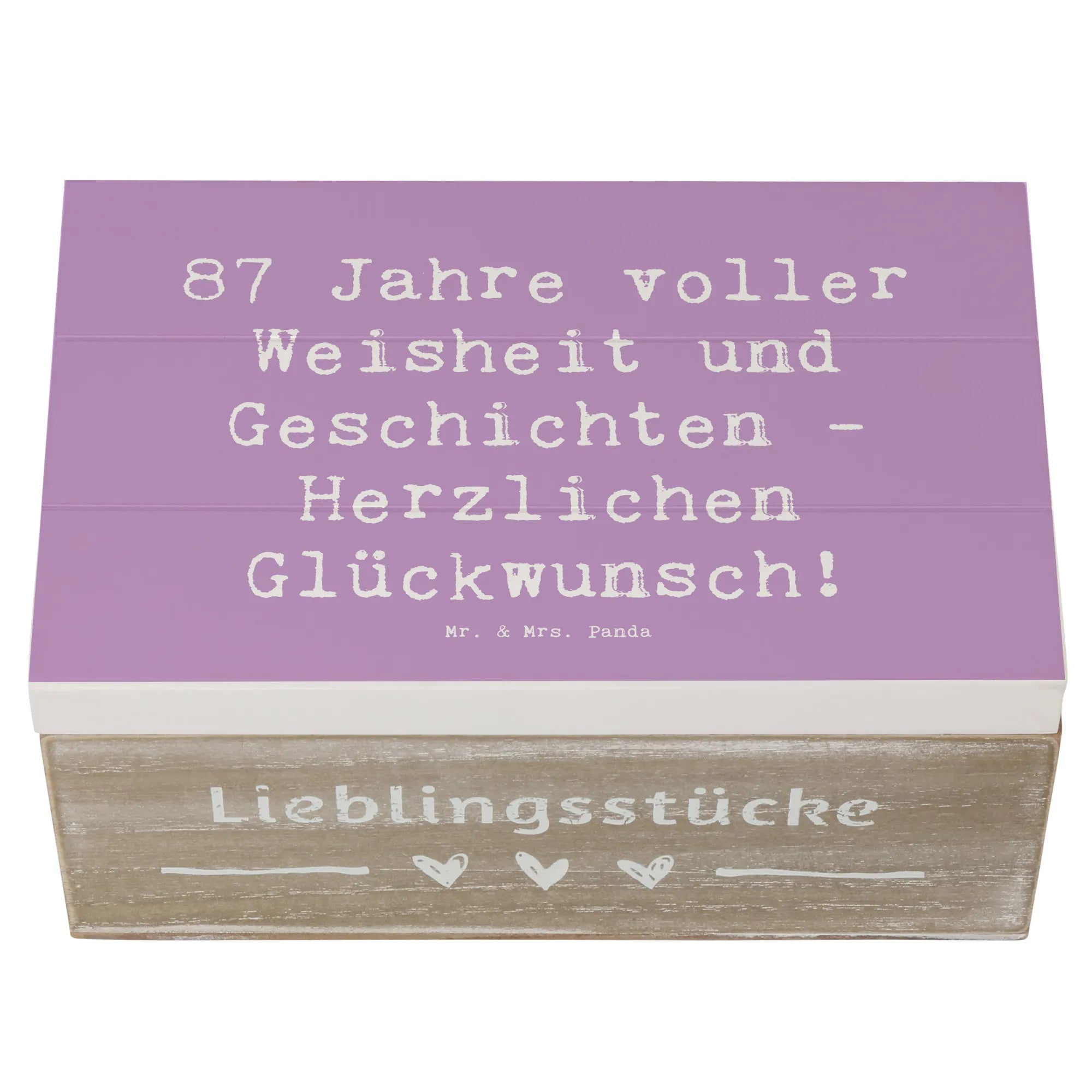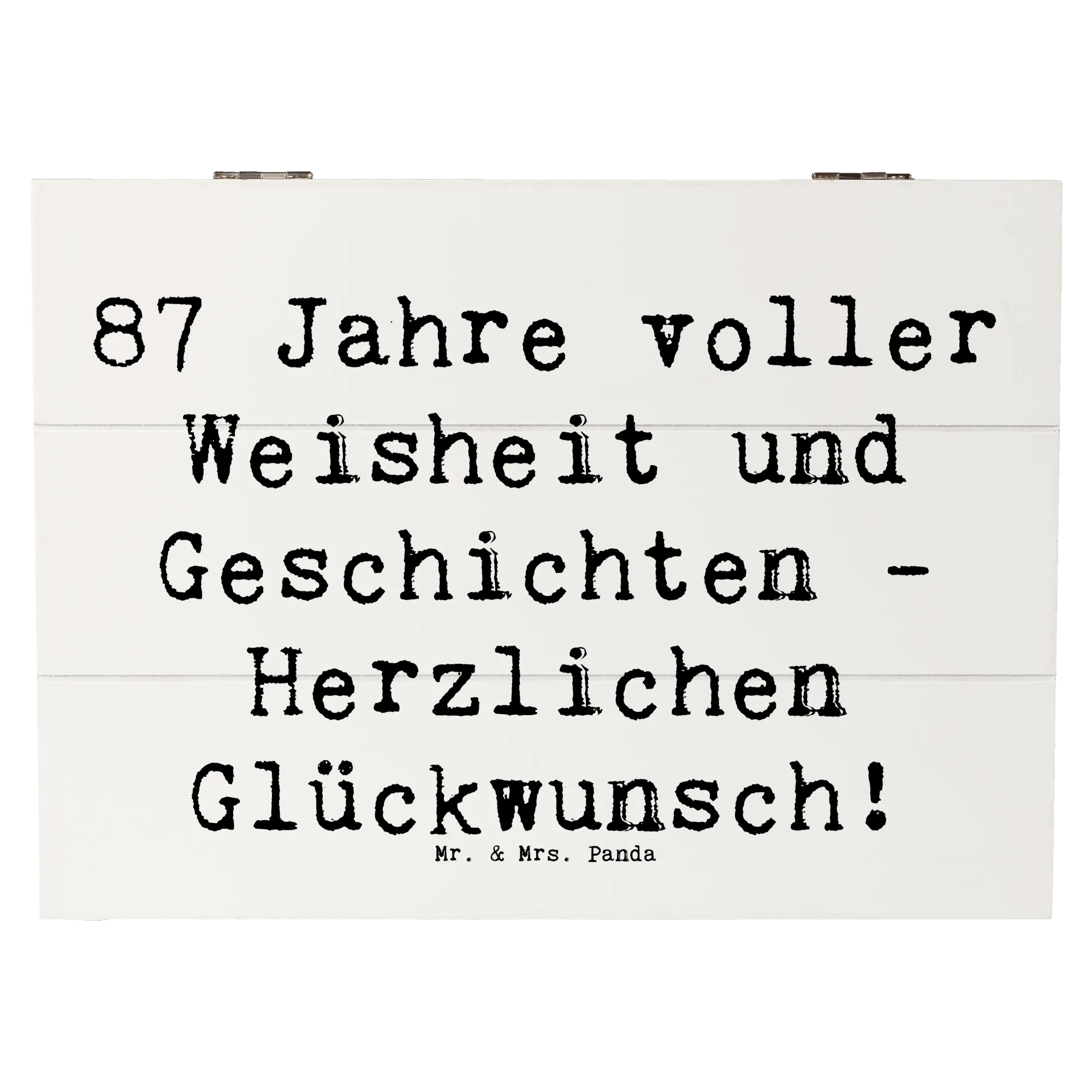 Wooden chest Saying 87 Jahre voller Weisheit und Geschichten - Herzlichen Glückwunsch! - 22 x 15 cm - White