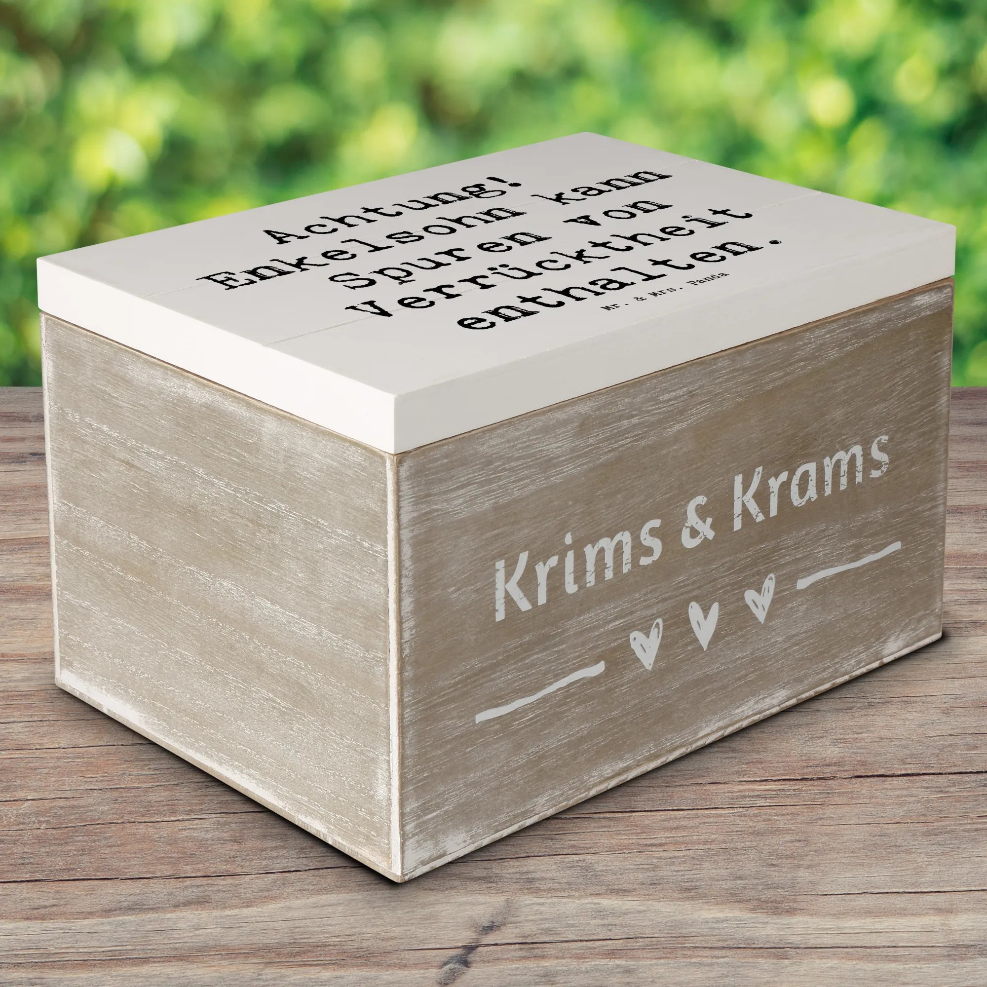 Wooden chest Saying Achtung! Enkelsohn kann Spuren von Verrücktheit enthalten. - 22 x 15 cm - White