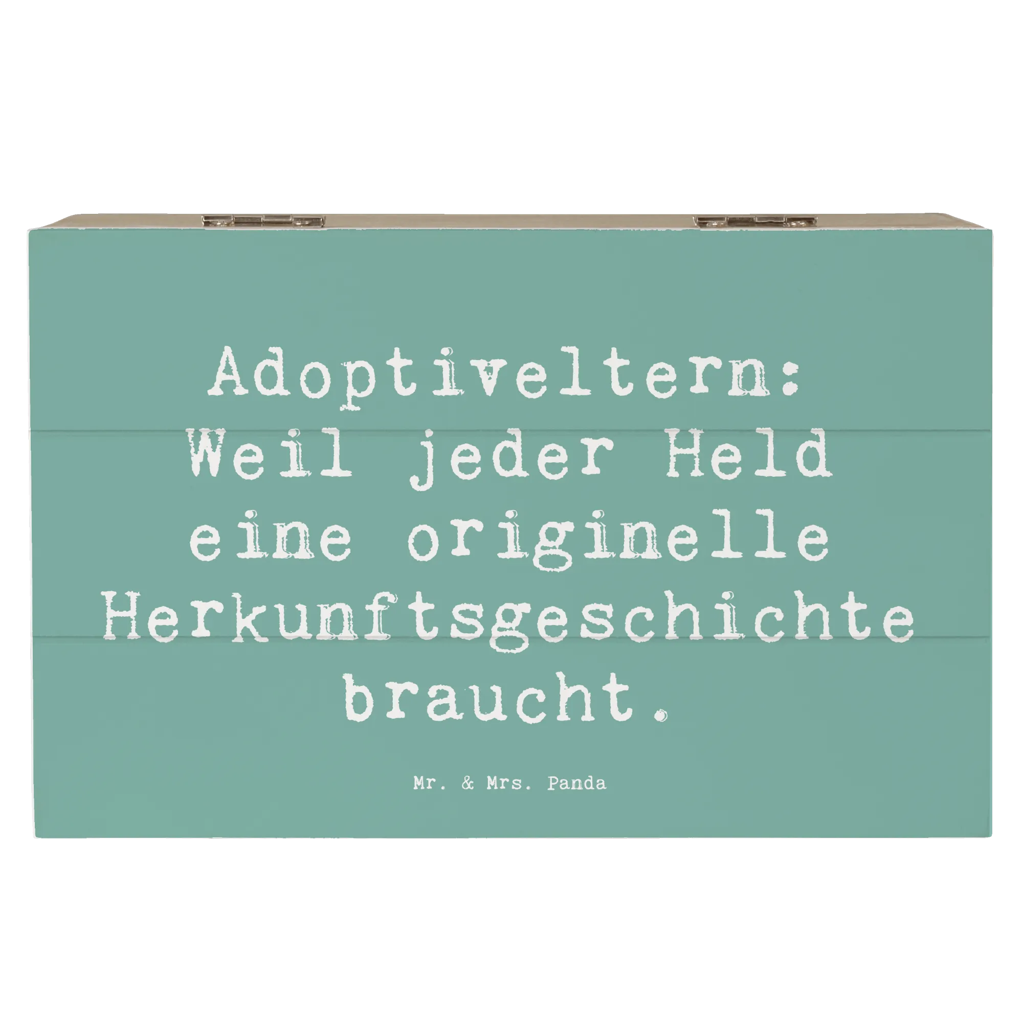Wooden chest Saying Adoptiveltern: Weil jeder Held eine originelle Herkunftsgeschichte braucht. - 22 x 15 cm - White