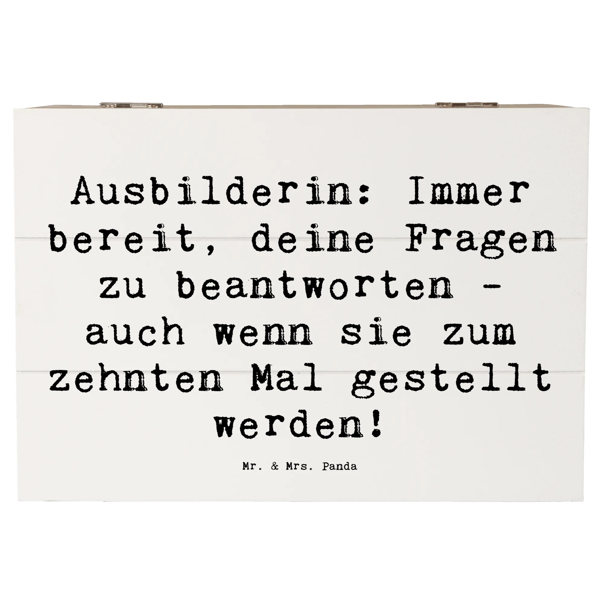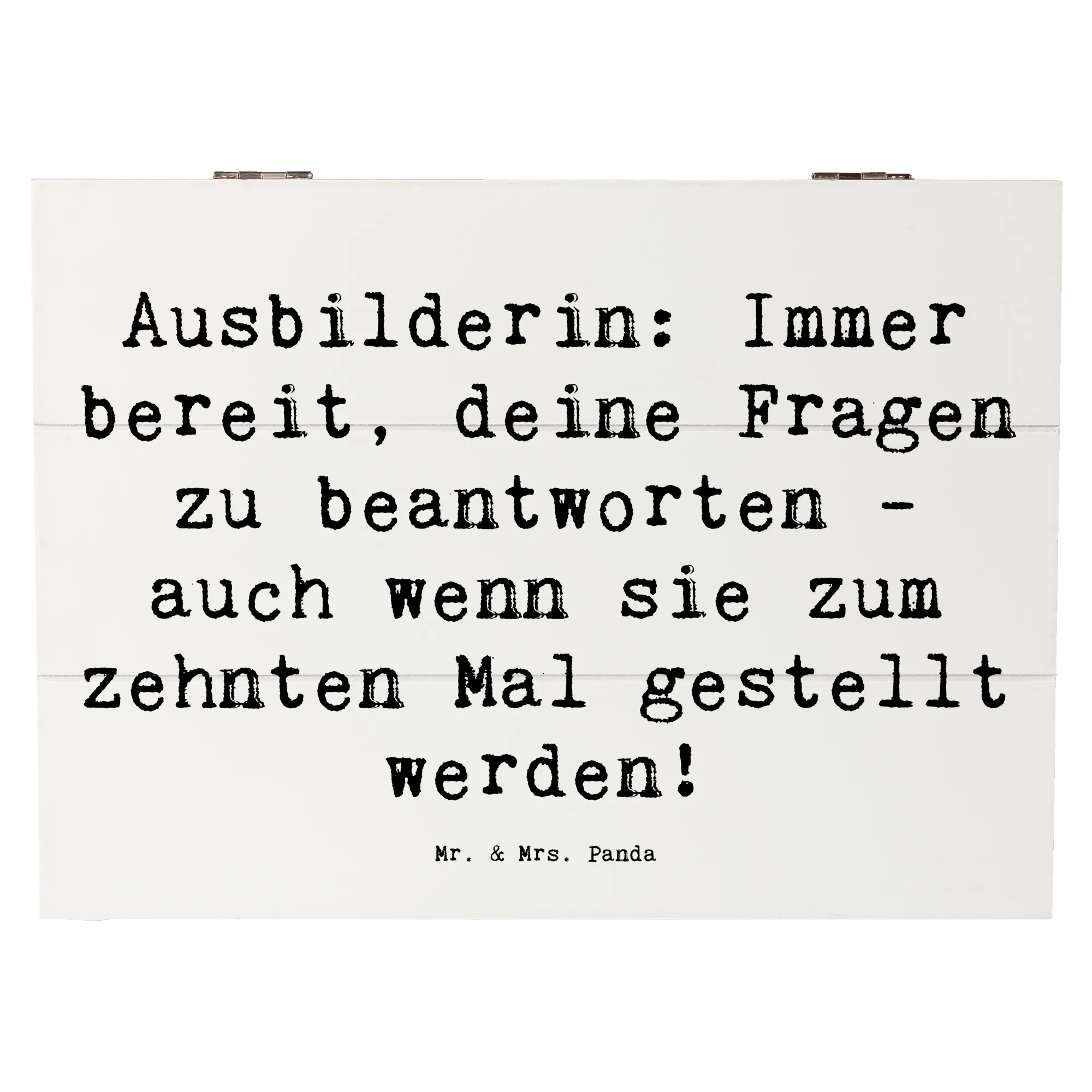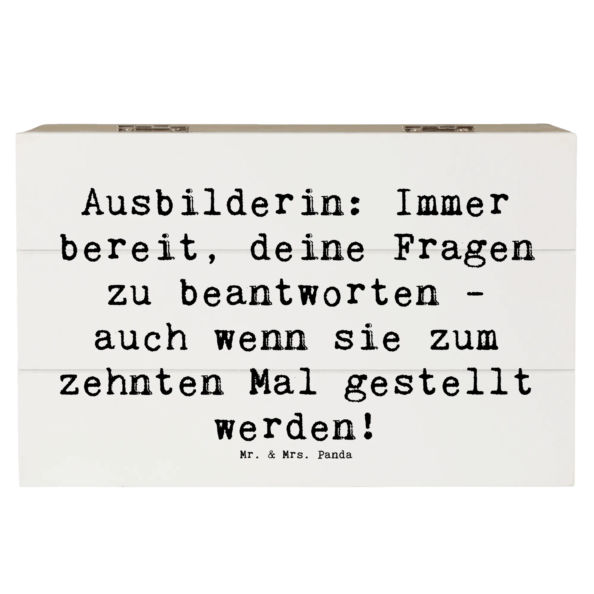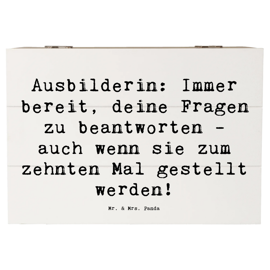 Wooden chest Saying Ausbilderin: Immer bereit, deine Fragen zu beantworten - auch wenn sie zum zehnten Mal gestellt werden! - 22 x 15 cm - White