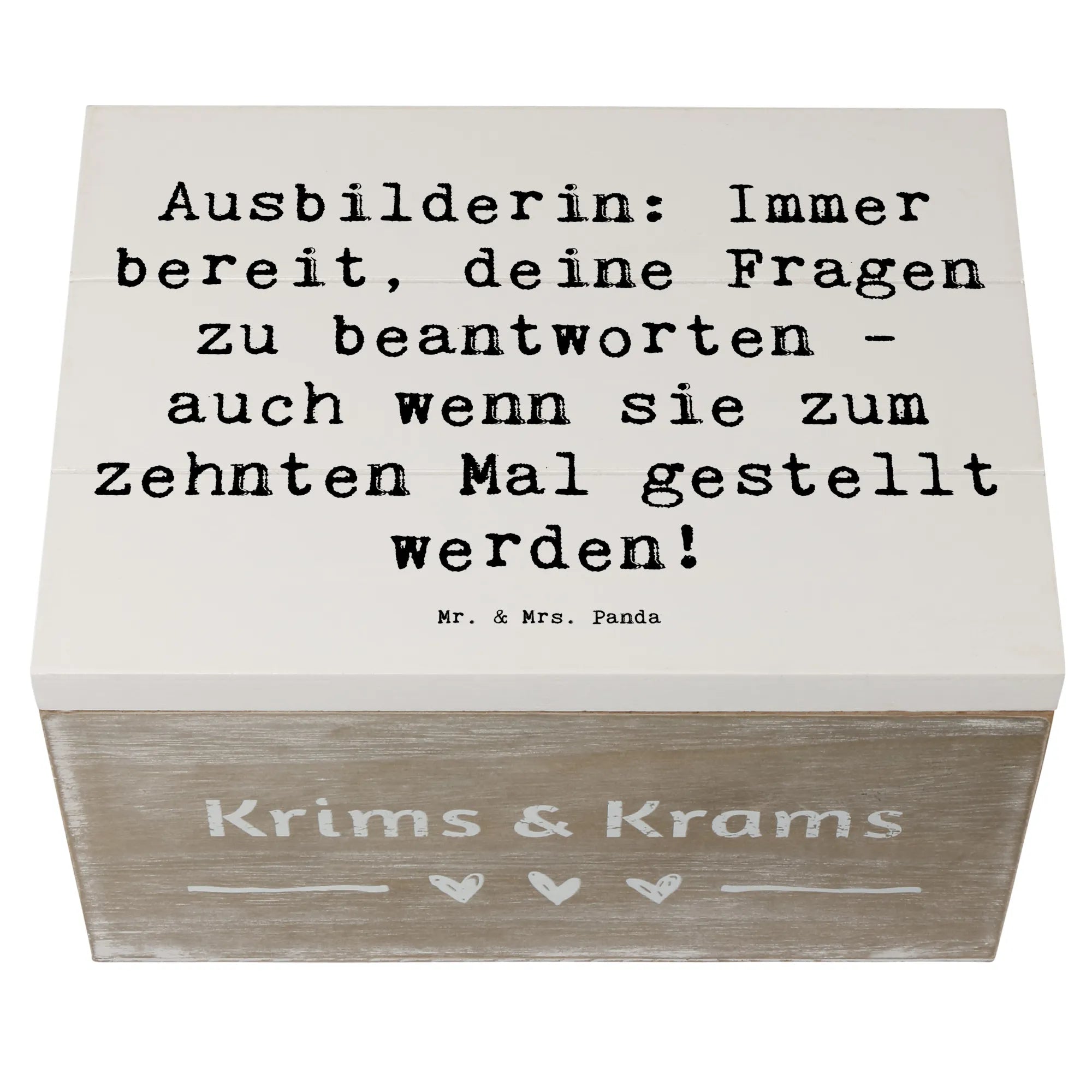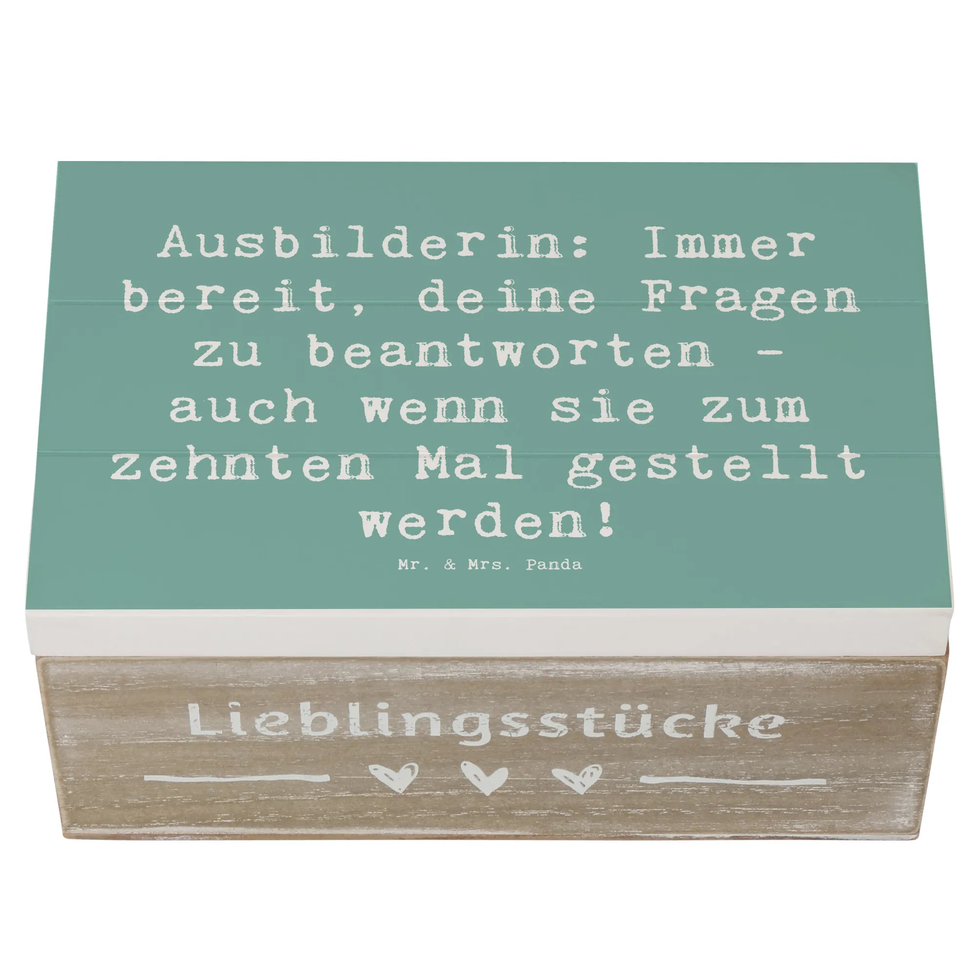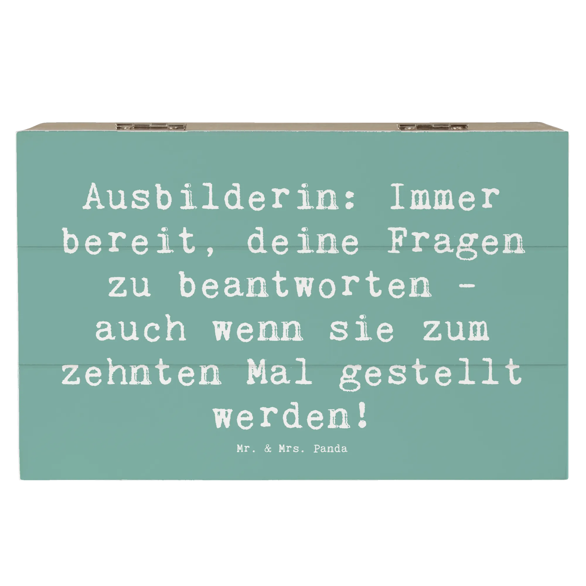 Wooden chest Saying Ausbilderin: Immer bereit, deine Fragen zu beantworten - auch wenn sie zum zehnten Mal gestellt werden! - 22 x 15 cm - White