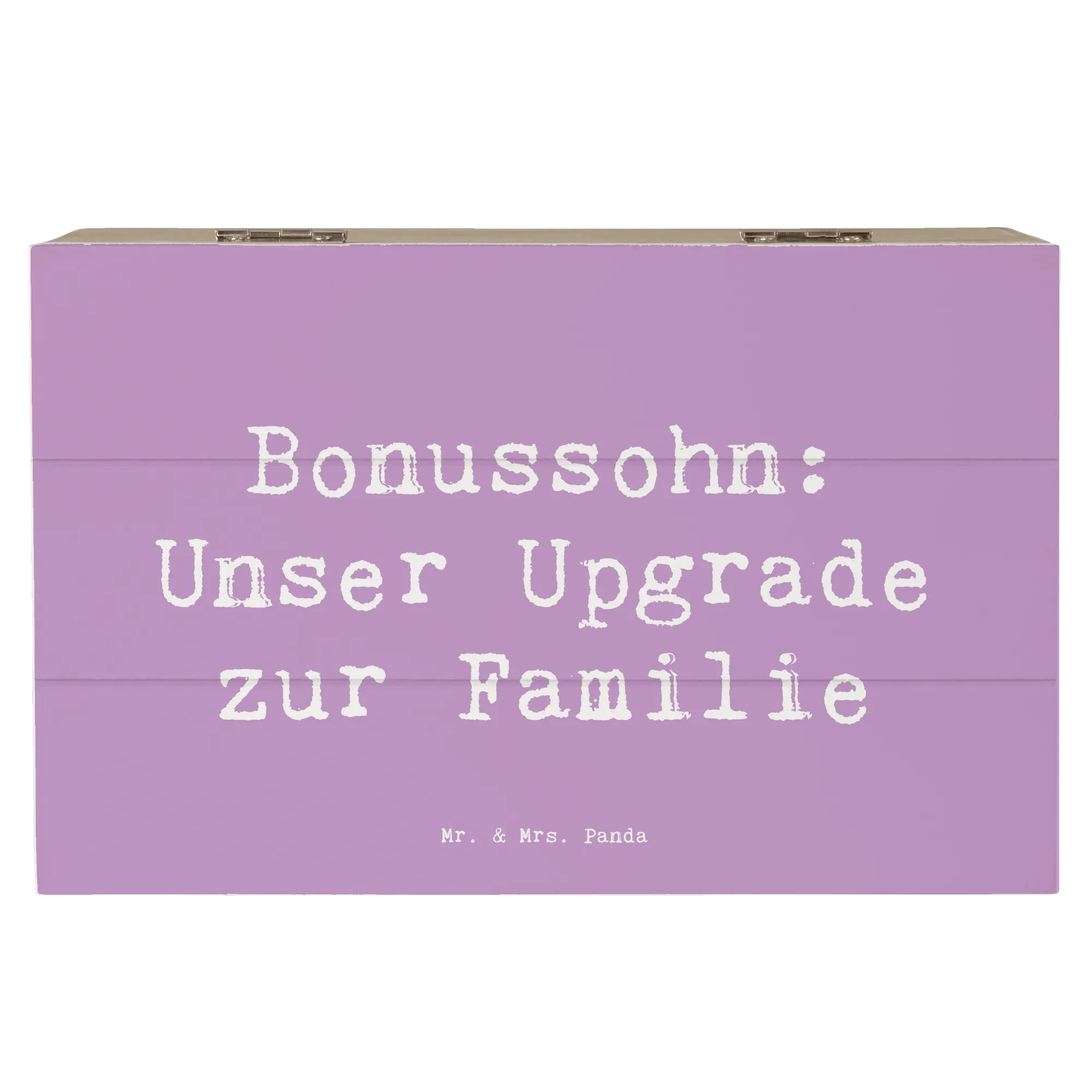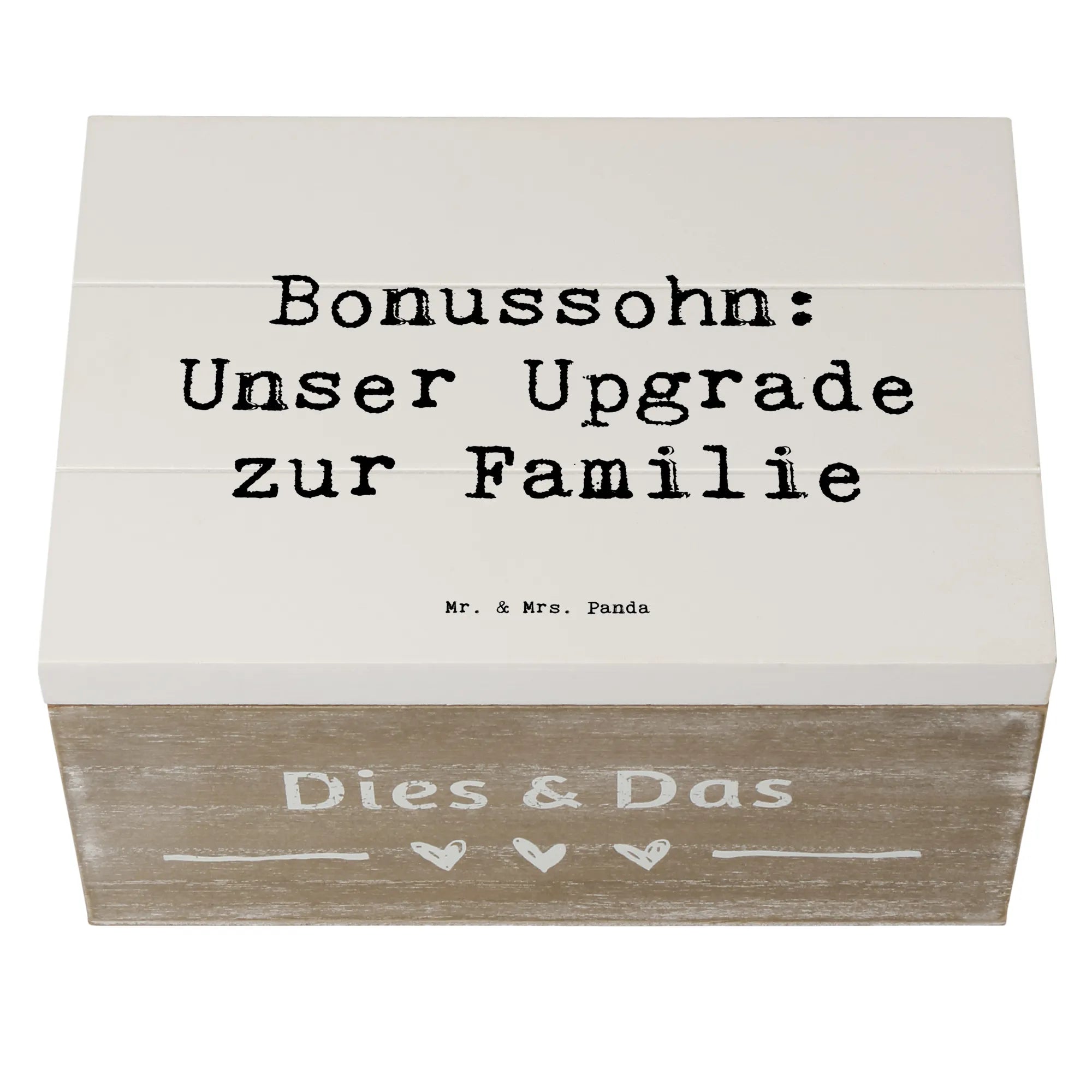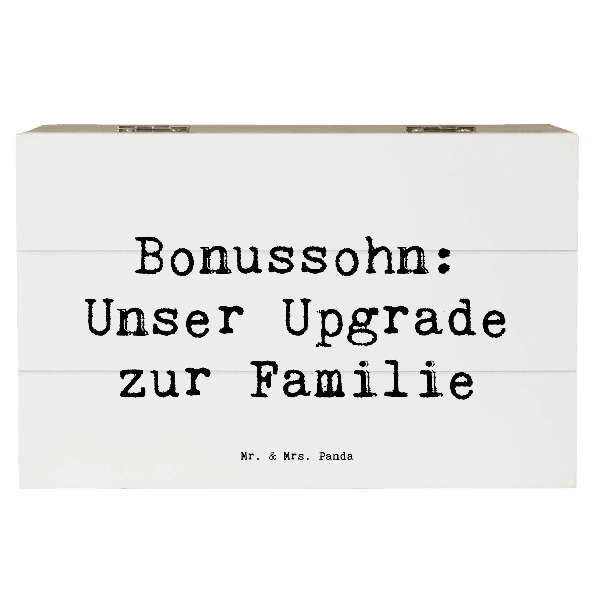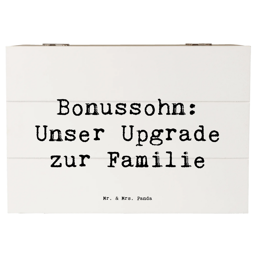 Wooden chest Saying Bonussohn: Unser Upgrade zur Familie - 22 x 15 cm - White