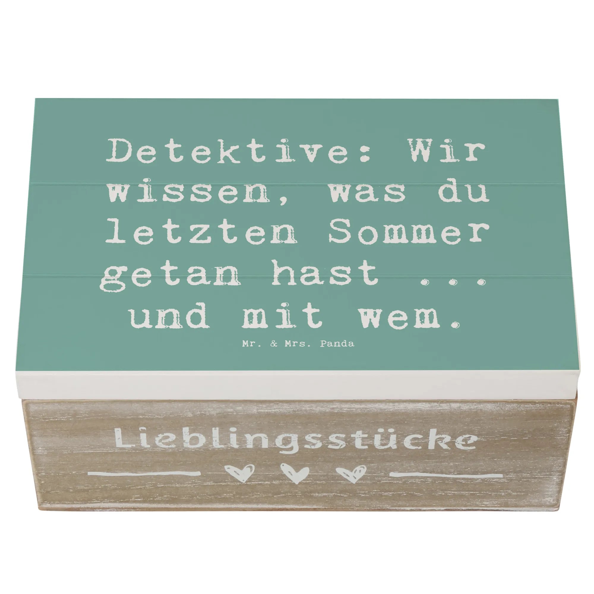 Wooden chest Saying Detektive: Wir wissen, was du letzten Sommer getan hast ... und mit wem. - 22 x 15 cm - White