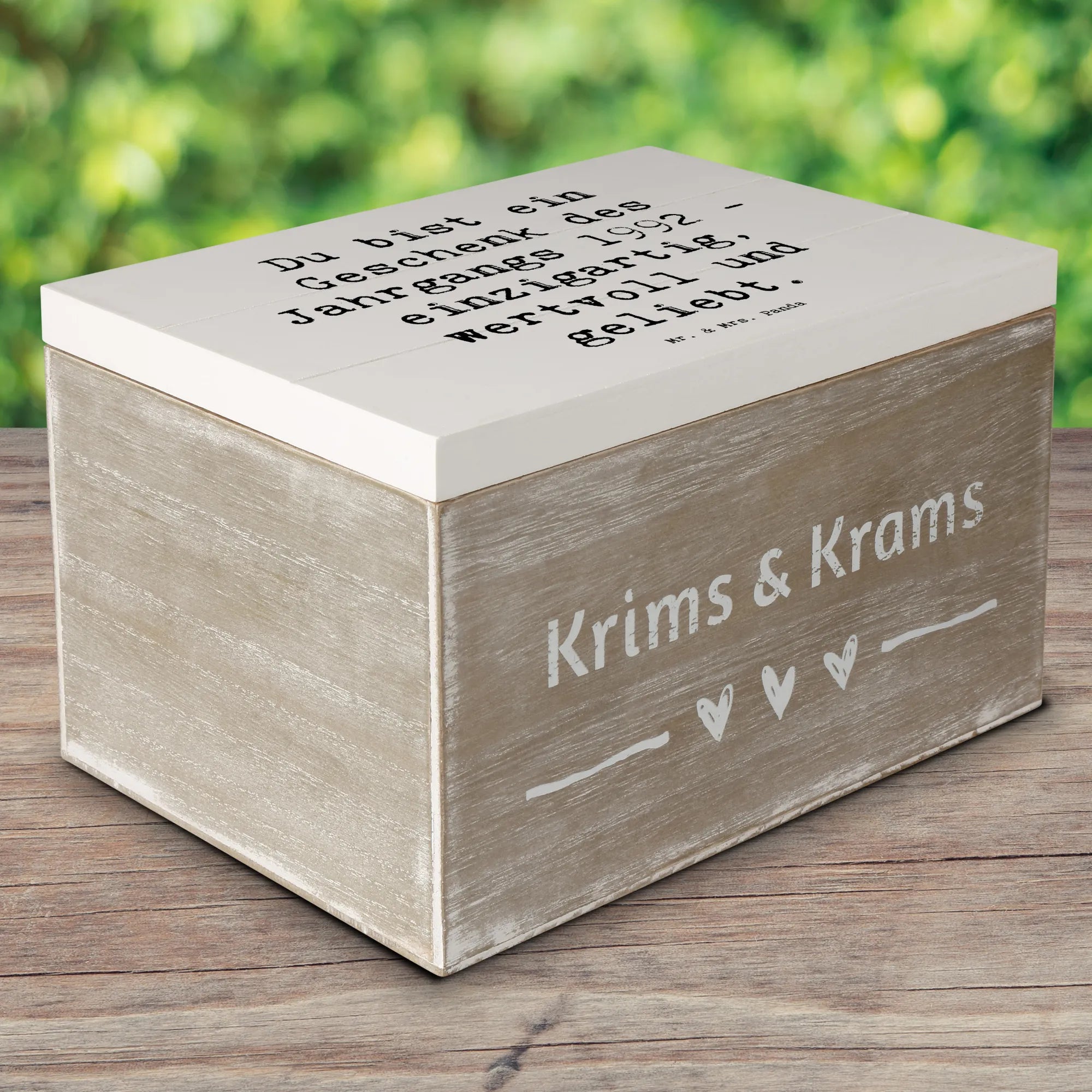 Wooden chest Saying Du bist ein Geschenk des Jahrgangs 1992 - einzigartig, wertvoll und geliebt. - 22 x 15 cm - White