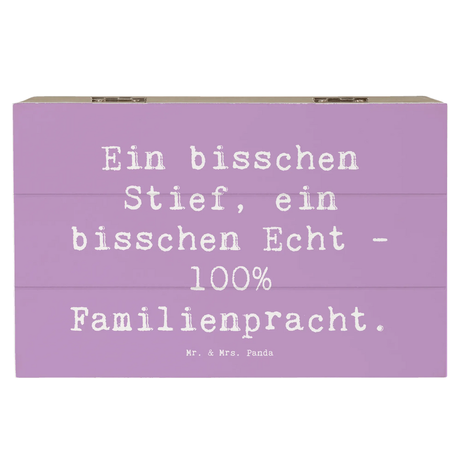 Wooden chest Saying Ein bisschen Stief, ein bisschen Echt - 100% Familienpracht. - 19 x 12 cm - Lavender Dream