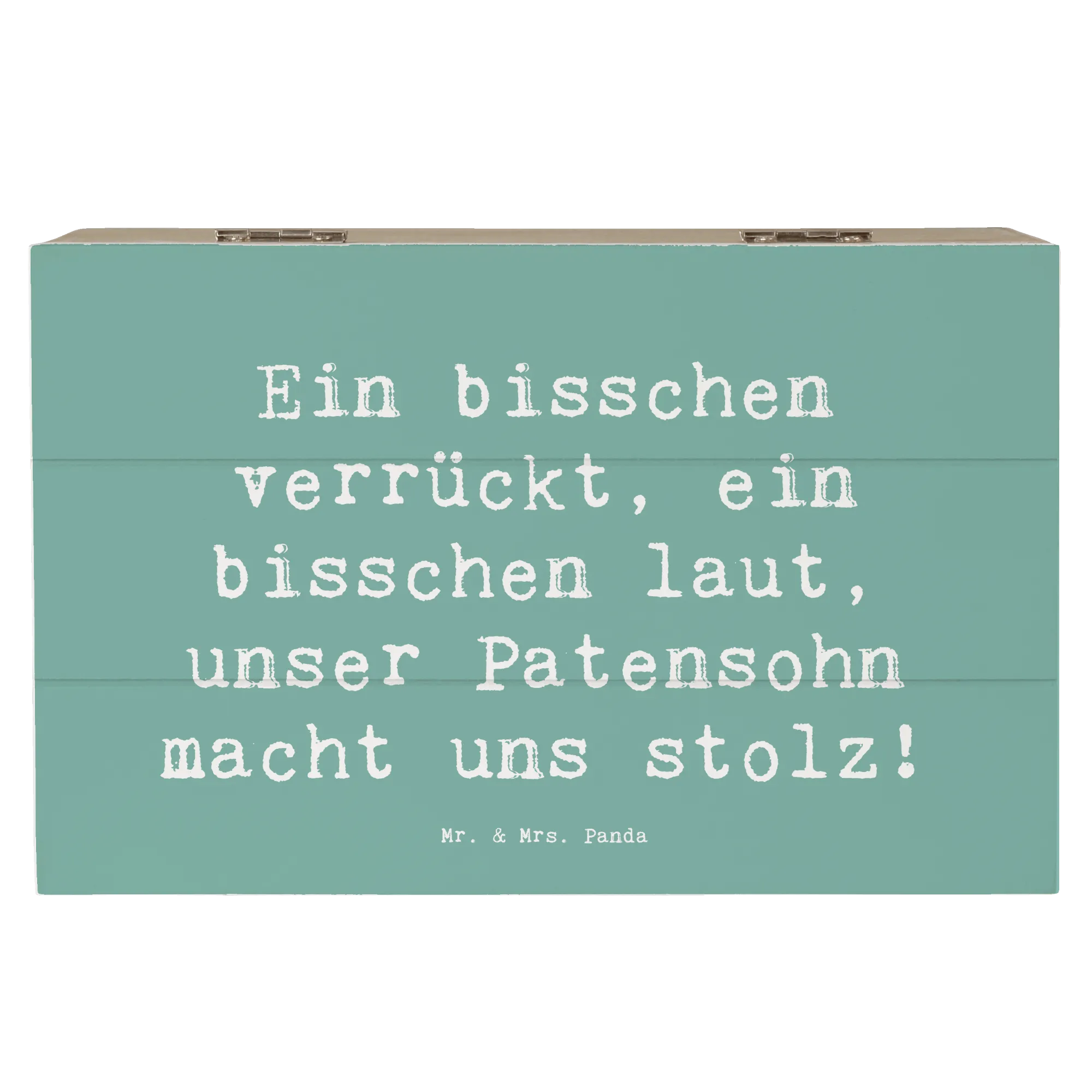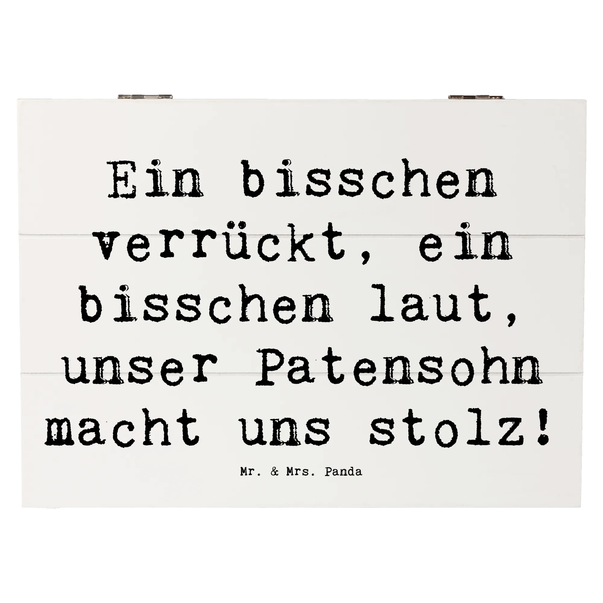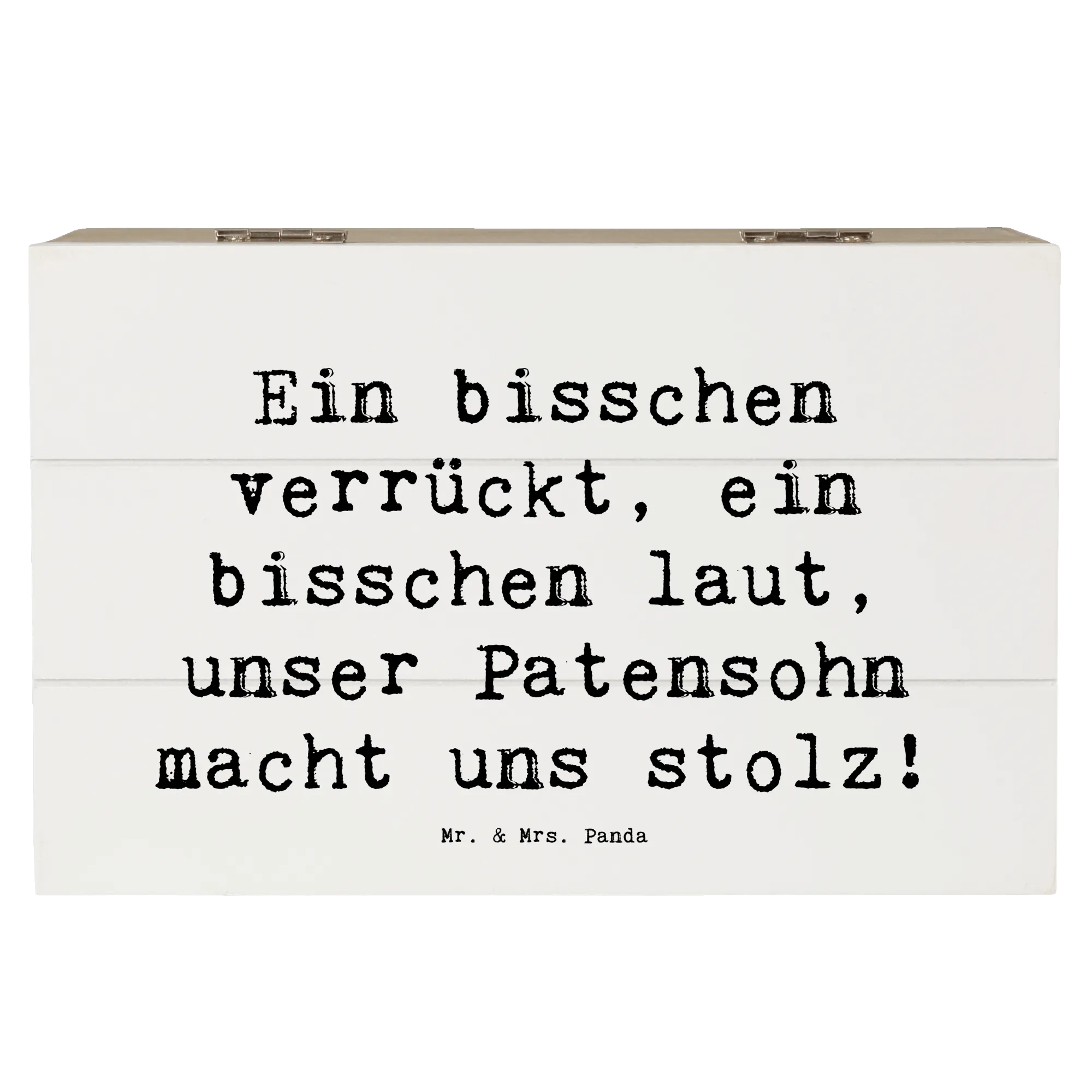 Wooden chest Saying Ein bisschen verrückt, ein bisschen laut, unser Patensohn macht uns stolz! - 22 x 15 cm - White