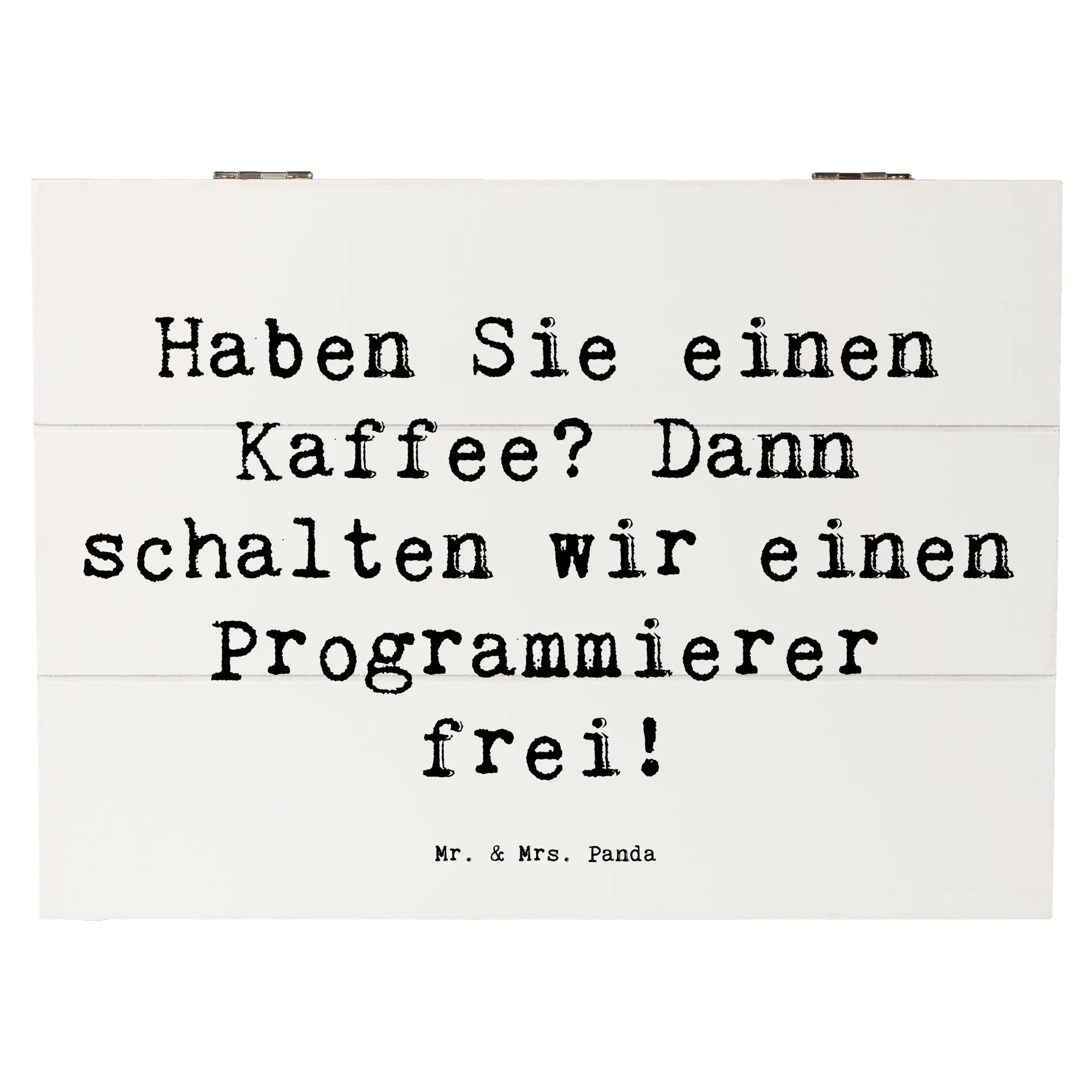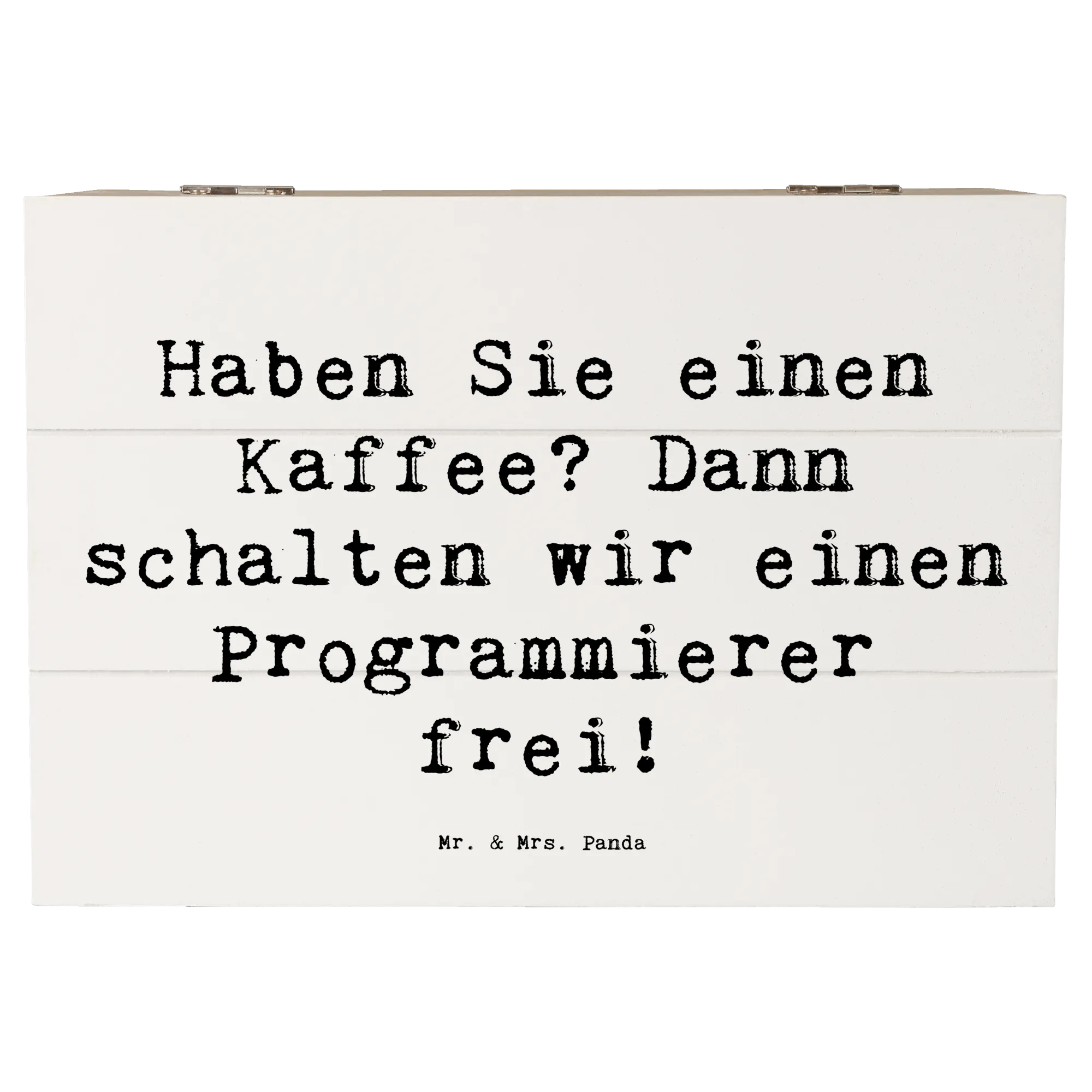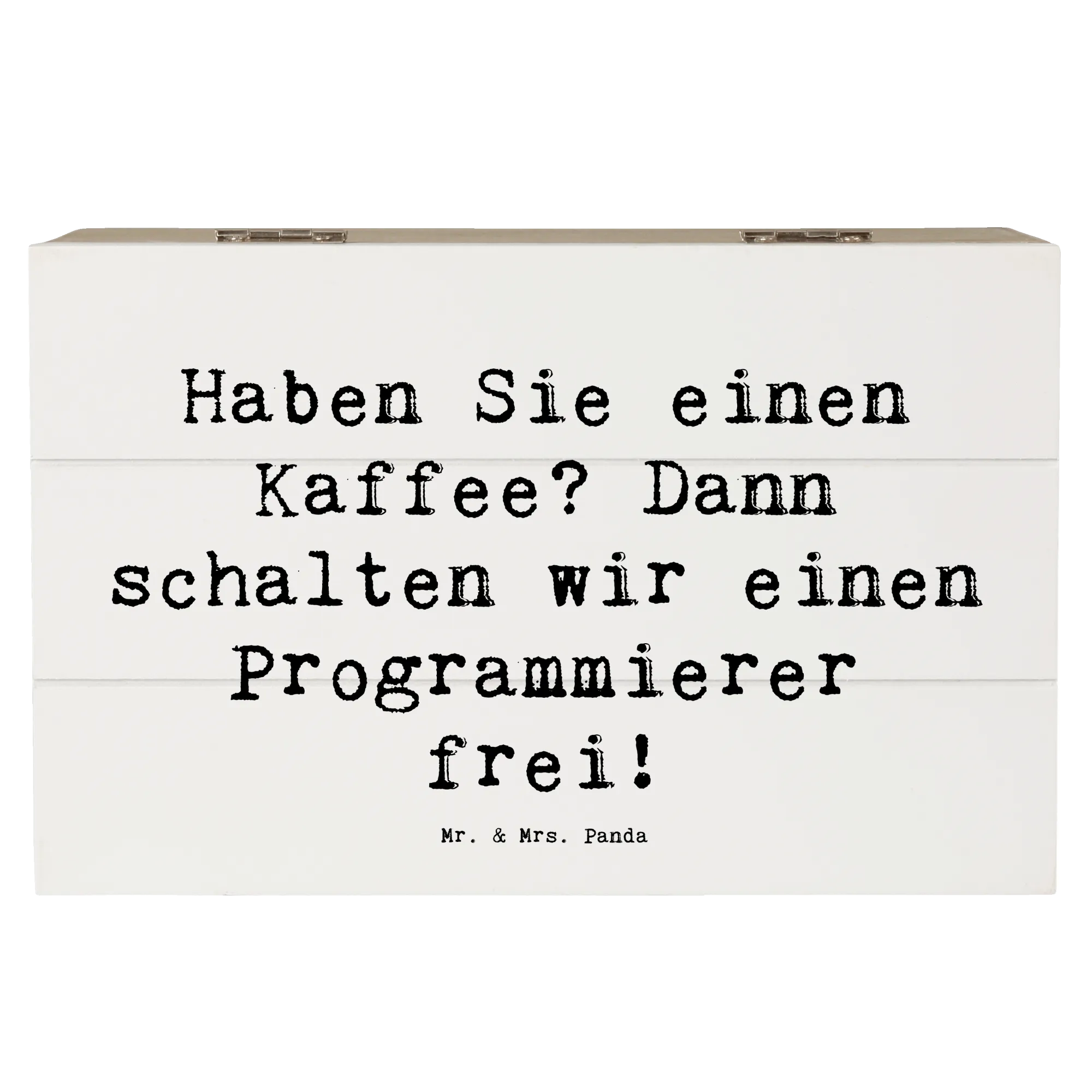 Wooden chest Saying Haben Sie einen Kaffee? Dann schalten wir einen Programmierer frei! - 22 x 15 cm - White