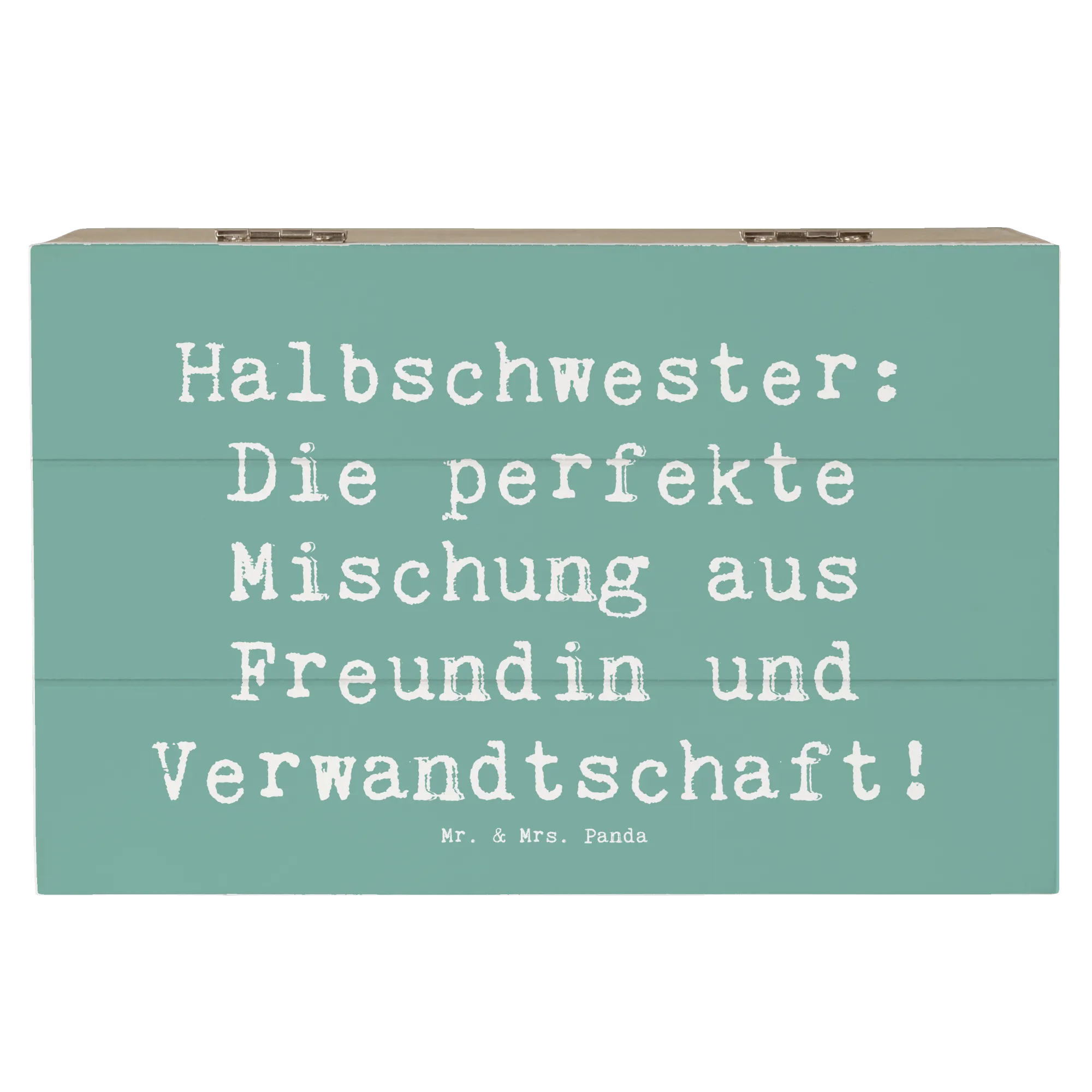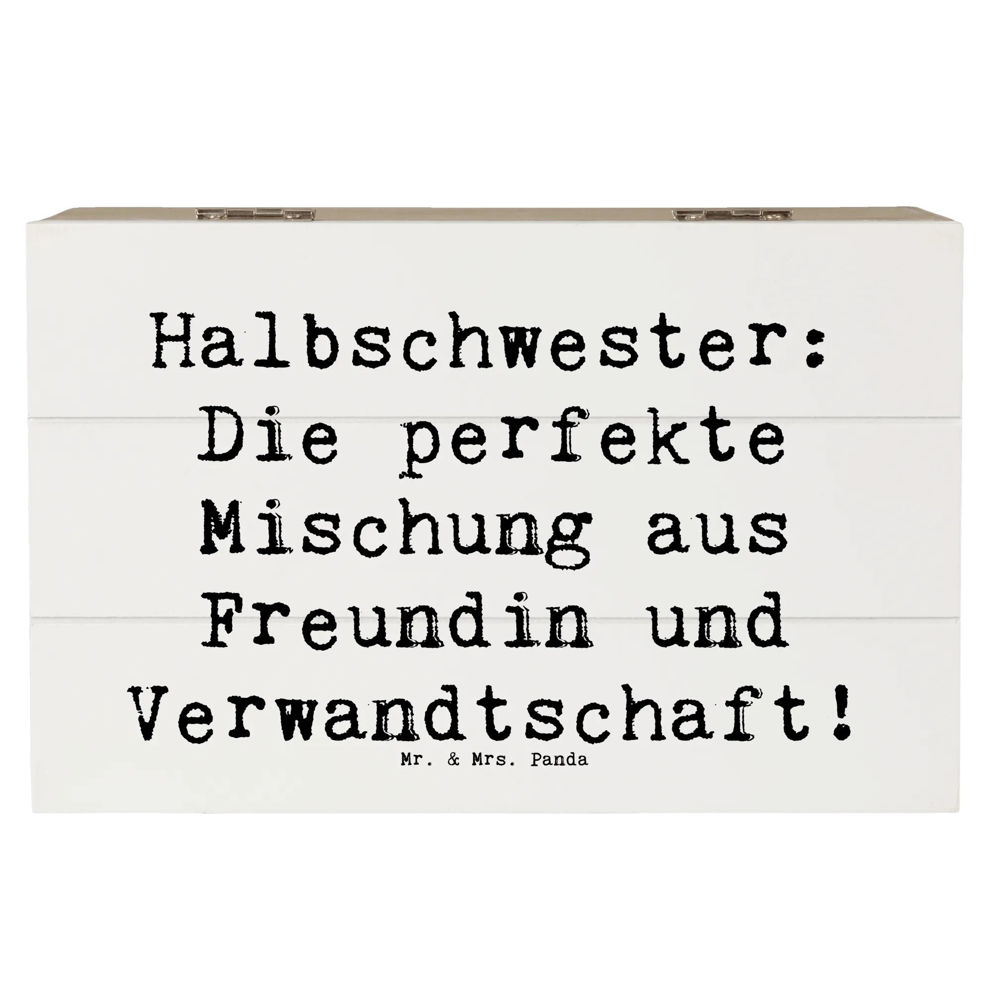 Wooden chest Saying Halbschwester: Die perfekte Mischung aus Freundin und Verwandtschaft! - 22 x 15 cm - White