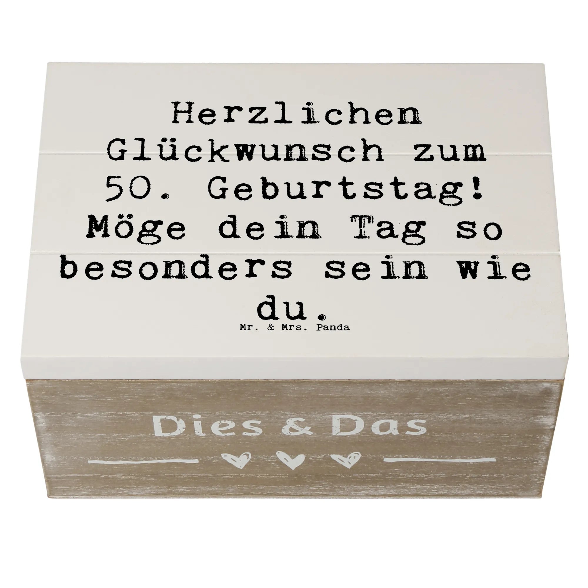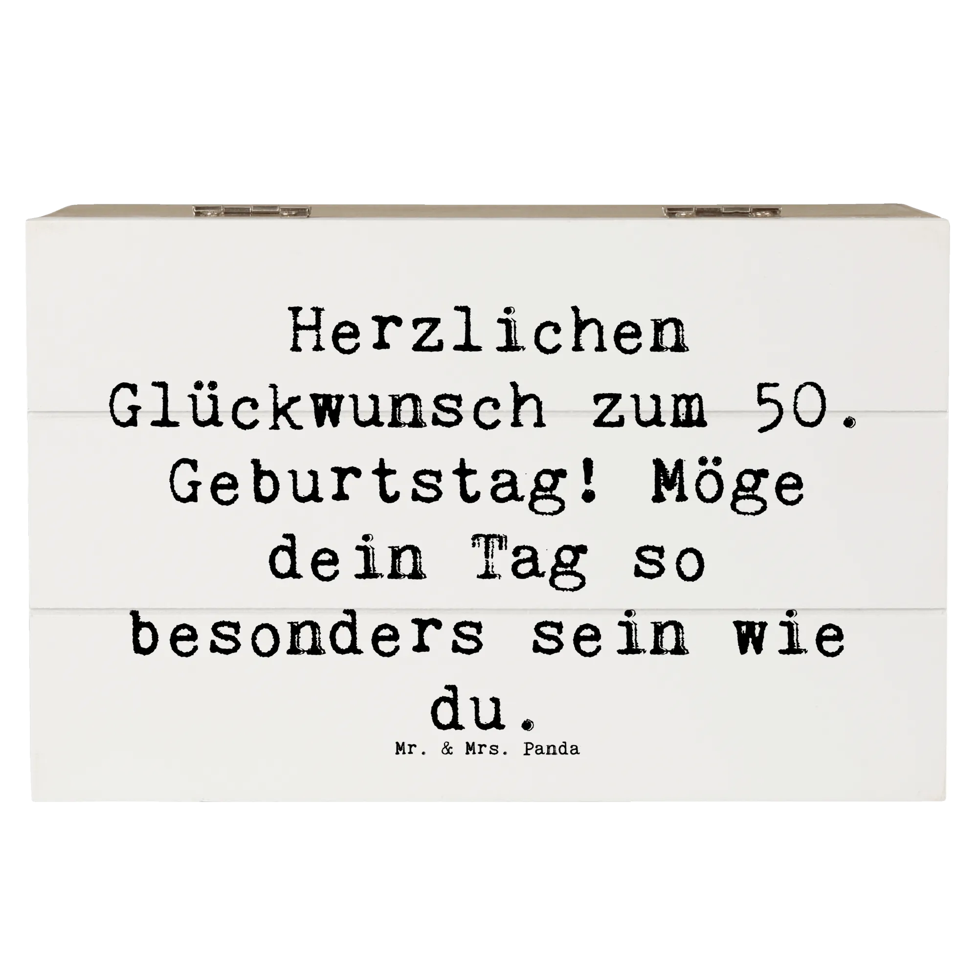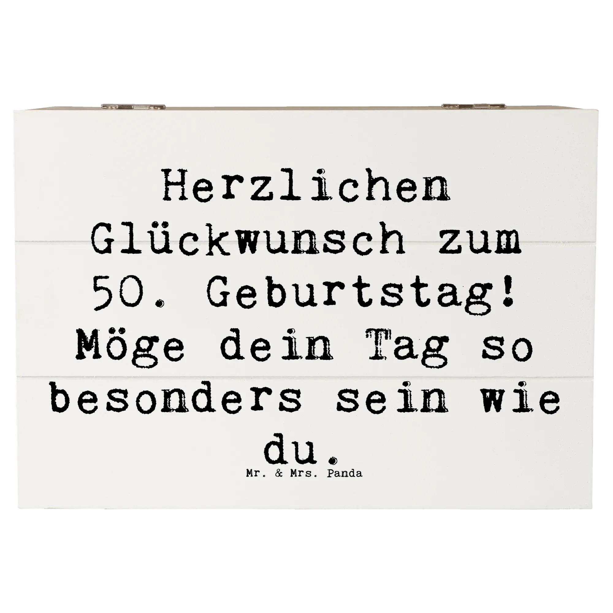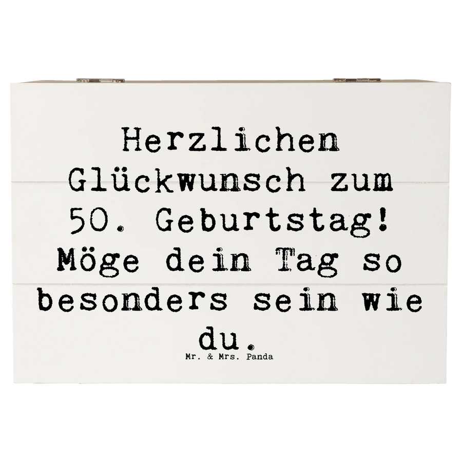 Wooden chest Saying Herzlichen Glückwunsch zum 50. Geburtstag! Möge dein Tag so besonders sein wie du. - 22 x 15 cm - White