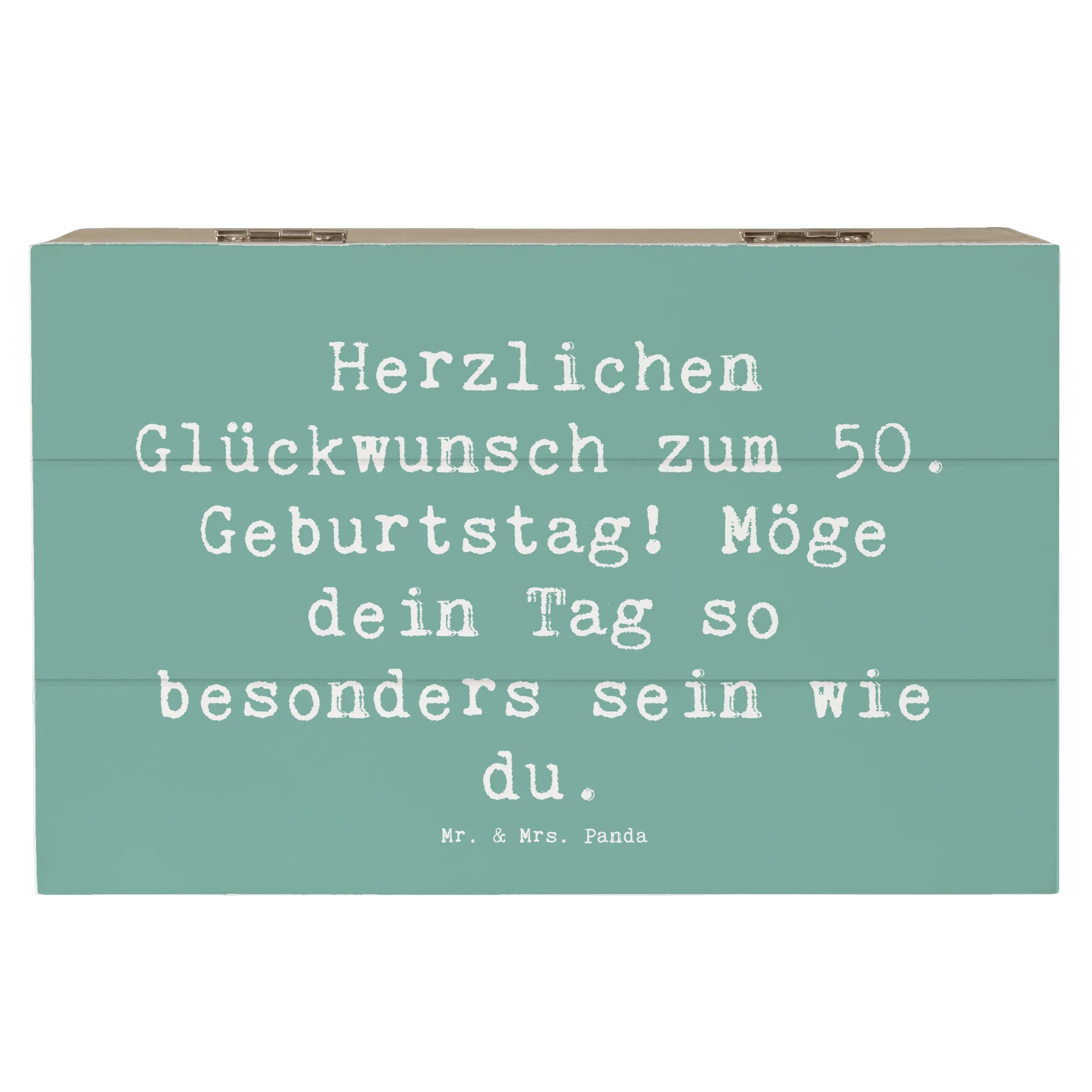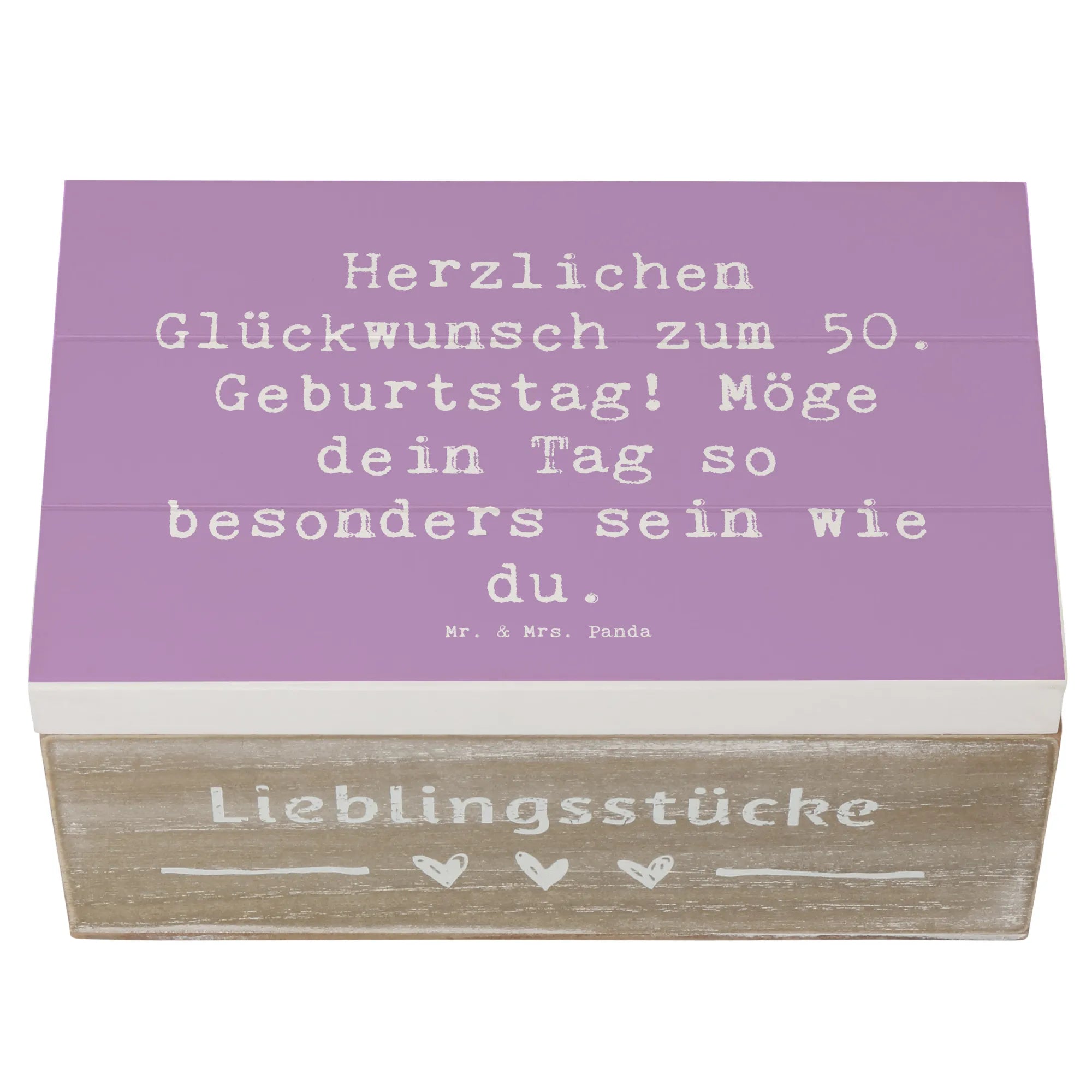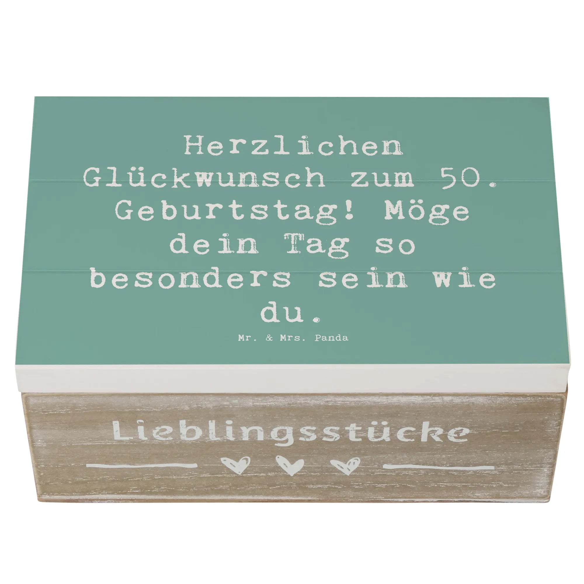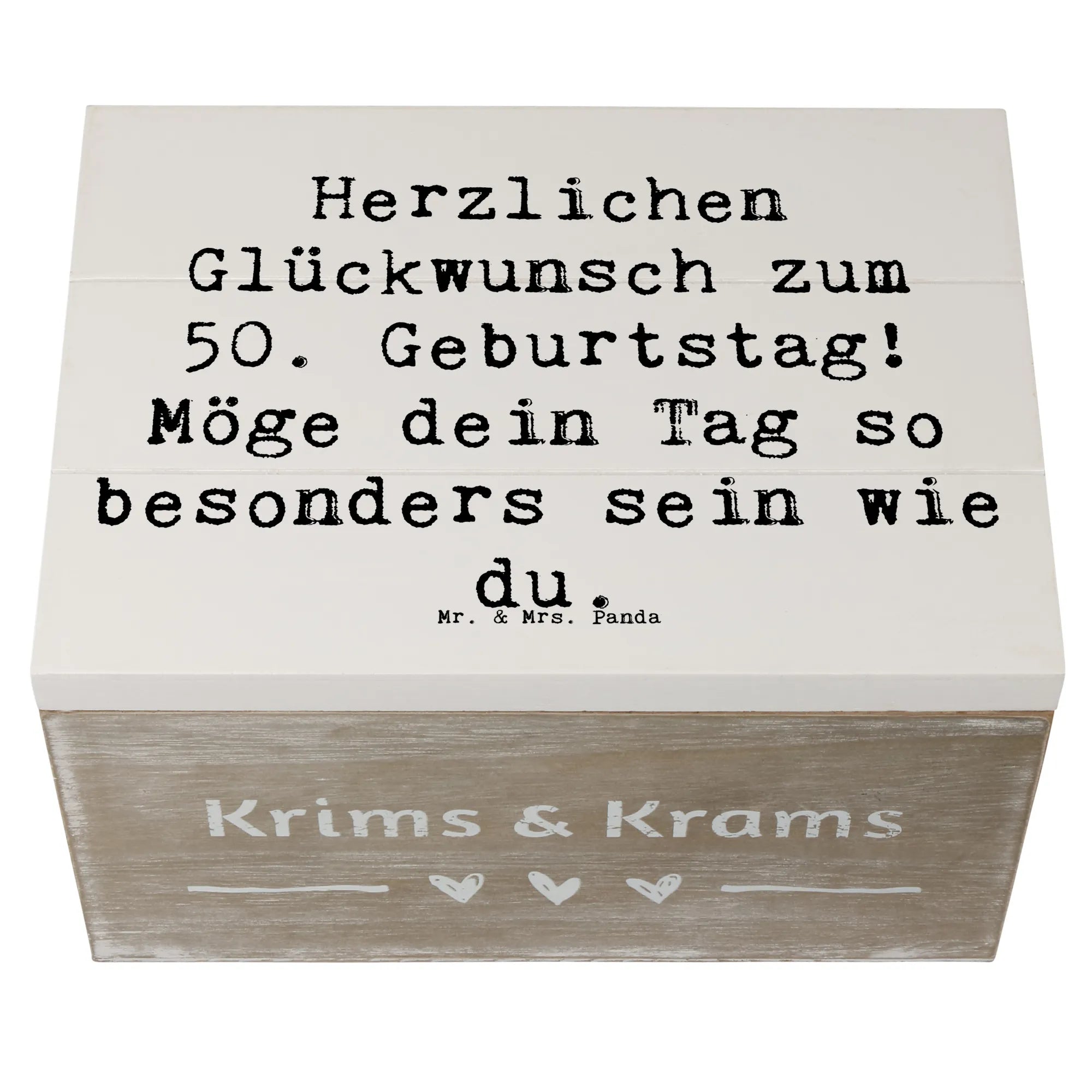 Wooden chest Saying Herzlichen Glückwunsch zum 50. Geburtstag! Möge dein Tag so besonders sein wie du. - 22 x 15 cm - White