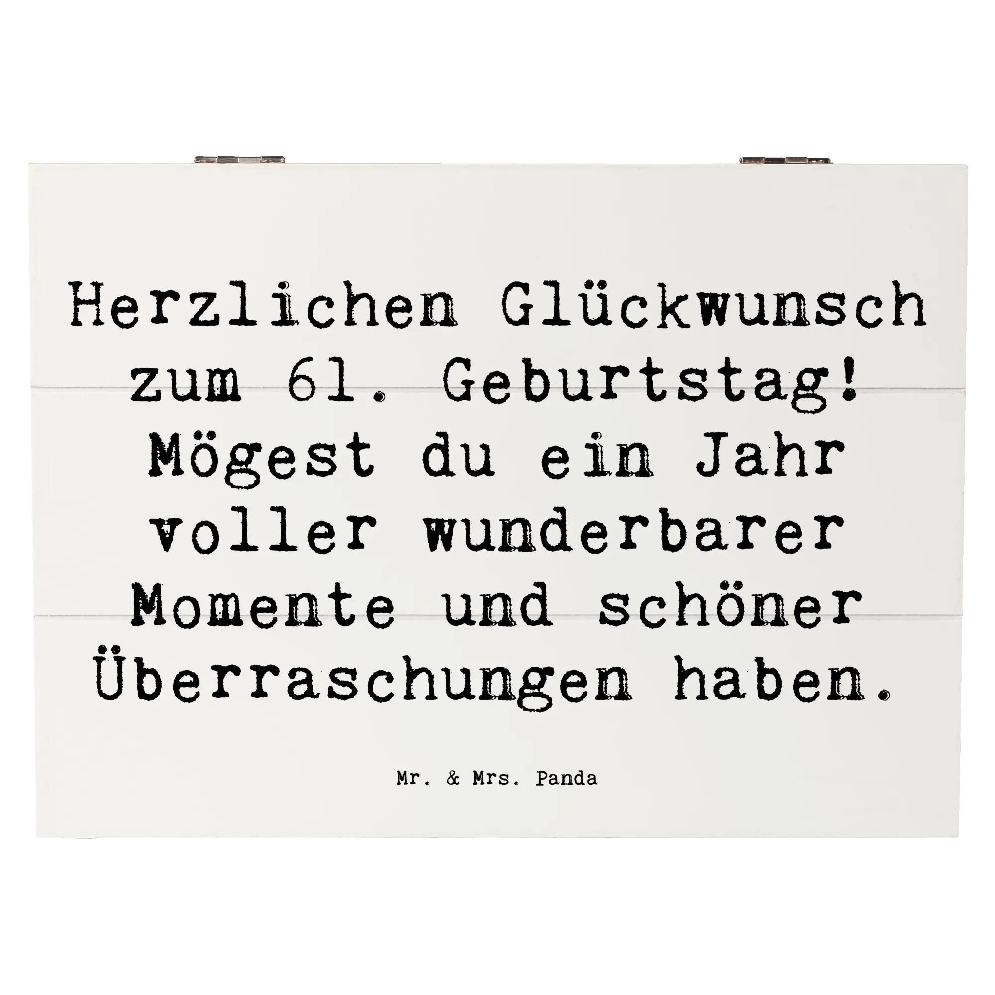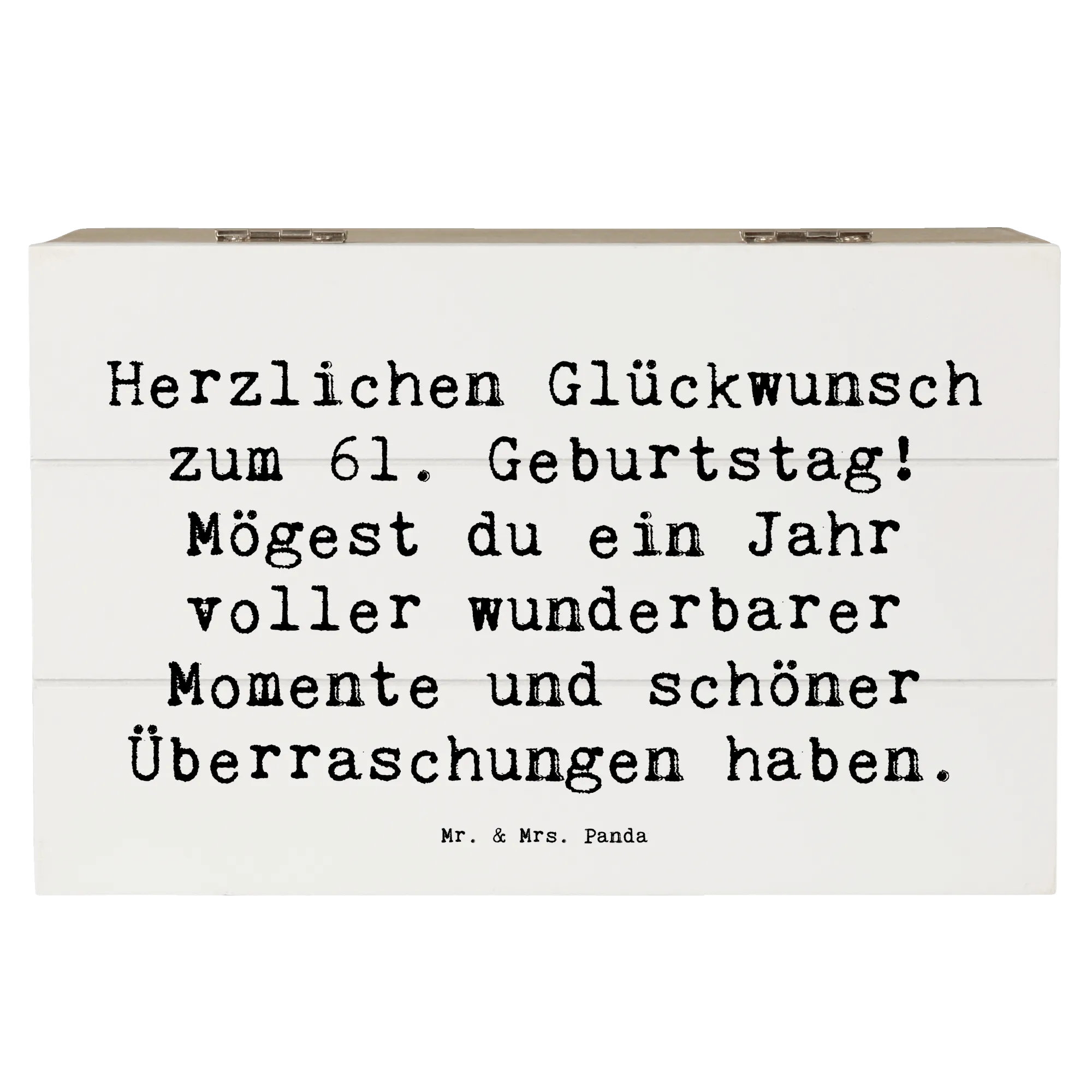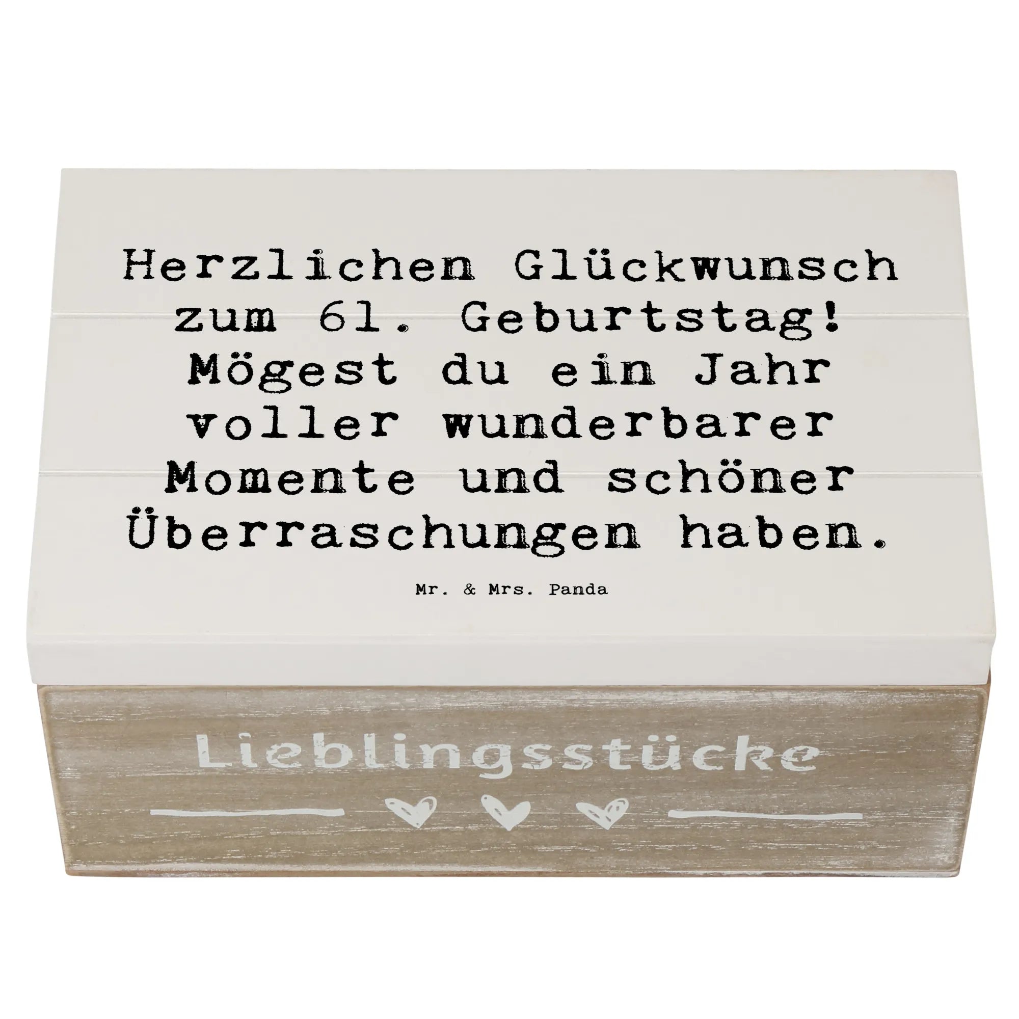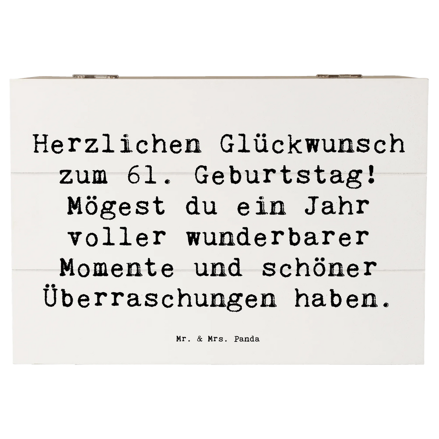 Wooden chest Saying Herzlichen Glückwunsch zum 61. Geburtstag! Mögest du ein Jahr voller wunderbarer Momente und schöner Überraschungen haben. - 22 x 15 cm - White