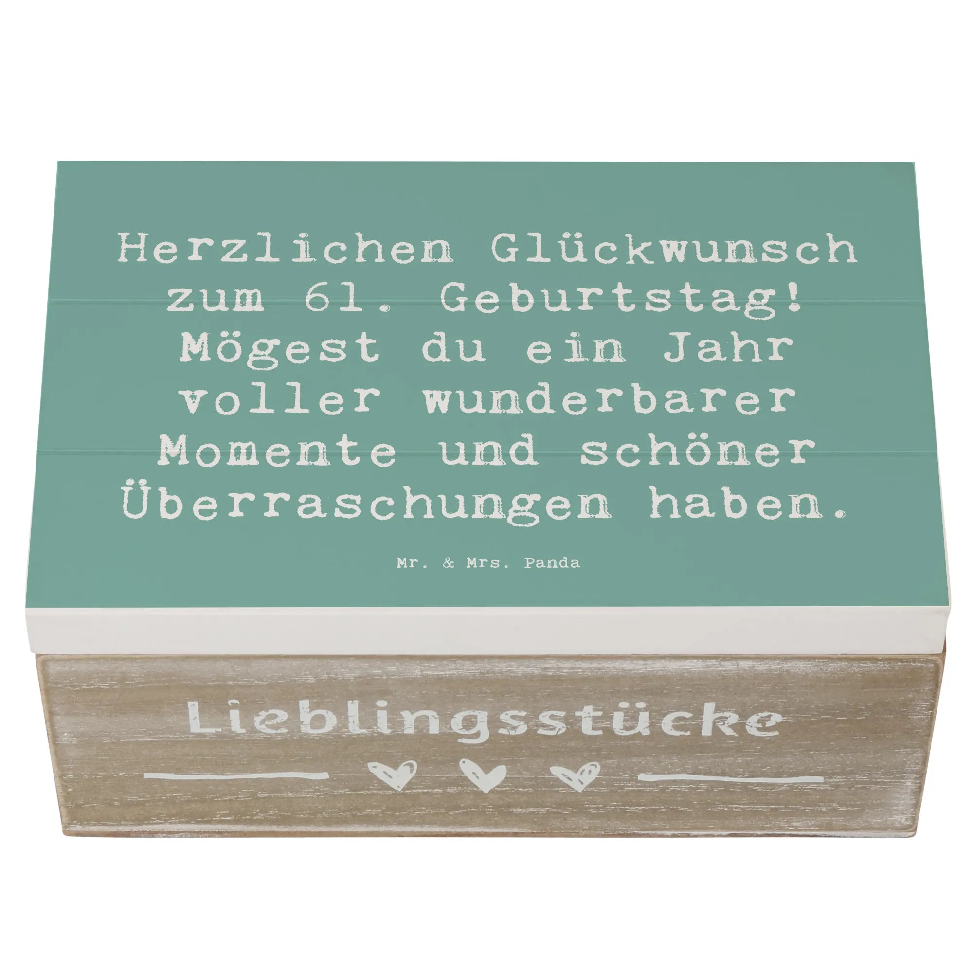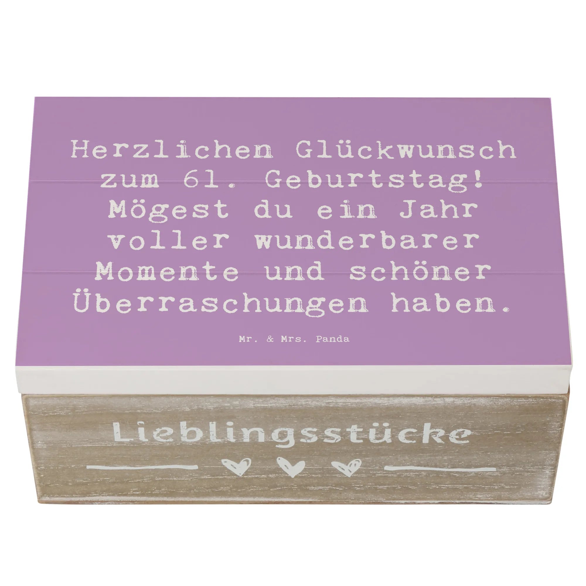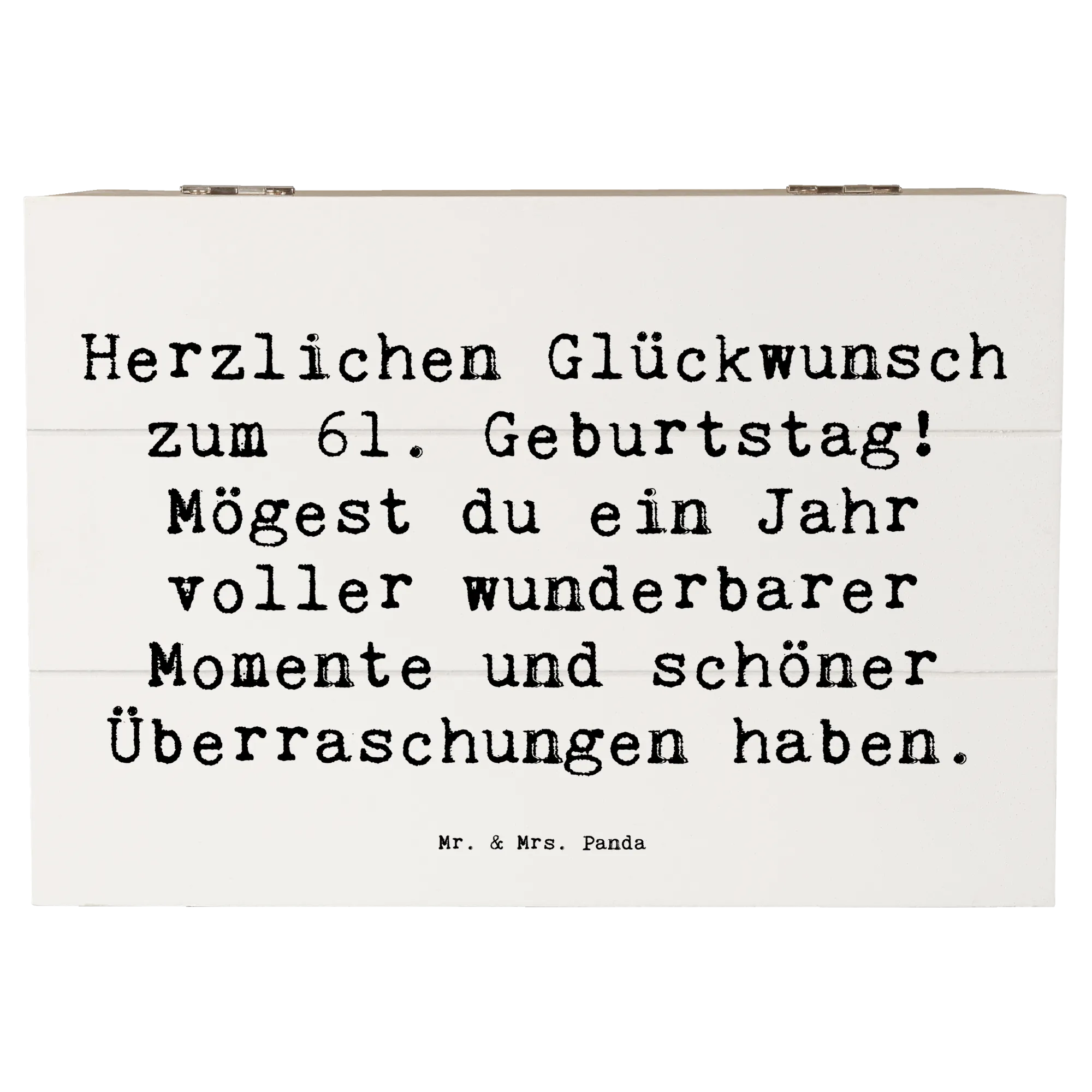 Wooden chest Saying Herzlichen Glückwunsch zum 61. Geburtstag! Mögest du ein Jahr voller wunderbarer Momente und schöner Überraschungen haben. - 22 x 15 cm - White