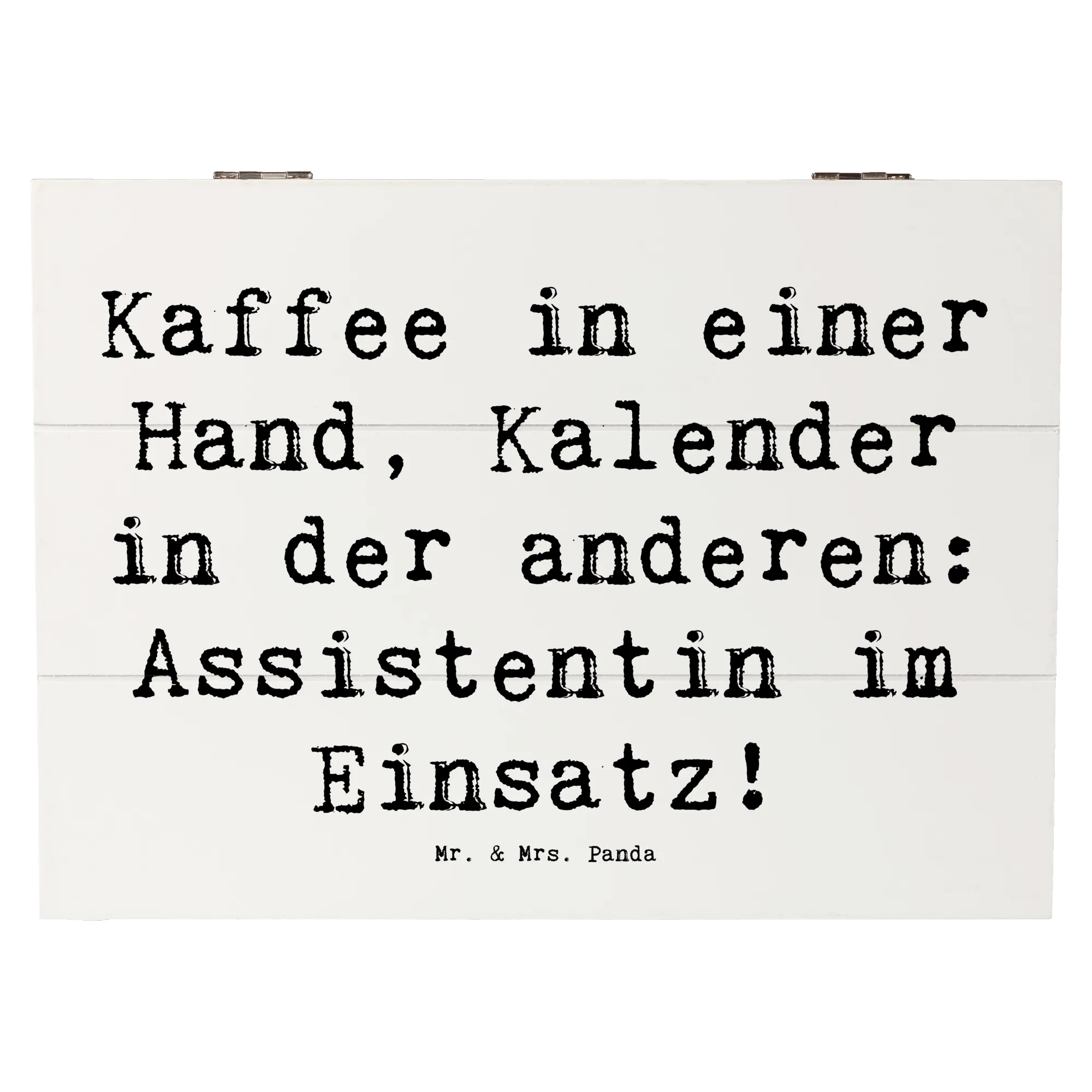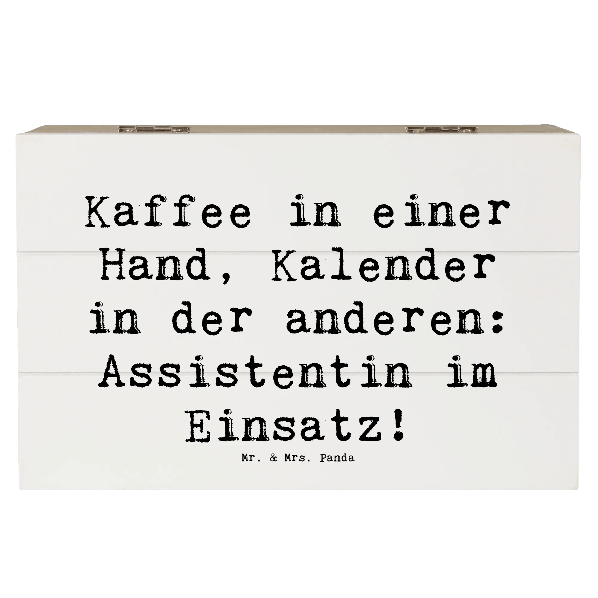 Wooden chest Saying Kaffee in einer Hand, Kalender in der anderen: Assistentin im Einsatz! - 22 x 15 cm - White