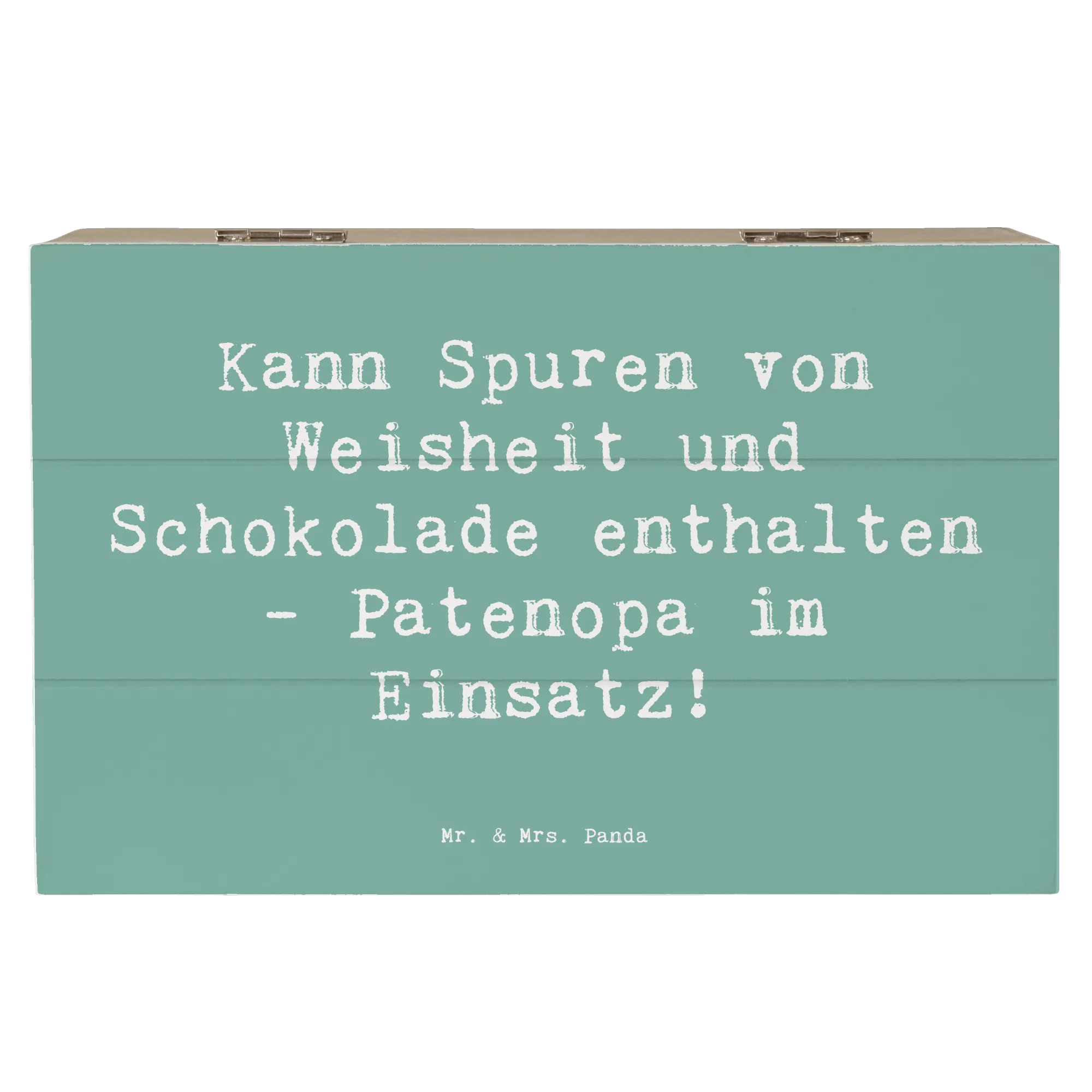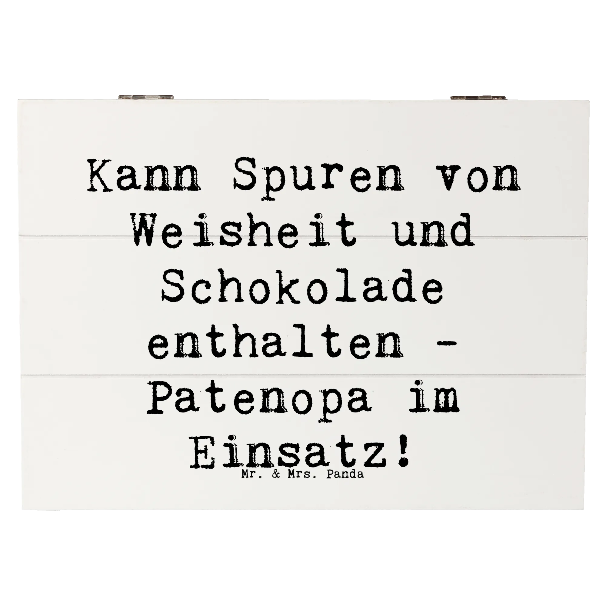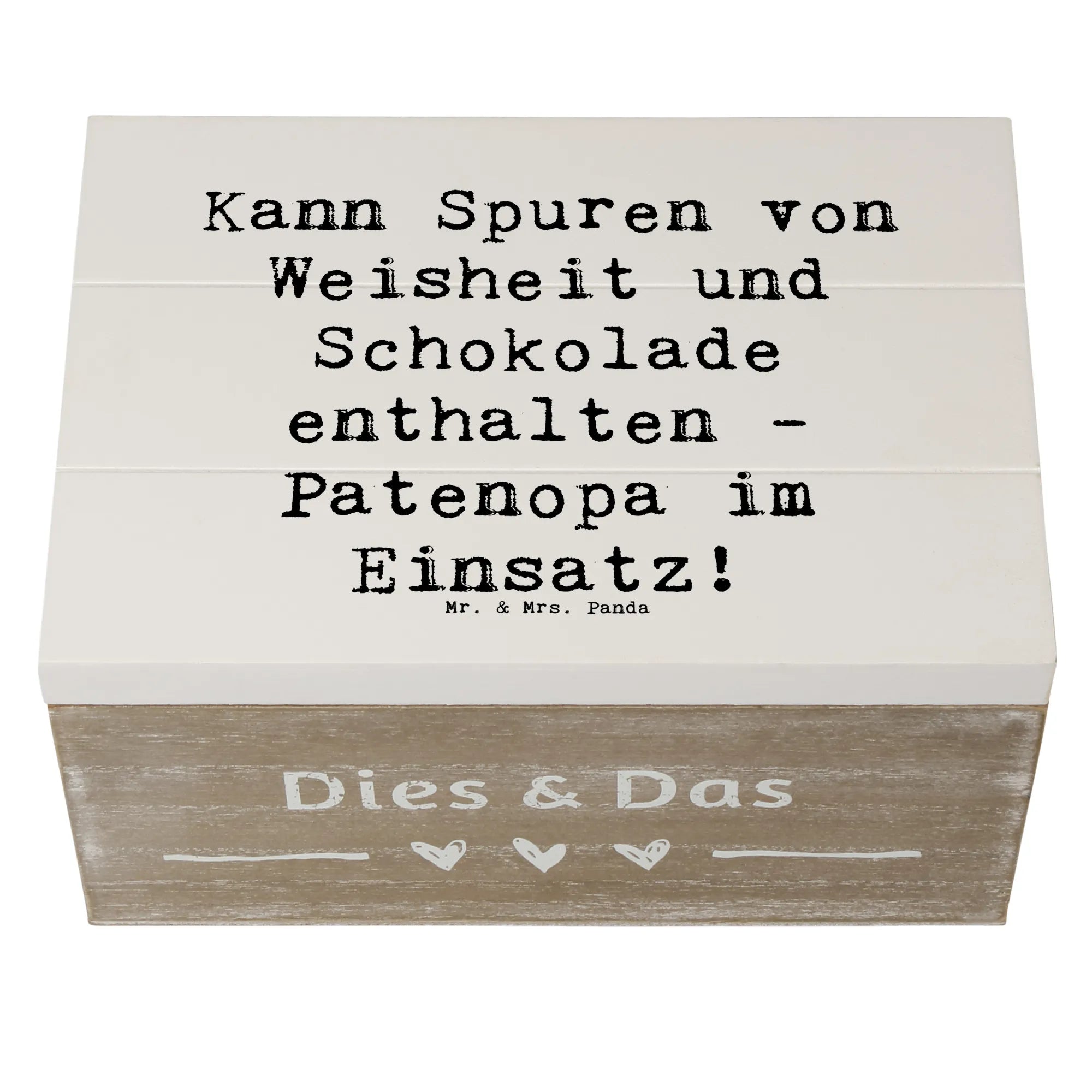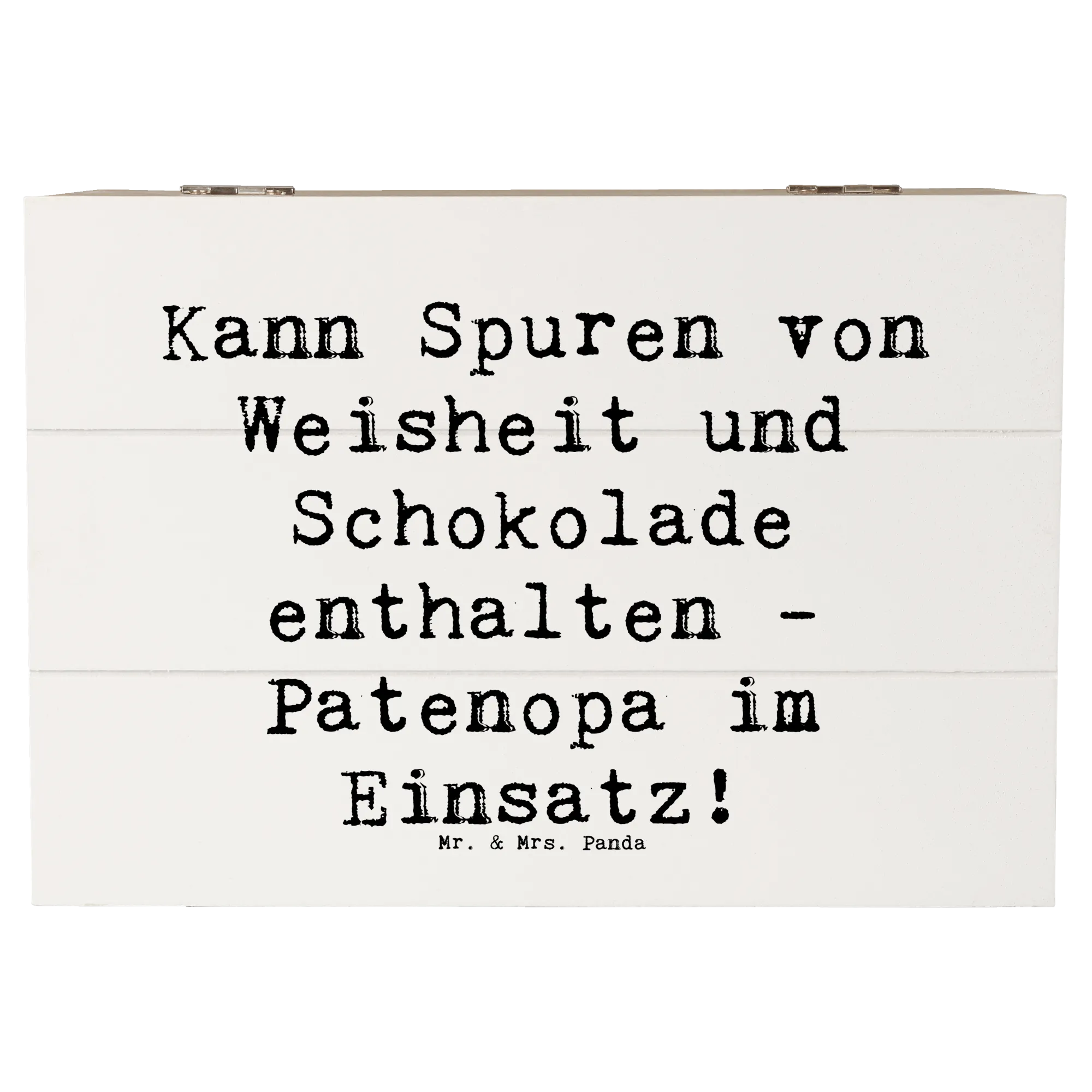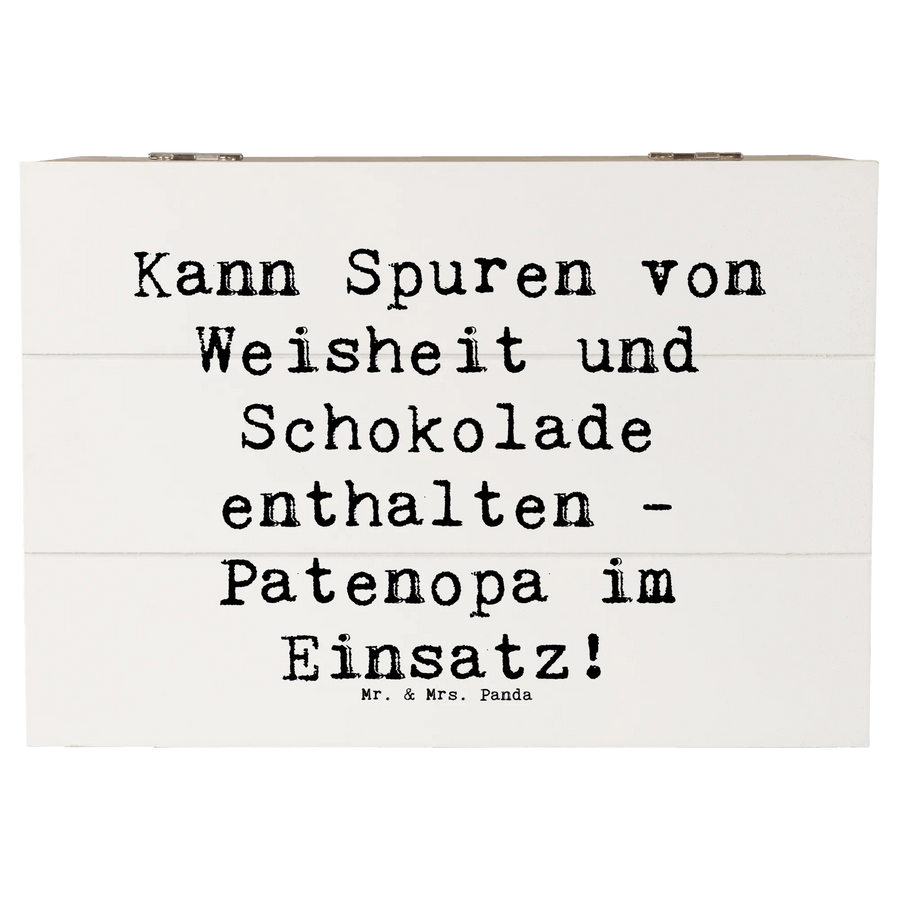Wooden chest Saying Kann Spuren von Weisheit und Schokolade enthalten - Patenopa im Einsatz! - 22 x 15 cm - White
