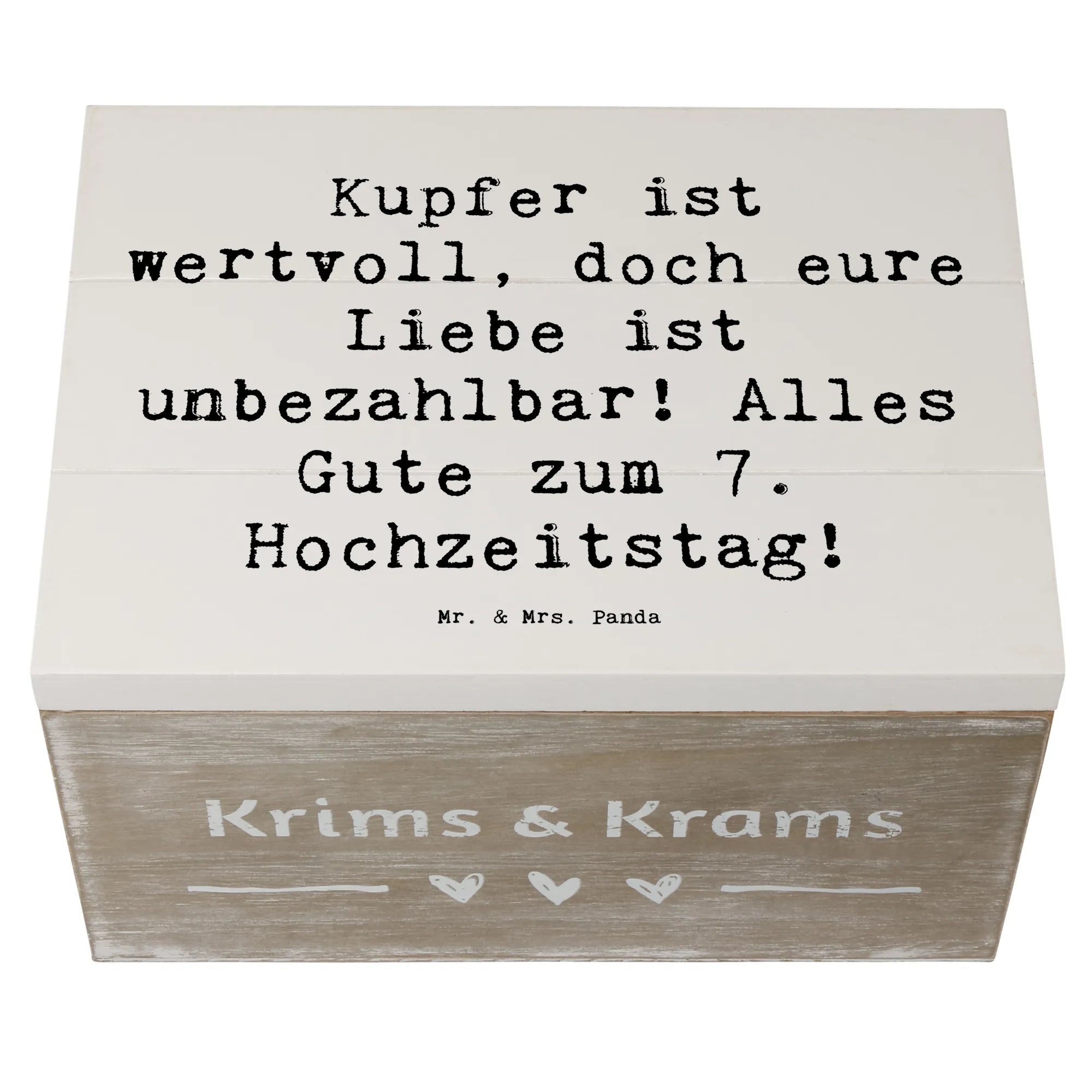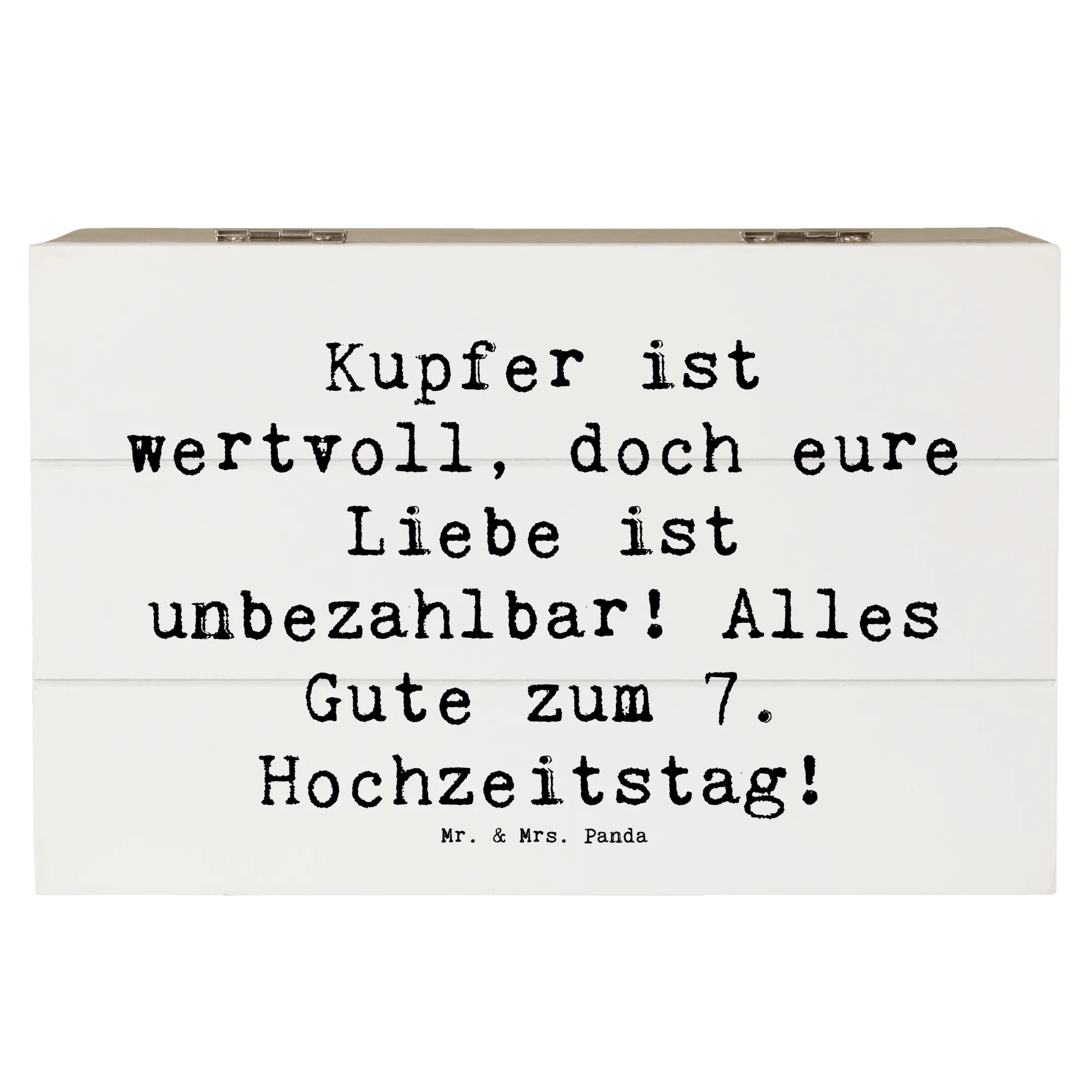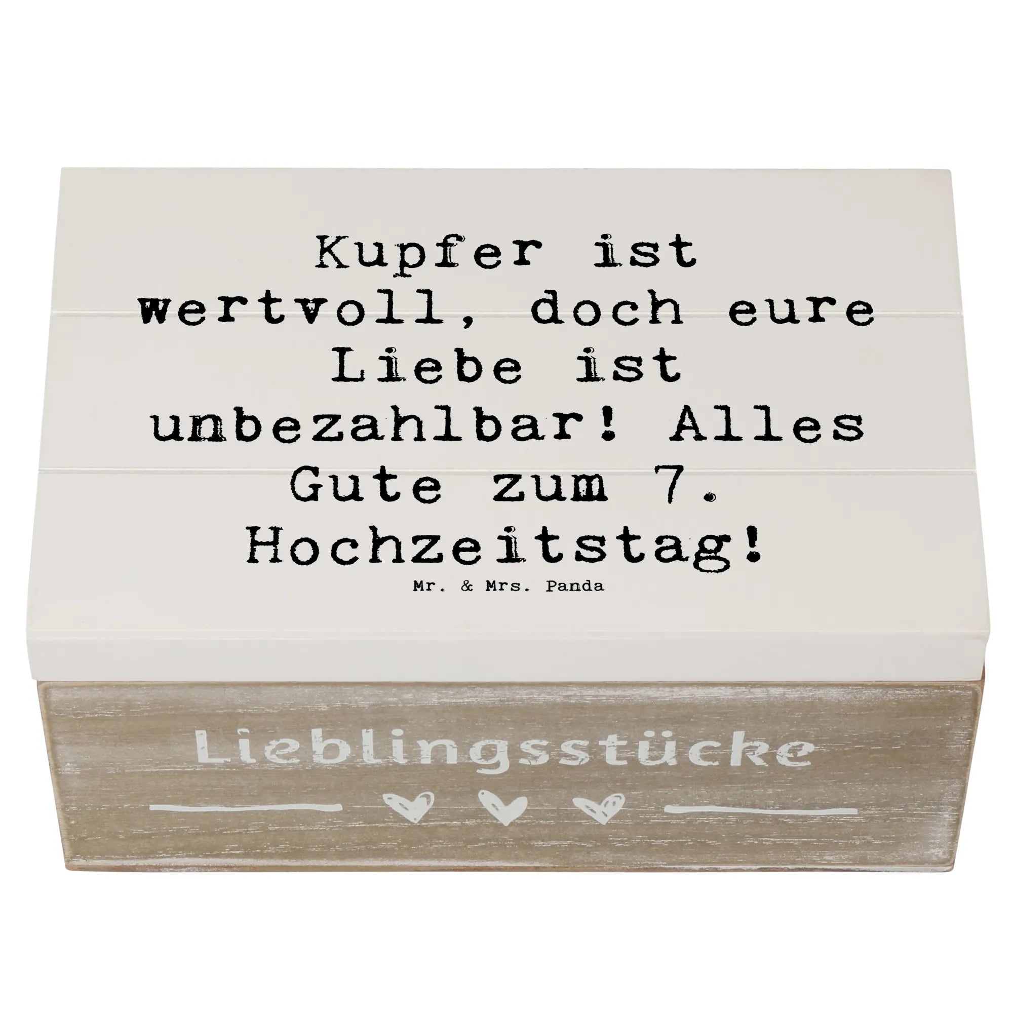 Wooden chest Saying Kupfer ist wertvoll, doch eure Liebe ist unbezahlbar! Alles Gute zum 7. Hochzeitstag! - 22 x 15 cm - White