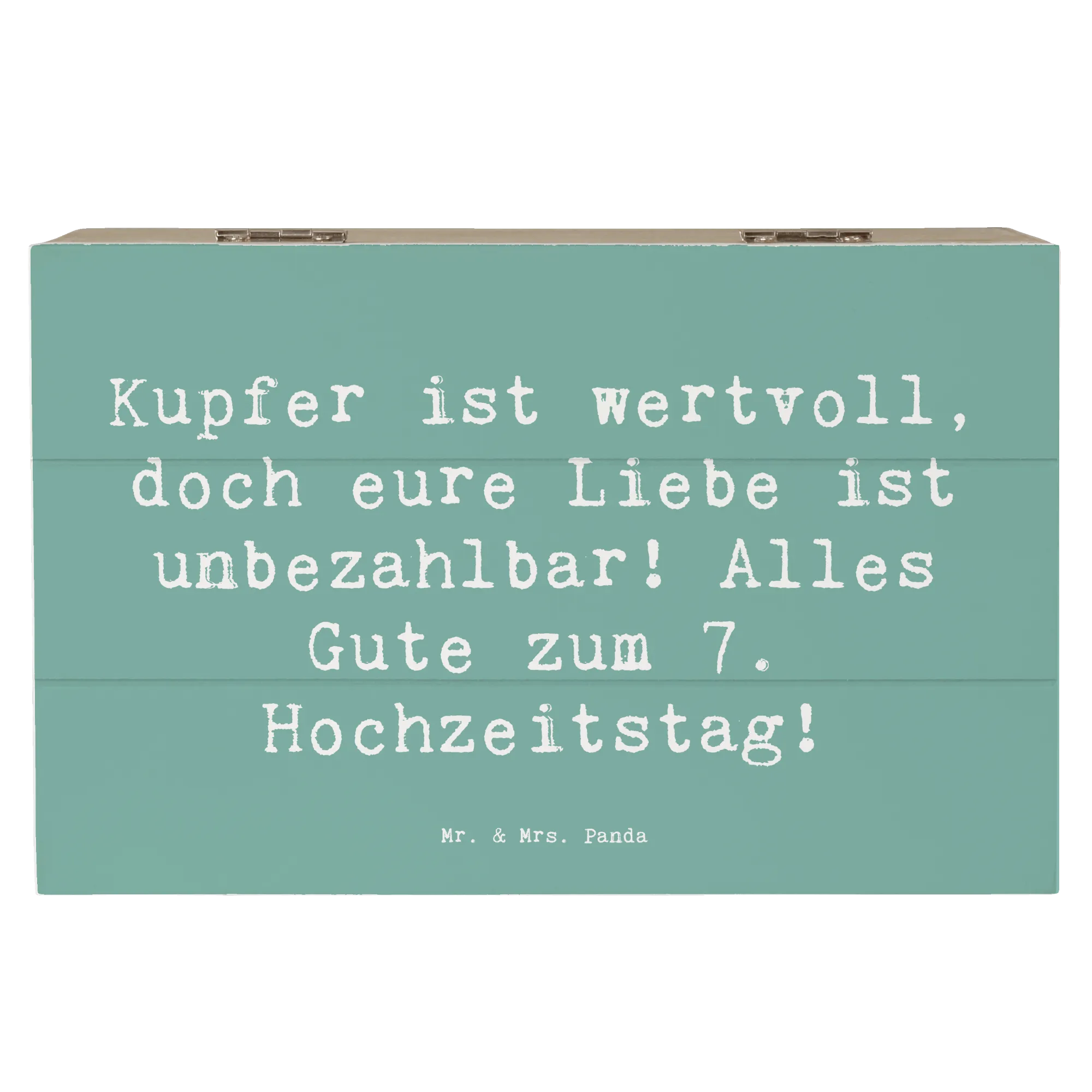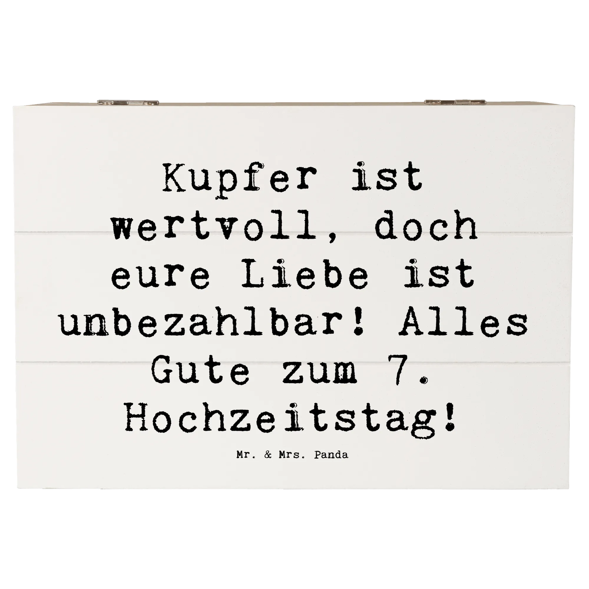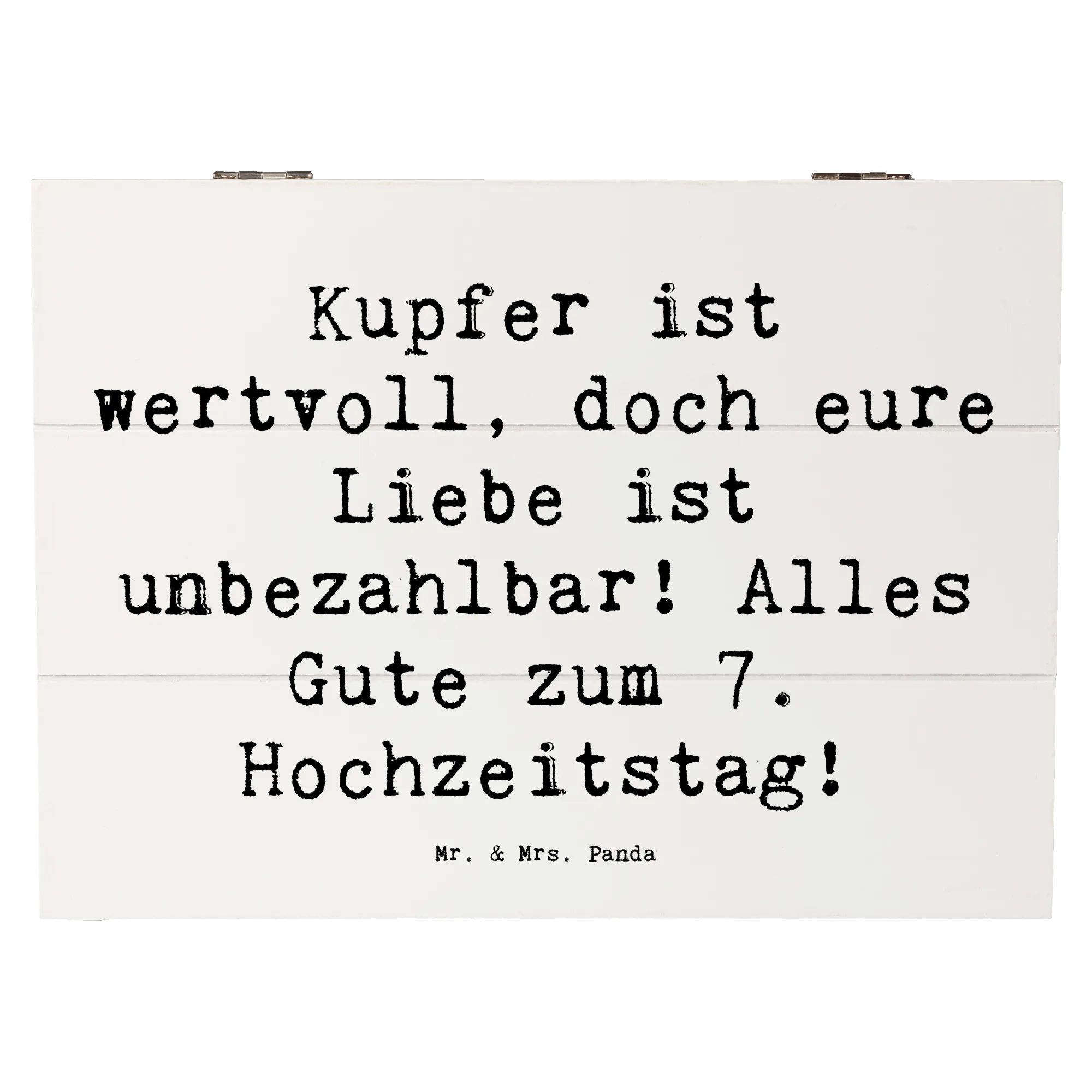 Wooden chest Saying Kupfer ist wertvoll, doch eure Liebe ist unbezahlbar! Alles Gute zum 7. Hochzeitstag! - 22 x 15 cm - White