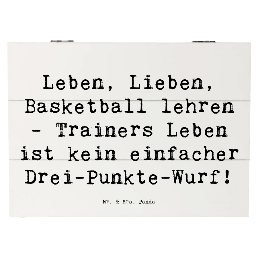 Wooden chest Saying Leben, Lieben, Basketball lehren - Trainers Leben ist kein einfacher Drei-Punkte-Wurf! - 25 x 18 cm - White
