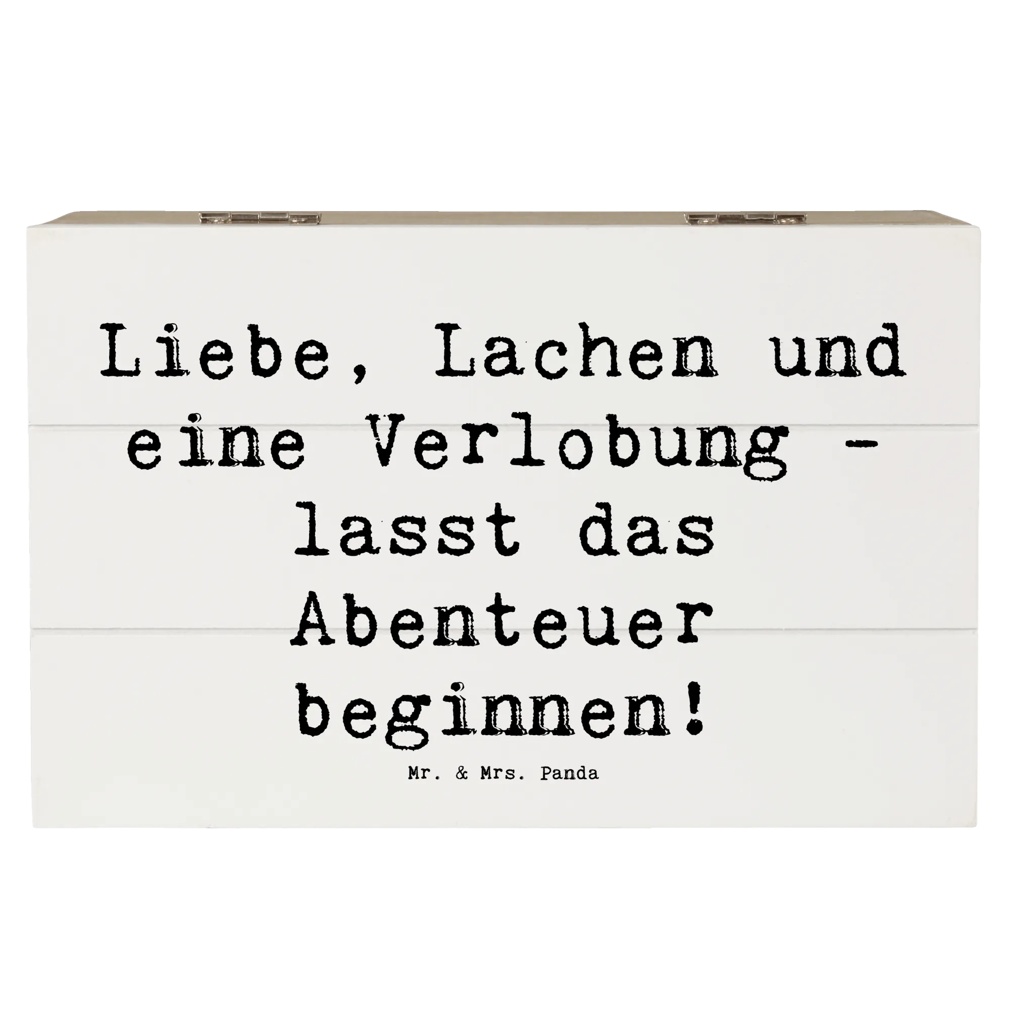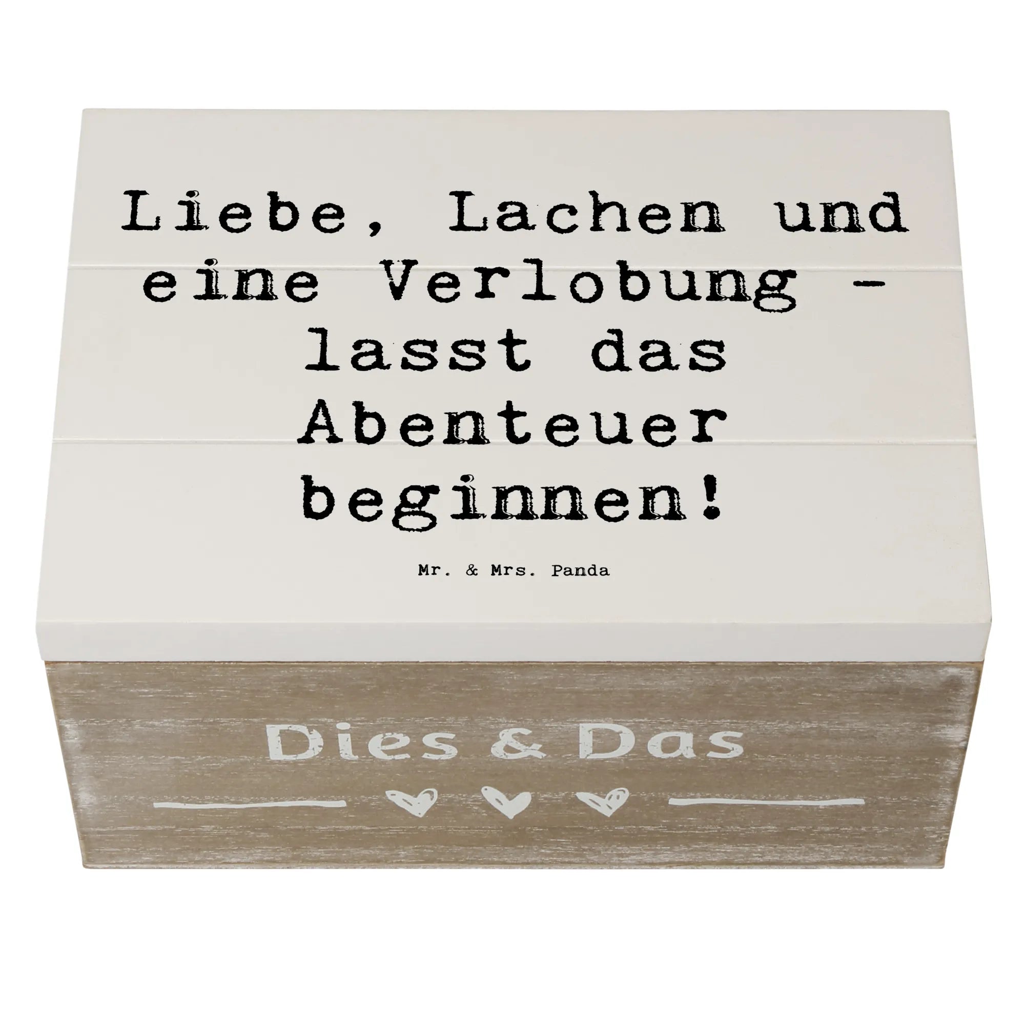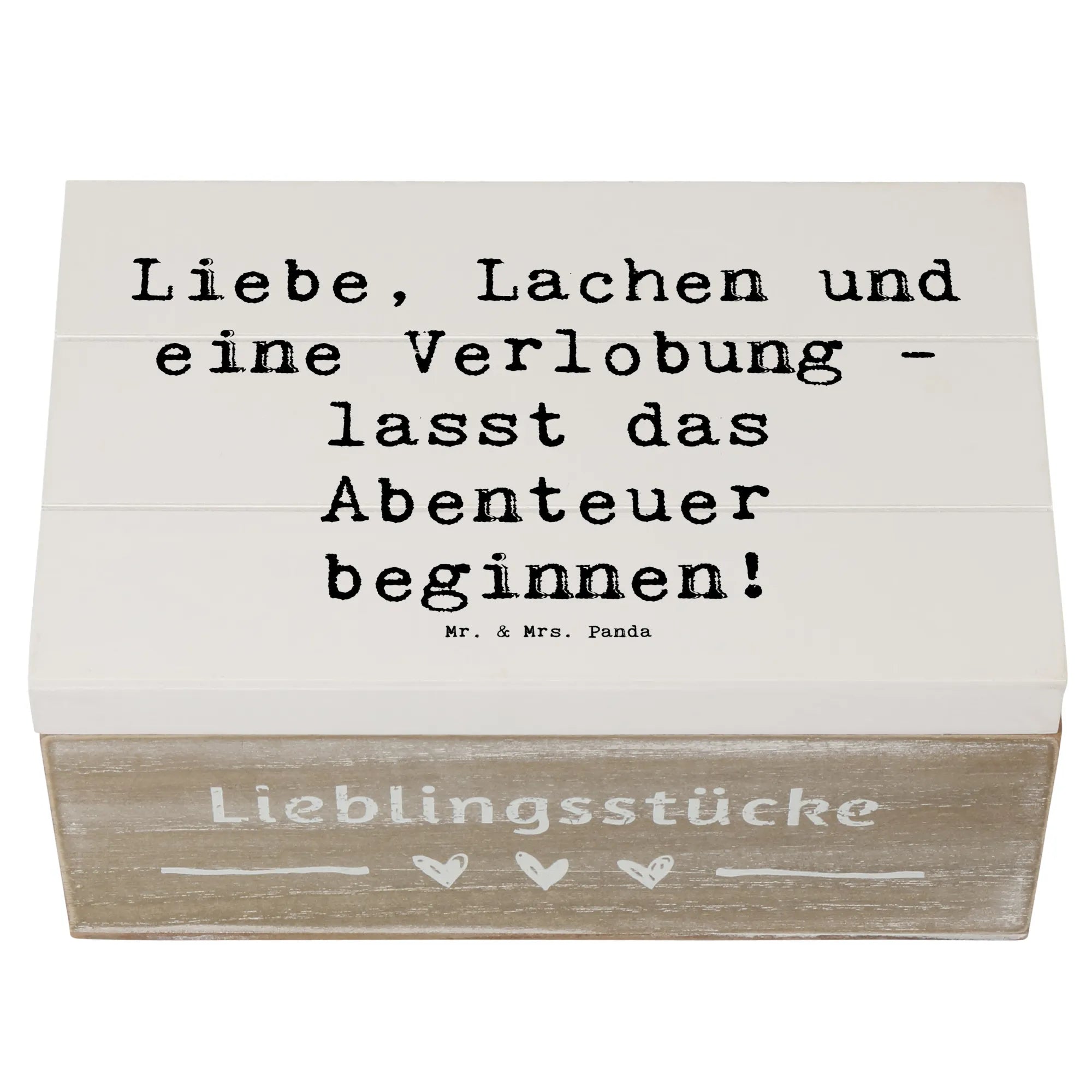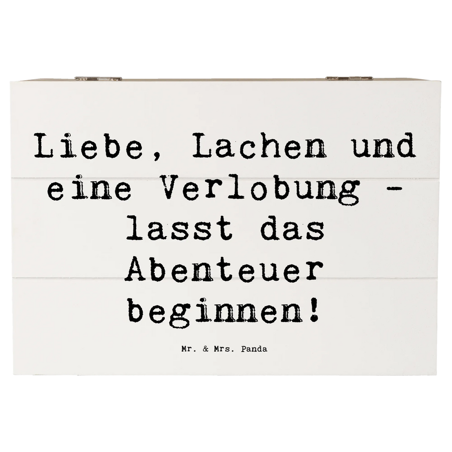 Wooden chest Saying Liebe, Lachen und eine Verlobung - lasst das Abenteuer beginnen! - 22 x 15 cm - White