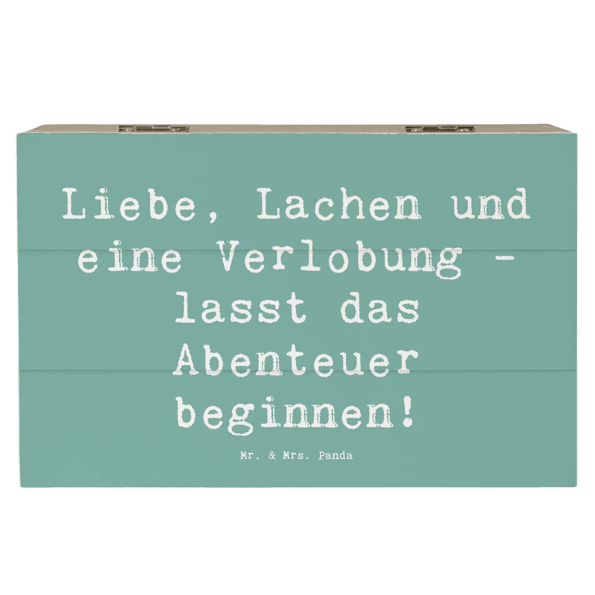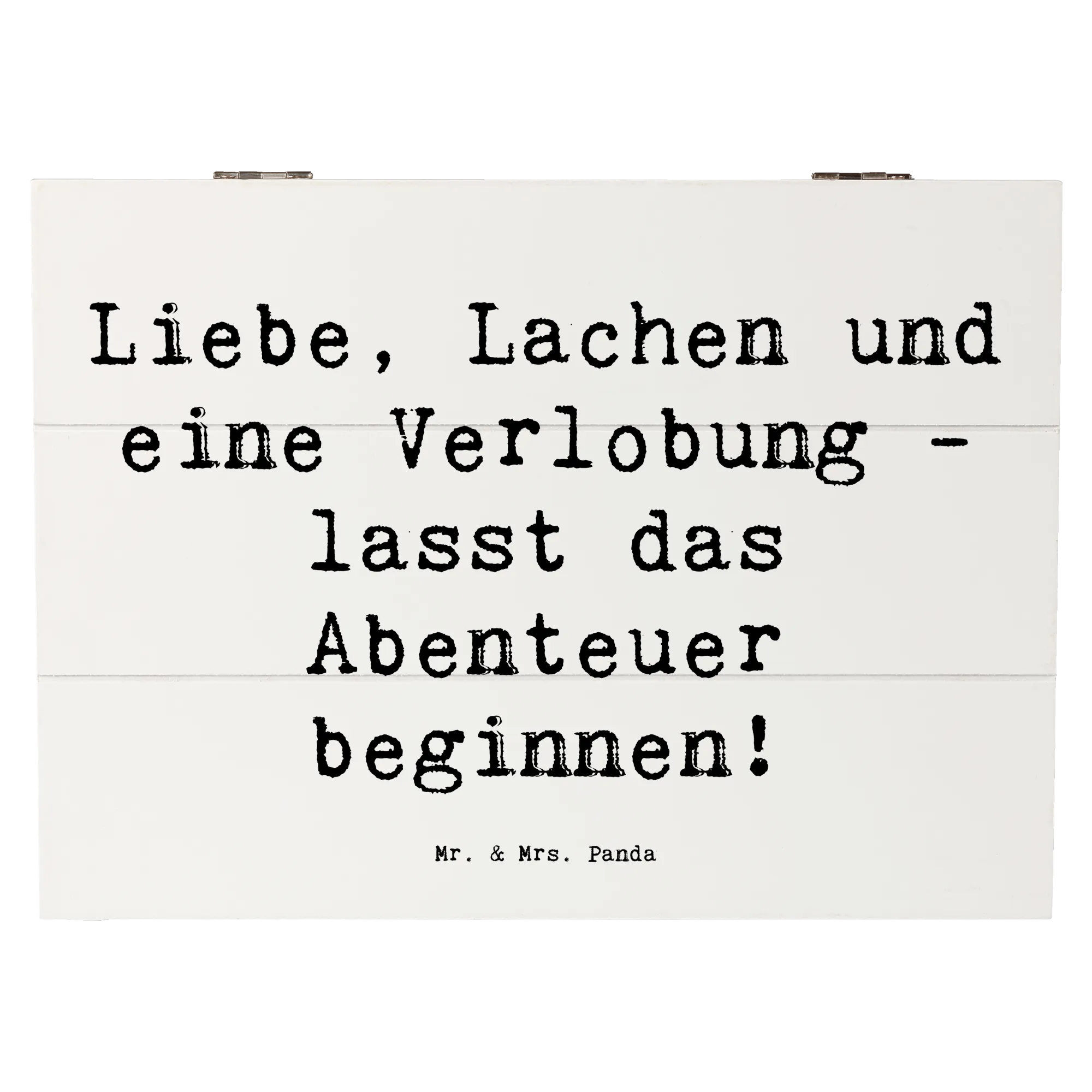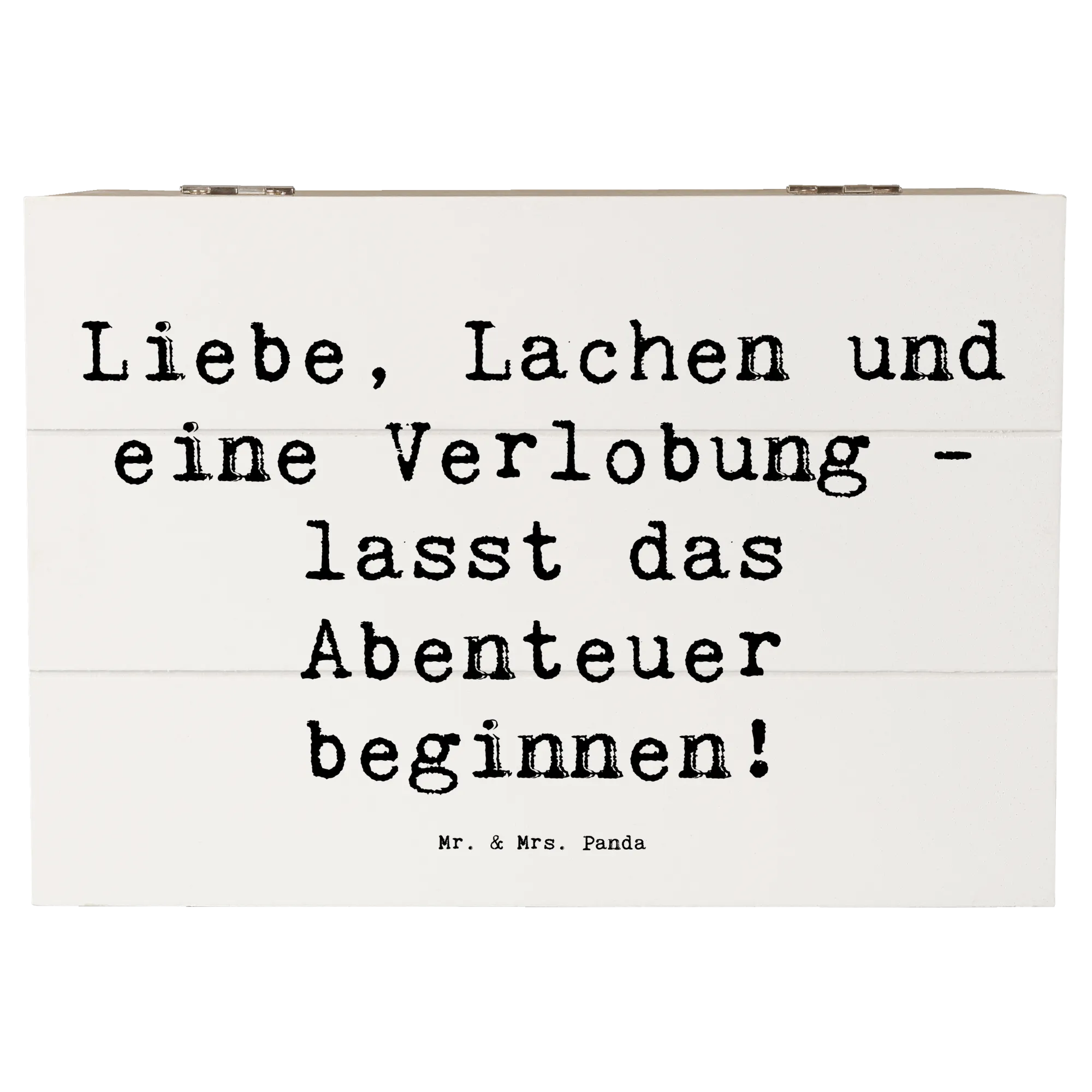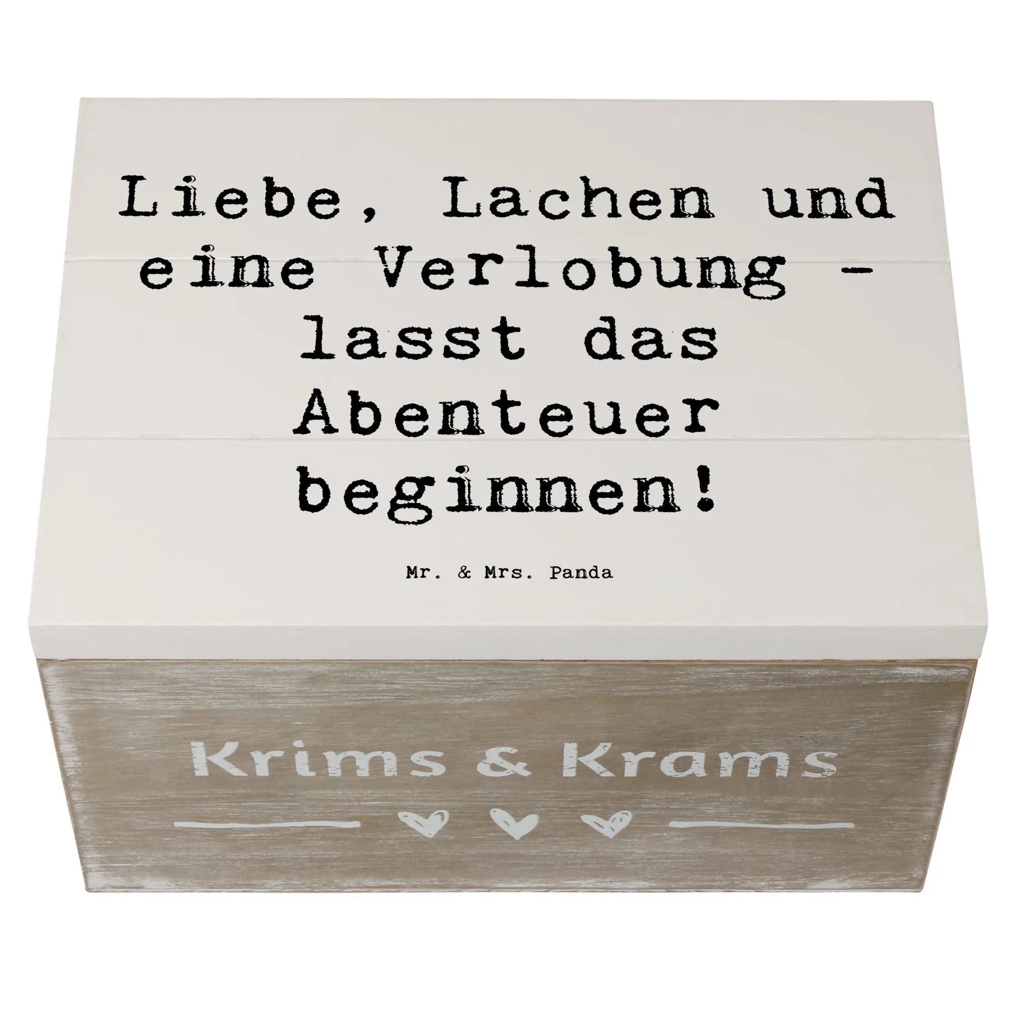 Wooden chest Saying Liebe, Lachen und eine Verlobung - lasst das Abenteuer beginnen! - 22 x 15 cm - White