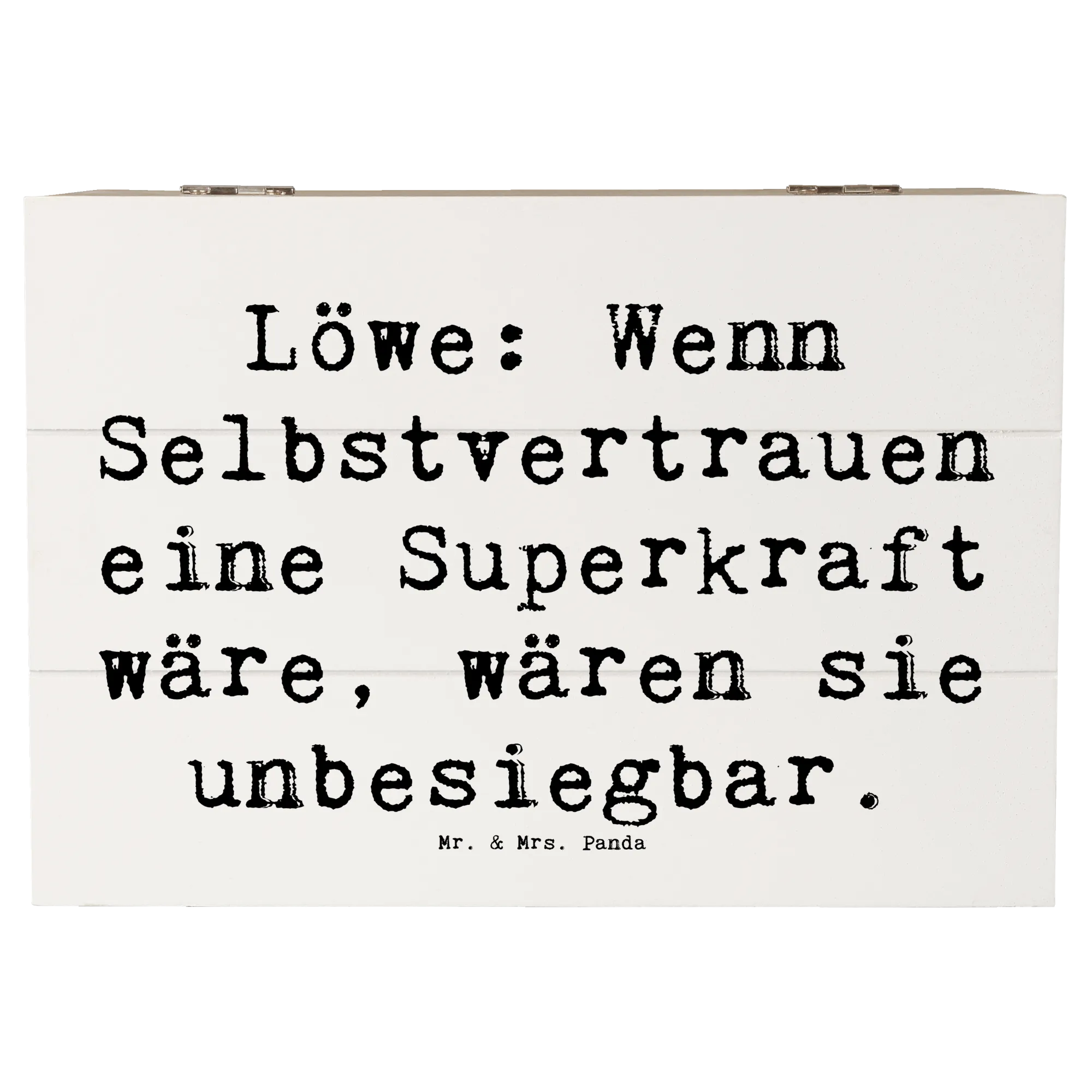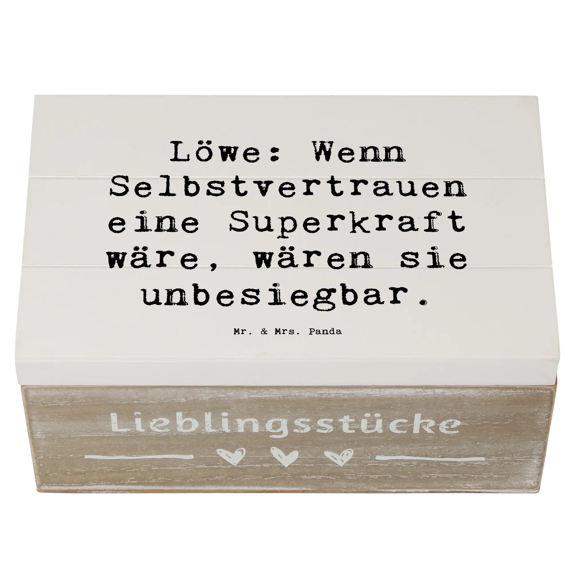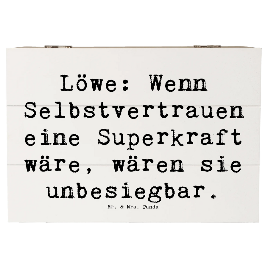 Wooden chest Saying Löwe: Wenn Selbstvertrauen eine Superkraft wäre, wären sie unbesiegbar. - 22 x 15 cm - White